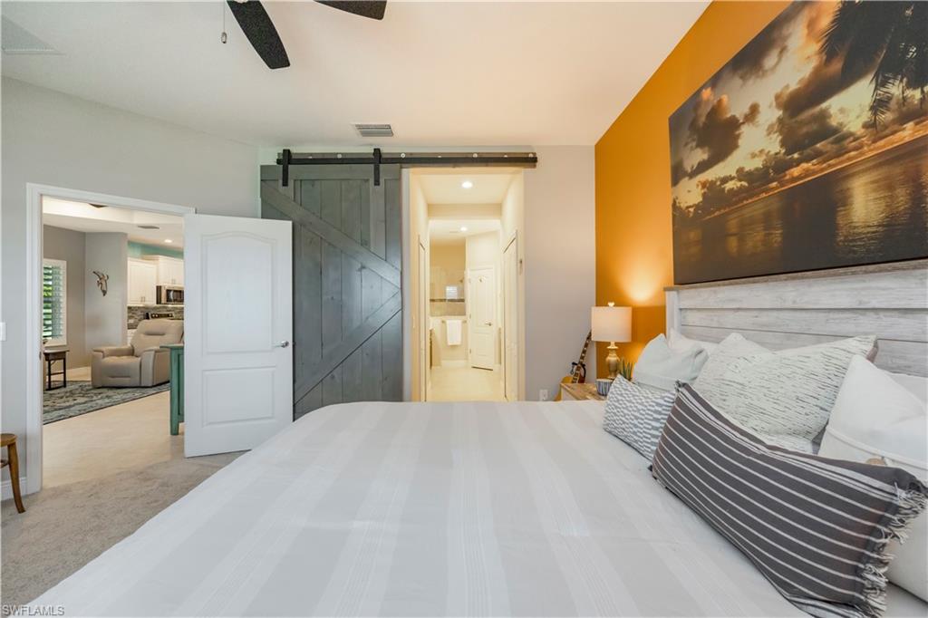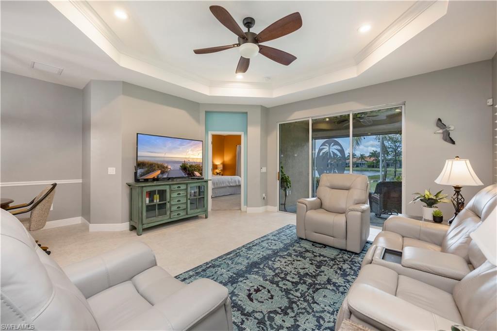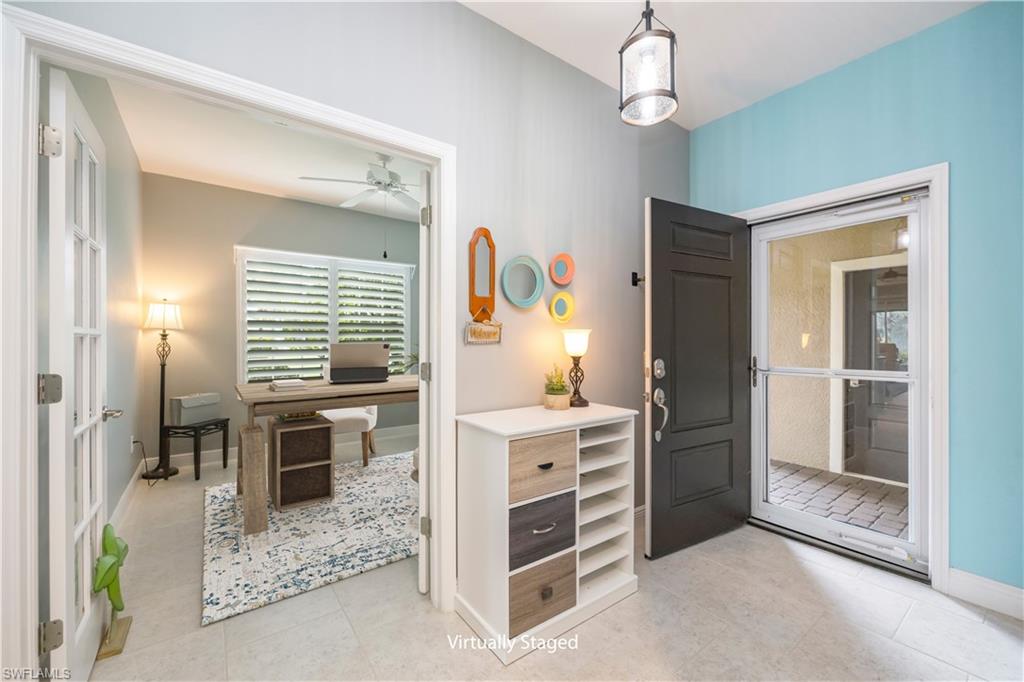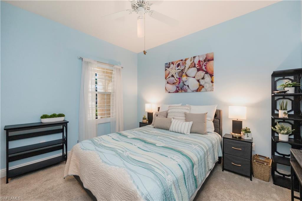 This is the one everyone has been waiting for—a rarely available attached villa on an oversized corner lot in the highly desirable Reflection Lakes of Naples, offering unmatched privacy and breathtaking long lake views. From the moment you arrive, you’ll feel the difference—this property stands out with its prime location, furnished interior, and elevated finishes throughout. Featuring 2 spacious bedrooms plus a versatile den, 2 bathrooms, and a 2-car attached garage with extra storage, this home offers the perfect blend of comfort and style. The light-filled living space is enhanced by elegant plantation shutters, newer KitchenAid appliances, and tasteful lighting updates that create a warm, upscale ambiance. There is tile throughout the main living areas and plush carpeting in the bedrooms. The primary suite is a private retreat with a premium Sleep Number bed, while the lanai invites relaxation with high-wind-rated roll-down hurricane screens, making it your ideal year-round outdoor sanctuary. Accordion shutters provide full storm protection and peace of mind, and a 50 amp generator hookup adds an extra layer of security. Step outside to enjoy the tropical landscaping and serene water views, or explore the vibrant amenities of Reflection Lakes including a resort-style pool, fitness center, and clubhouse. All of this is just minutes from Naples’ best shopping, dining, and entertainment destinations including 5th Avenue, Mercato, and Waterside Shops, and only a short drive to the area’s world-renowned beaches. Whether you're looking for a seasonal escape or a full-time residence, this is the villa that checks every box—and it won’t last long.