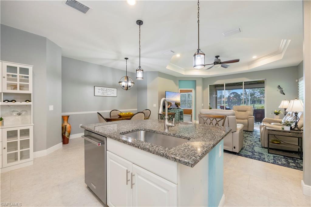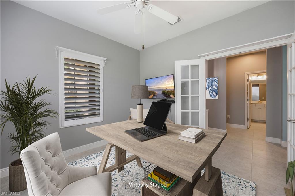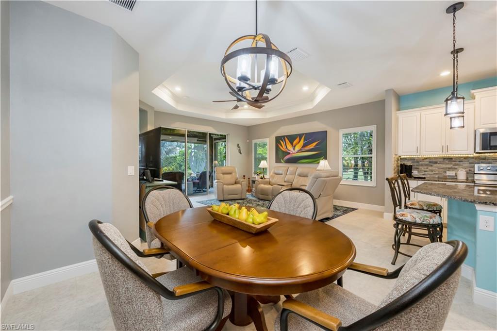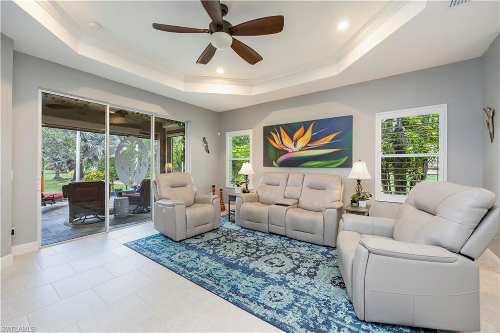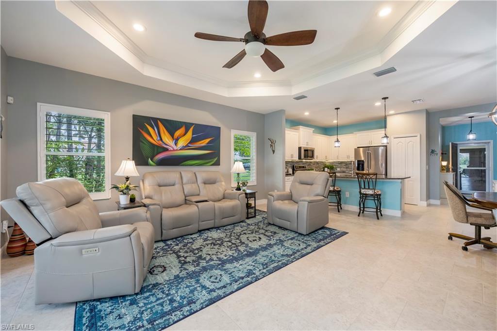 This is the one everyone has been waiting for—a rarely available attached villa on an oversized corner lot in the highly desirable Reflection Lakes of Naples, offering unmatched privacy and breathtaking long lake views. From the moment you arrive, you’ll feel the difference—this property stands out with its prime location, furnished interior, and elevated finishes throughout. Featuring 2 spacious bedrooms plus a versatile den, 2 bathrooms, and a 2-car attached garage with extra storage, this home offers the perfect blend of comfort and style. The light-filled living space is enhanced by elegant plantation shutters, newer KitchenAid appliances, and tasteful lighting updates that create a warm, upscale ambiance. There is tile throughout the main living areas and plush carpeting in the bedrooms. The primary suite is a private retreat with a premium Sleep Number bed, while the lanai invites relaxation with high-wind-rated roll-down hurricane screens, making it your ideal year-round outdoor sanctuary. Accordion shutters provide full storm protection and peace of mind, and a 50 amp generator hookup adds an extra layer of security. Step outside to enjoy the tropical landscaping and serene water views, or explore the vibrant amenities of Reflection Lakes including a resort-style pool, fitness center, and clubhouse. All of this is just minutes from Naples’ best shopping, dining, and entertainment destinations including 5th Avenue, Mercato, and Waterside Shops, and only a short drive to the area’s world-renowned beaches. Whether you're looking for a seasonal escape or a full-time residence, this is the villa that checks every box—and it won’t last long.