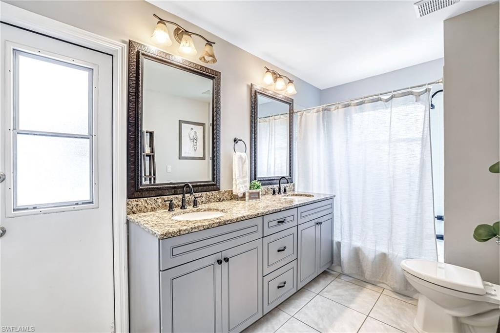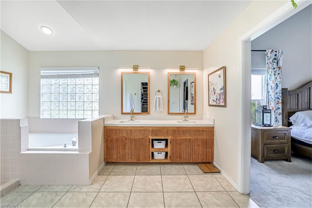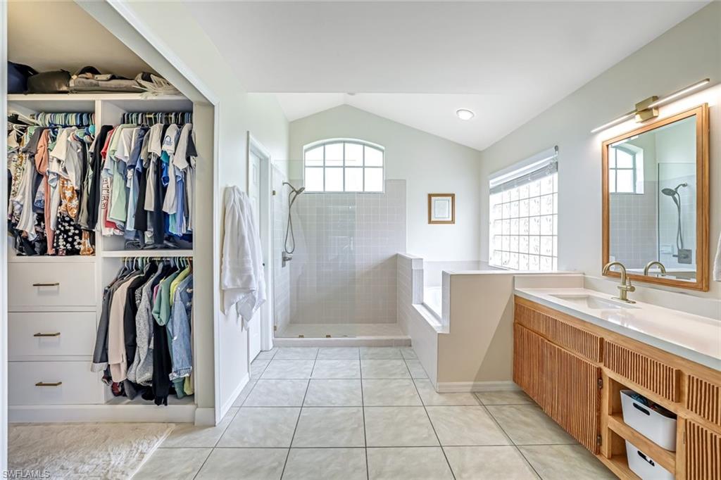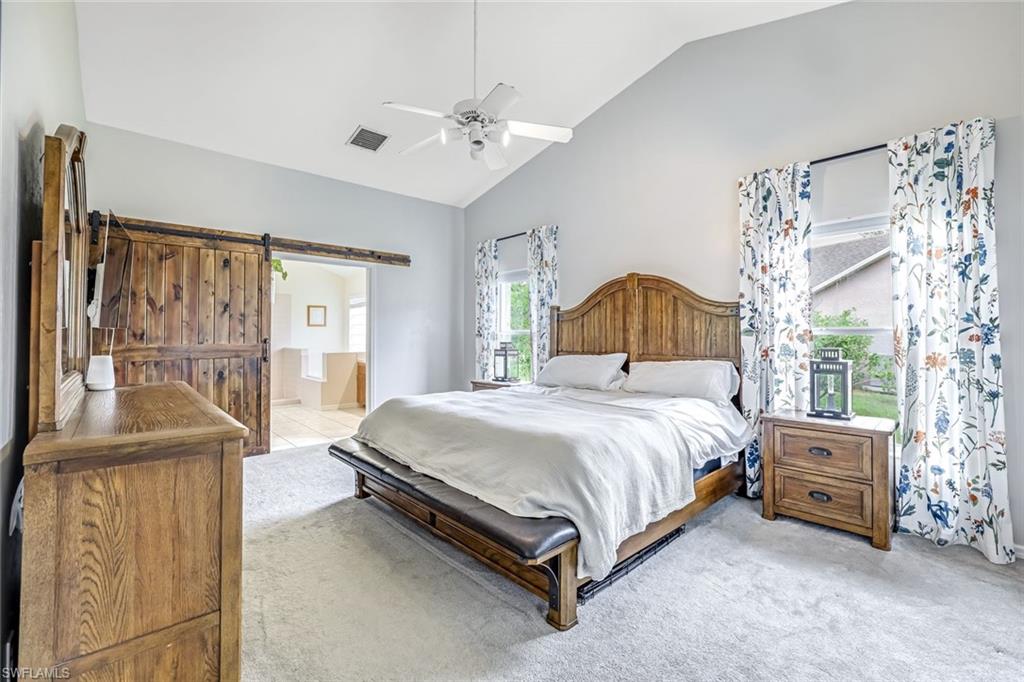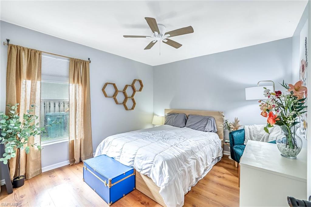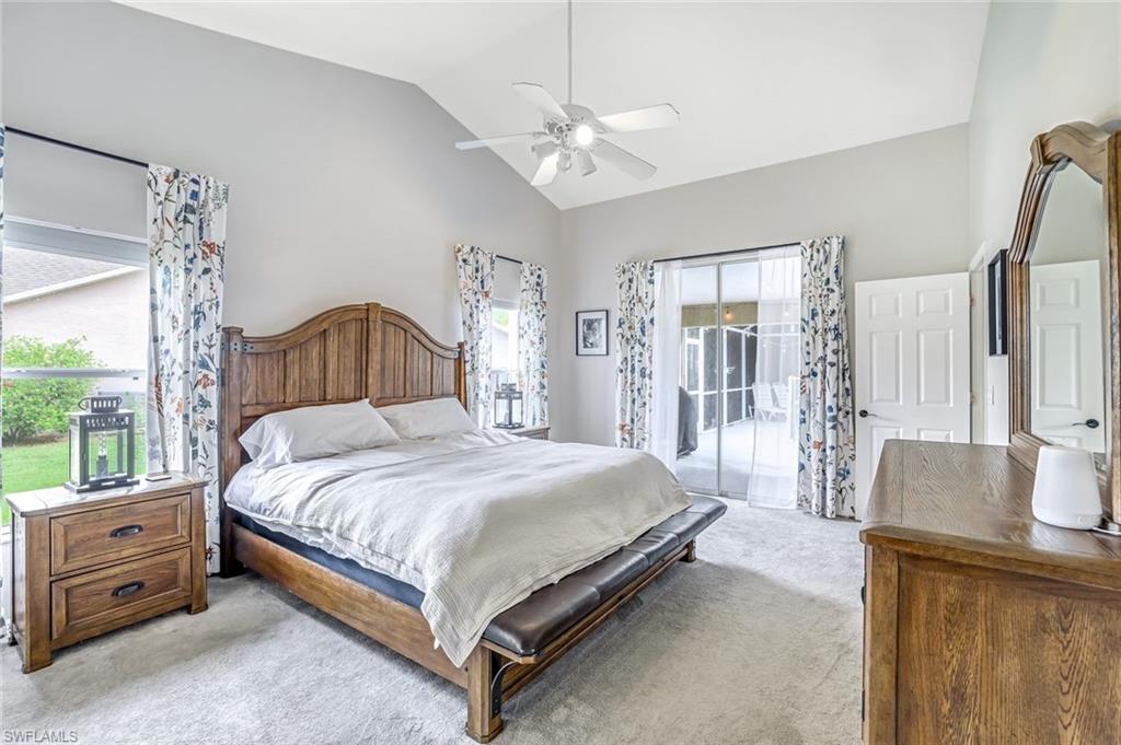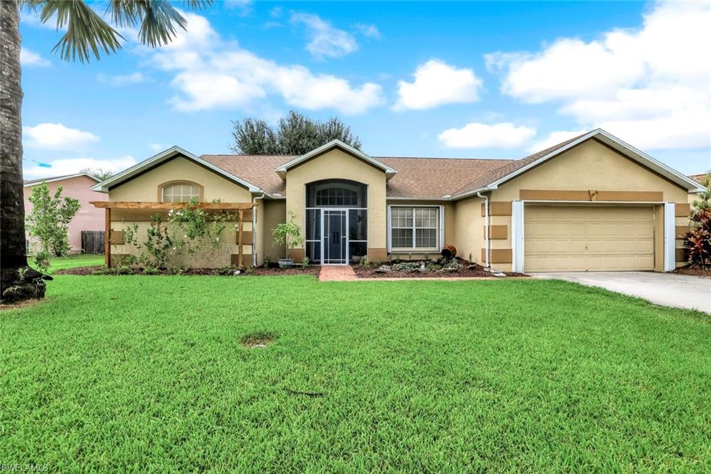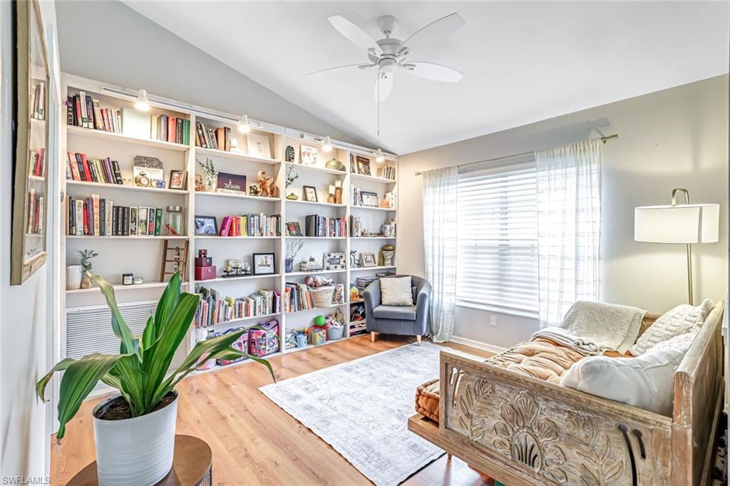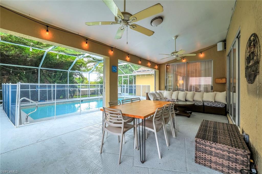 Welcome to this charming 3+den, 2 bath home! Nestled on a 1/4 acre lot in a quiet, well-kept neighborhood, this residence features a screened in pool, perfect for year round Florida living. The open concept floor plan and volume ceilings give a large living feel. The kitchen flows seamlessly into the dining and living areas, and the den, plus additional desk work stations give versatility to those who work from home, or just desire separate living areas. Split bedrooms allow privacy and personal space. The master bathroom features a new, custom built double vanity, glass shower enclosure and custom cabinetry in the walk in closet. The second bathroom has granite countertops with dual sinks and also serves as a pool bath. Outside enjoy your private, screened pool overlooking a lake on your fully fenced yard with fruit trees and tropical landscaping-perfect for pets, play and relaxation. Located just minutes from shopping centers, restaurants, downtown Naples and beautiful beaches. All of this, plus low HOA fees, this home has so much to offer!