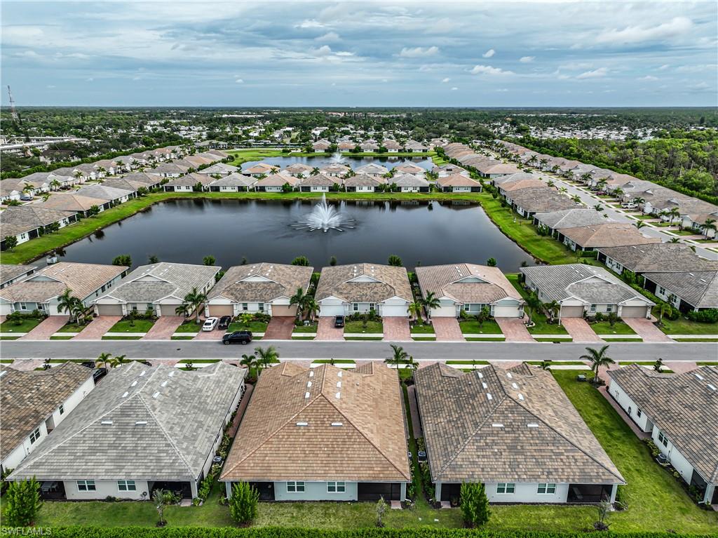 Built in 2023, this immaculate 2 bedroom plus den villa, showcases serene lake and fountain views from the private screened lanai. The sunshade was added for extra privacy while enjoying the sounds from the fountain and sipping your favorite beverage. The open floor plan features plantation shutters, high ceilings, and abundant natural light. The kitchen offers quartz countertops, stainless steel appliances, and a large wrap around bar. The master suite includes a custom walk-in closet, double sink vanity and large walk-in shower. Additional highlights: epoxy-finished garage floor, split-bedroom layout, and versatile den for extra guests or private office space. Separate laundry room with cabinets for storage. Brand new front door screen and numerous ceiling fans, allows the SWFL breeze to pass through the home during the fabulous winter months the Paradise Coast is known for. Other extras for you are the bath mirrors and enhanced landscaping. Enbrook’s gated community amenities include a clubhouse, resort pool, fitness center, tennis, pickleball, and bocce. Ideally located near shopping, dining, and the beaches of Naples and Marco Island. The Marco Island Judge Jolly bridge is 7 miles and Naple's 5th Ave. is 11 miles. Being a Collier County resident, you can enjoy any of the county beach parking lots with your free parking sticker. Seller has made application with FEMA to remove the required Flood Insurance on this property making it possible to finance without flood insurance