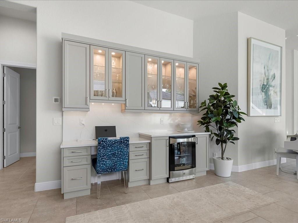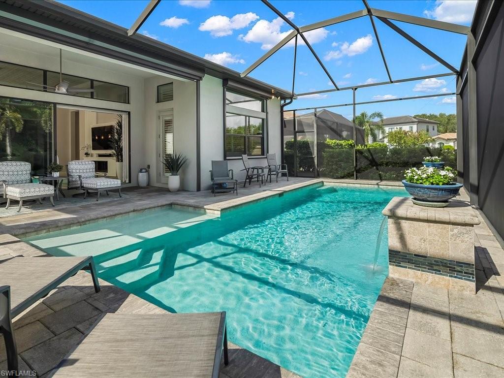 Opportunity awaits at 10046 Florence Circle, where sophistication meets comfort in the coveted gated community of Palazzo. This exquisite El Paso floor plan offers nearly 2,600 square feet of luxurious living, a rare 3-car garage, and sits proudly on an oversized lot—delivering the space and features discerning buyers’ demand. From the moment you enter, the attention to detail is unmistakable. Custom light fixtures, crown molding, designer wall coverings, and remote-control Hunter Douglas shades set a tone of understated elegance. At the heart of the home, the expansive great room flows effortlessly into the brand-new chef’s kitchen, showcasing 42” cabinetry, gleaming quartz countertops, Thermador appliances, and thoughtfully curated finishes. Every element has been professionally designed and executed to perfection. The primary suite serves as a private sanctuary, featuring dual vanities, custom walk-in closets, and an oversized shower that elevates the spa-like ambiance. Each secondary bedroom and bath have been designed with equal care, ensuring both comfort and style. Outdoors, the screened lanai invites year-round enjoyment, overlooking a custom saltwater pool with a tranquil water feature—perfect for unwinding or entertaining. Palazzo residents enjoy low HOA fees, natural gas, and no CDD costs, with optional golf, tennis, and social memberships nearby. Ideally located close to shopping, dining, and the pristine Gulf beaches, this property combines convenience, community, and craftsmanship. Come experience the elegance of 10046 Florence Circle—a home where every detail has been carefully considered and every comfort thoughtfully provided.