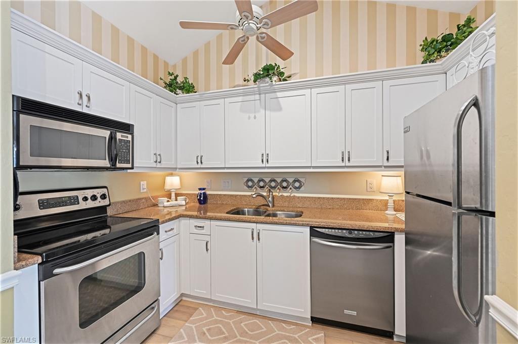 Welcome to Gloucester Bay – This beautifully updated and spacious 3-bedroom, 2-bathroom end-unit is not only ideally located just steps from vibrant downtown Naples and the serene oasis of Cambier Park, but it is also the lowest-priced 3-bedroom residence available in all of downtown Naples—making it an incredible opportunity for both homeowners and investors. One of the community’s most unique advantages is its elevated grounds, where the Units sustained NO hurricane damage through the last three major storms. Inside, you’ll find soaring vaulted ceilings, Abundant Natural light, plantation shutters, crown molding, generously sized rooms, and custom finishes that elevate the open, airy floor plan. The kitchen shines with granite countertops, stainless steel appliances, and abundant cabinetry, while the inviting living spaces flow seamlessly to the enclosed Florida room—complete with air conditioning for year-round enjoyment. Step outside to the large covered deck, where Sparkling pool views & Lush landscaping create the perfect backdrop for morning coffee or evening cocktails. This intimate, low-density community of just six units ensures privacy while still fostering a warm neighborhood feel. The resort-style pool, framed by lush tropical landscaping and featuring a brand-new heater, offers the ideal spot to cool off or relax in the sun. The location is unmatched—walk to Fifth Avenue South’s boutique shopping, world-class dining, and cultural events, or cross the street to enjoy Cambier Park’s tennis courts, playgrounds, and the Norris Center. A nearby boat launch provides quick access to Naples Bay, and the white sandy beaches are just a short bike ride away. Additional highlights include covered parking with plenty of guest spaces, a dedicated in-unit laundry room, generous storage, and a newer roof. Rentals are allowed with a 30-day minimum, offering excellent seasonal or investment potential. This condo combines location, lifestyle, and unmatched value—a rare chance to own the most affordable 3-bedroom residence in downtown Naples with hurricane-safe peace of mind.