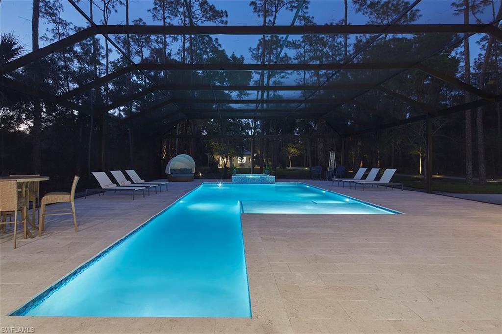 Look no further than this custom, nearly new, secluded 2.27-acre estate in exclusive Logan Woods. Completed in 2024, the five-bedroom plus study, five-full and one-half-bath great room home with three-car attached garage leaves nothing to be desired. Behind the home, a winding brick paver driveway leads to an additional detached climate-controlled three-car garage, ideal for additional automobiles, workshop or storage. The custom kitchen with an upscale mix of white quartz and quartzite countertops and high-end JennAir appliance package flows to the expansive, covered lanai with cypress wood ceiling ideal for entertaining family and friends. The tranquil private outdoor living area continues with an oversized heated pool and raised spa with an additional sun shelf and lap lane, outdoor kitchen with XO gas grill, all screened-in with unobstructed picture window screens. Additional features include a whole home R/O system and Generac generator, automated front entry gate, hurricane-impact windows and doors throughout and a convenient pool bath. A world of luxury awaits you in Logan Woods, close to all Naples has to offer, yet allowing for a private, secluded lifestyle.