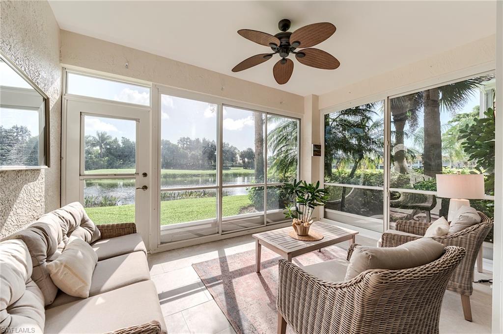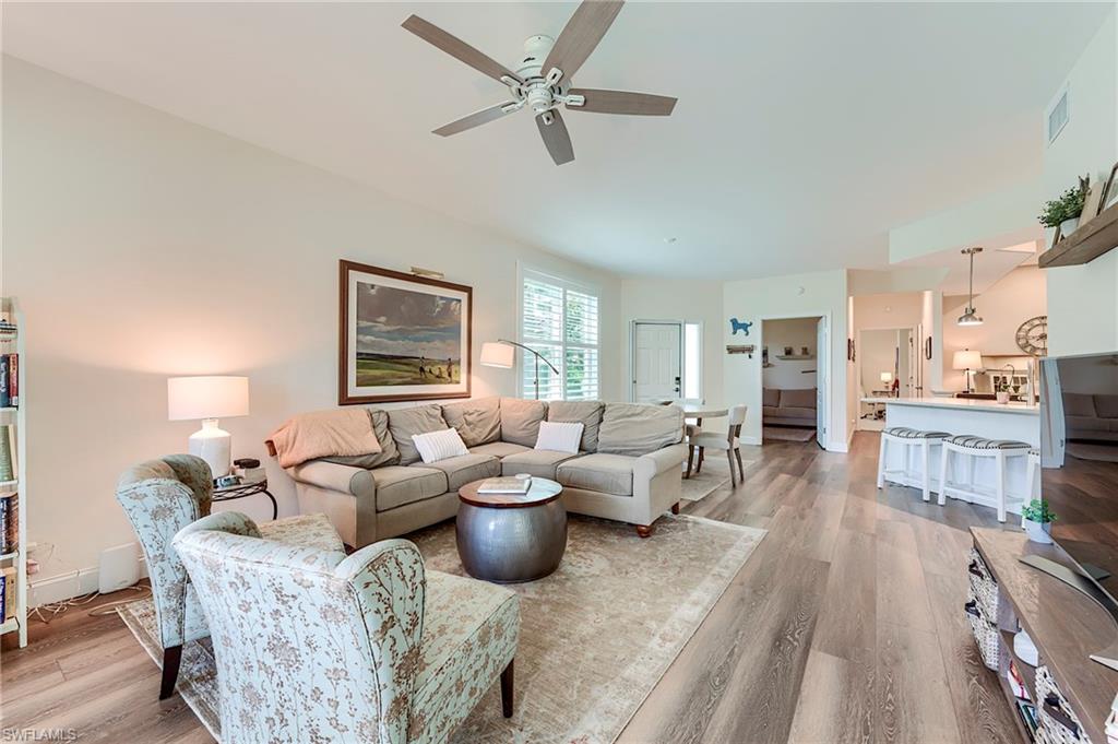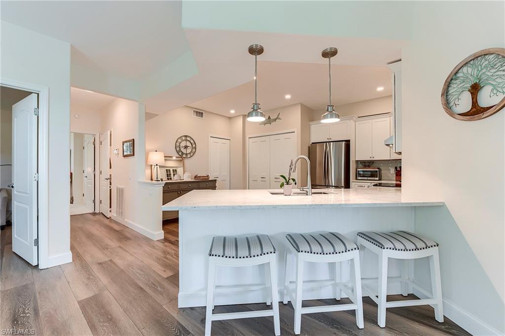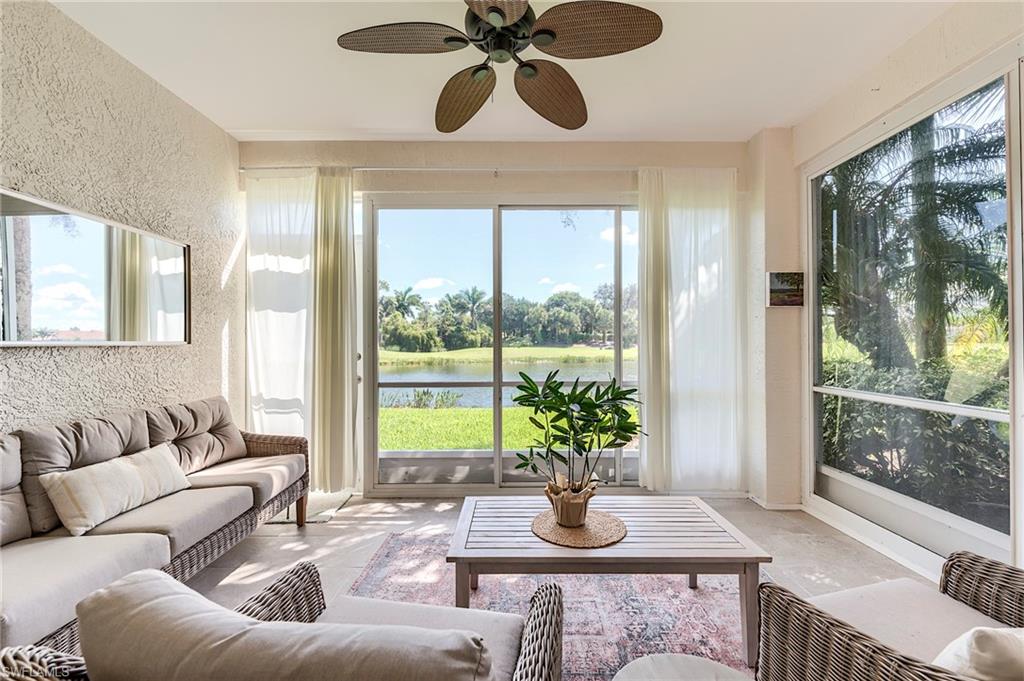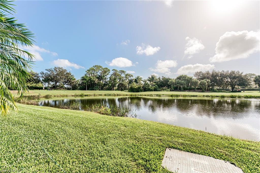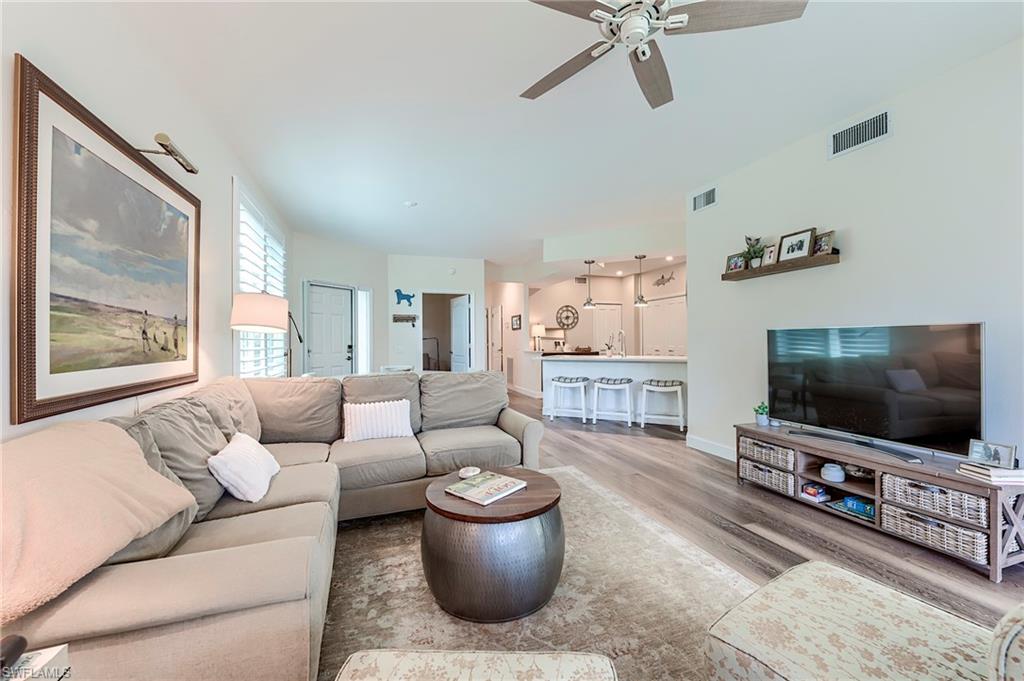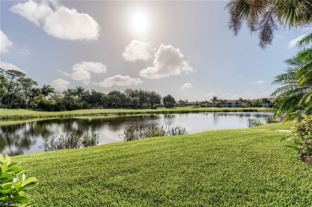 Welcome to this beautiful completely remodeled end-unit condo with one of the best views you will find looking over lake, gardens and 6th green of golf course. Located in highly sought-after Spring Run at the Brooks, offering bundled golf recently remodeled club with resort pool and beach club available. Home has been tastefully upgraded throughout featuring hurricane impact windows, wide board wood-inspired flooring and plantation shutters. Kitchen has been beautifully updated with shaker style cabinets, gorgeous quartz countertops, new stainless appliances, and LED lighting. Bathrooms updated with new vanities, quartz counters, large tile floors, fixtures and lighting and frameless glass shower in primary suite. This beautifully maintained end-unit coach home features a bright and open floor plan with 2 bedrooms + den and two full 2 bathrooms. The spacious great room flows seamlessly into the dining area and sunroom, perfect for entertaining or simply enjoying the serene Southwest Florida lifestyle. The primary suite includes a large walk-in closet and a private en-suite bath with dual vanities and walk-in shower. As a resident of Spring Run you’ll enjoy bundled golf membership with access to an 18-hole championship golf course, pro shop, clubhouse with dining, tennis, bocce, fitness center, and a sparkling resort-style pool. Optional memberships are also available at The Commons Club for private beach access, spa, 7 pickleball courts, full service fitness center and additional amenities. Centrally located in Estero, this home places you just minutes from Coconut Point Mall, RSW International Airport, and some of the best dining, shopping, and beaches in Southwest Florida. Whether you’re seeking a seasonal retreat or full-time residence, this home is move-in ready and offers the perfect blend of comfort and convenience.