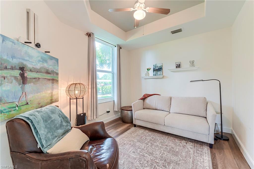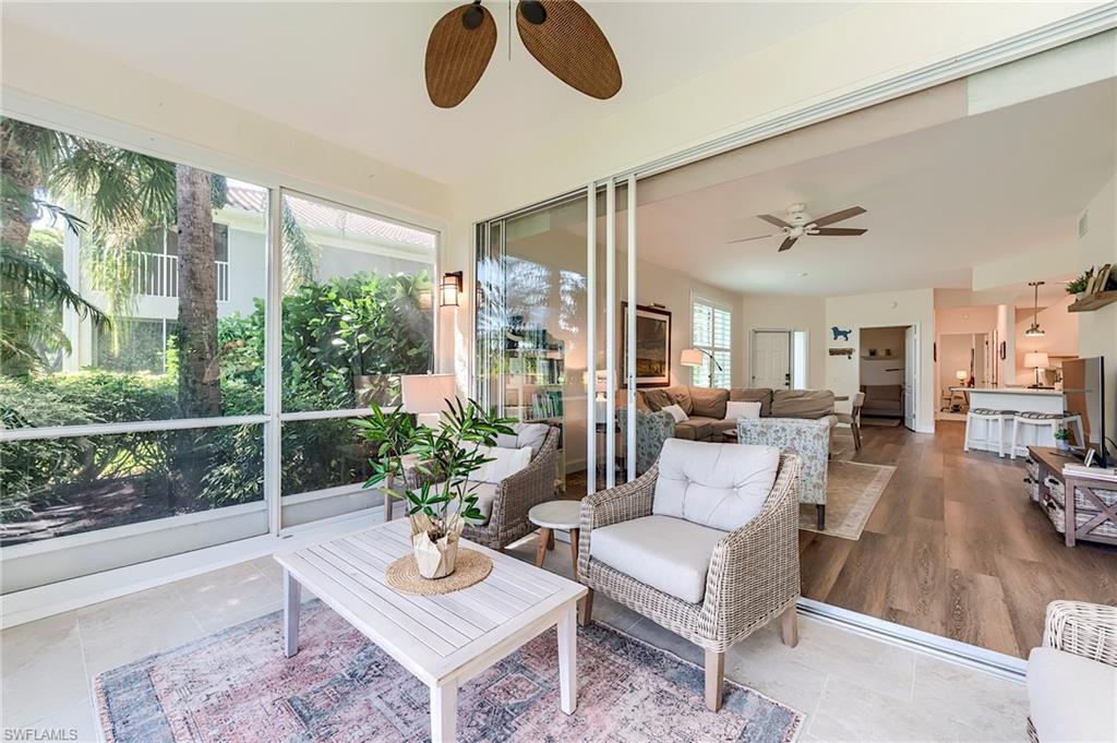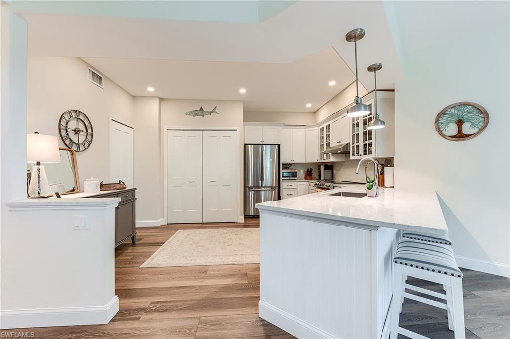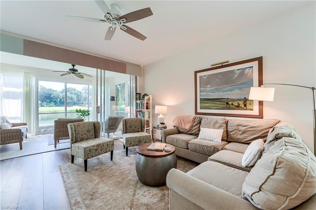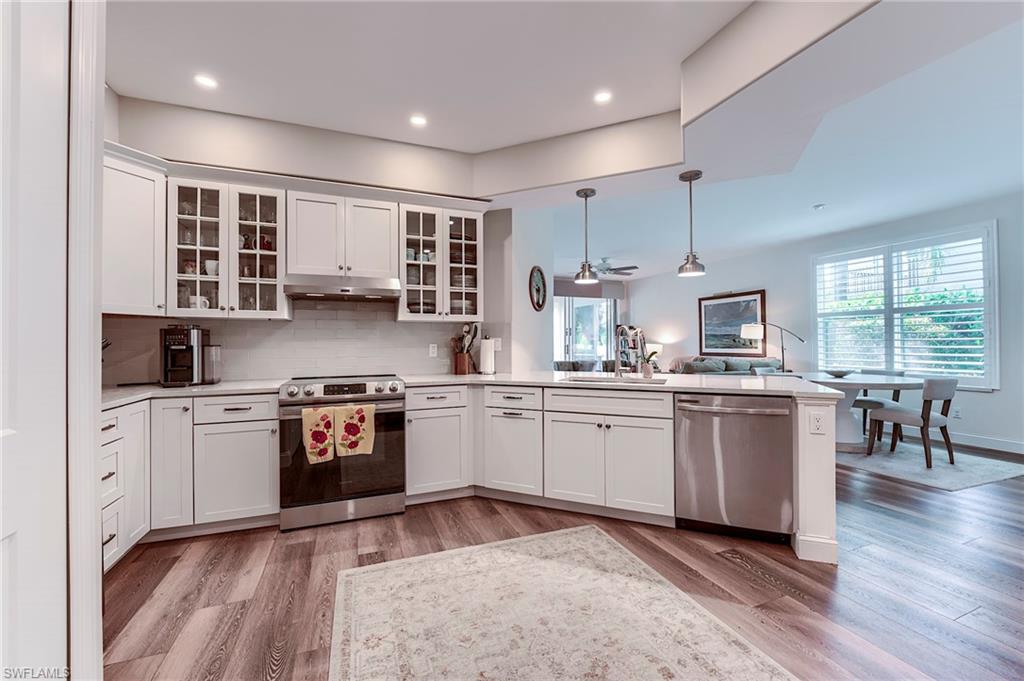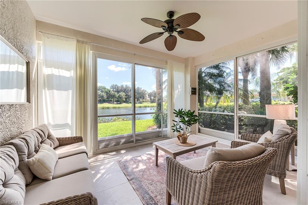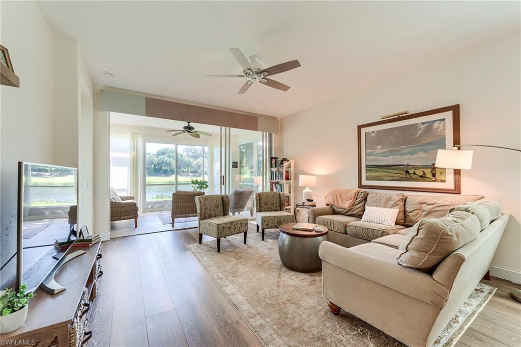 Welcome to this beautiful completely remodeled end-unit condo with one of the best views you will find looking over lake, gardens and 6th green of golf course. Located in highly sought-after Spring Run at the Brooks, offering bundled golf recently remodeled club with resort pool and beach club available. Home has been tastefully upgraded throughout featuring hurricane impact windows, wide board wood-inspired flooring and plantation shutters. Kitchen has been beautifully updated with shaker style cabinets, gorgeous quartz countertops, new stainless appliances, and LED lighting. Bathrooms updated with new vanities, quartz counters, large tile floors, fixtures and lighting and frameless glass shower in primary suite. This beautifully maintained end-unit coach home features a bright and open floor plan with 2 bedrooms + den and two full 2 bathrooms. The spacious great room flows seamlessly into the dining area and sunroom, perfect for entertaining or simply enjoying the serene Southwest Florida lifestyle. The primary suite includes a large walk-in closet and a private en-suite bath with dual vanities and walk-in shower. As a resident of Spring Run you’ll enjoy bundled golf membership with access to an 18-hole championship golf course, pro shop, clubhouse with dining, tennis, bocce, fitness center, and a sparkling resort-style pool. Optional memberships are also available at The Commons Club for private beach access, spa, 7 pickleball courts, full service fitness center and additional amenities. Centrally located in Estero, this home places you just minutes from Coconut Point Mall, RSW International Airport, and some of the best dining, shopping, and beaches in Southwest Florida. Whether you’re seeking a seasonal retreat or full-time residence, this home is move-in ready and offers the perfect blend of comfort and convenience.