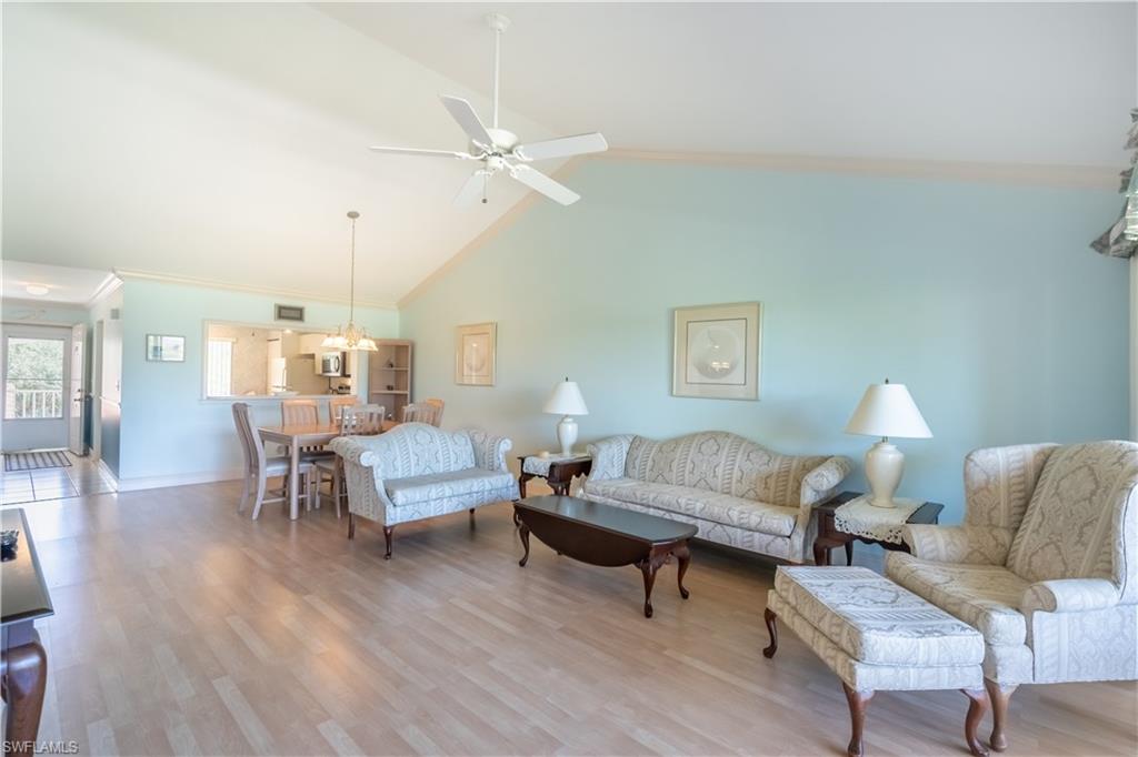MOTIVATED SELLER BRING ALL OFFERS----FULL GOLF MEMBERSHIP---Location, Location, Location! Amazing Ready for Showings--Welcome to Glen Eagle Golf & Country Club Community your slice of paradise in the heart of Naples! This beautifully maintained 2-bedroom + den, 2-bathroom condo offers a Full Golf Membership in the desirable Saratoga Circle community offers a perfect blend of comfort and style. Spanning approximately 1,320 square feet, this second-floor unit boasts an open-concept living space with abundant natural light streaming through large windows and sliding glass doors into the open living area with cathedral ceilings. The kitchen features updated stainless steel appliances, ample cabinetry, pantry and a convenient breakfast bar—ideal for entertaining or casual dining. Step out onto your private screened lanai and enjoy serene views of the 10th fairway of Glen Eagle, a perfect spot for morning coffee or evening relaxation while watching the golfers go by. The lanai is fitted with hurricane shutters to protect from the summer weather. The primary suite is a true retreat, complete with a generous walk-in closet and an en-suite bathroom with a tiled walk-in shower. The second bedroom is split off in the front of the unit for extra privacy, with easy access to the well-appointed guest bathroom. Additional highlights include a den that can be used as an extra bedroom, tv room or office. As well as inside unit laundry, and detached garage steps away from your Front Door. Residents of Saratoga Circle enjoy access to a community pool, clubhouse, and meticulously maintained grounds, all just minutes from Naples’ world-class beaches, dining, and shopping at Fifth Avenue South and the Waterside Shops. Perfect for seasonal residents, retirees, or investors with it's flexible leasing options. Glen Eagle Golf and Country Club is a private, gated, deeded, membership community. Glen Eagle offers its members, transferees, and their guests a par-70, 18-hole championship golf course, fitness center, bocce courts, clubhouse with a billiard room, card rooms, meeting rooms and activities center. Residents access BlueStream Fiber internet and basic cable services as members of the Master Association. The Restaurant consists of a dining room, a private dining room, and a full-service bar and lounge area. The Divot is a cafe next to the Bocce courts where you can enjoy a coffee or refreshments before or after golf or working out in the fitness center. Welcome home to Glen Eagle!