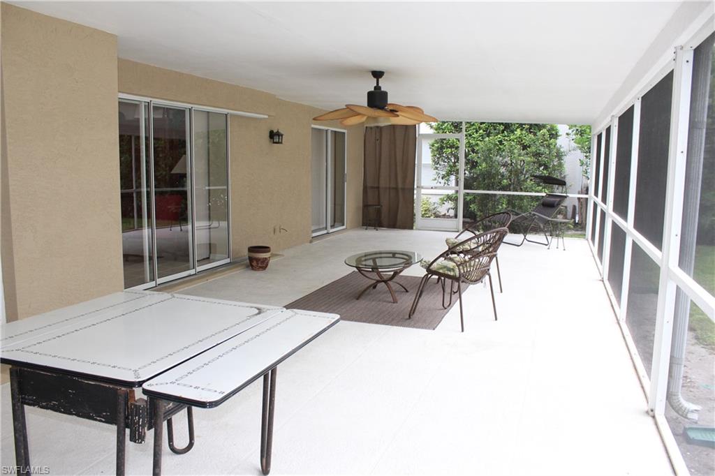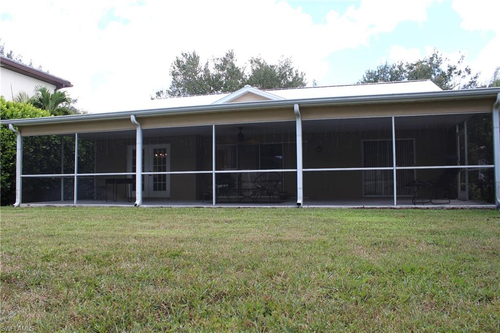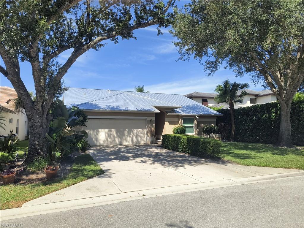 Welcome to this beautifully maintained 3-bedroom, 2-bathroom home located in the highly sought-after Longshore Lakes community in Naples, Florida. This property is not located in a flood zone, offering extra peace of mind. This spacious residence offers an ideal blend of comfort, style, and functionality – perfect for year-round living or a seasonal retreat. Step inside to find a bright and open floor plan with vaulted ceilings (ceiling fans throughout the home), split bedrooms, and plenty of natural light. The home features a new metal roof (2025) for added peace of mind and long-term durability. The expansive lanai is truly a standout feature, offering a serene outdoor living space perfect for relaxing, entertaining, or enjoying the Florida lifestyle year-round. The kitchen includes ample cabinet space, including a pantry for additional storage, and opens to both a cozy dining area showcasing French doors out to the lanai, and the main living space, making it ideal for hosting. The primary suite boasts 2 walk-in closets and an en-suite bathroom with a walk-in shower. Two additional bedrooms, each with a walk-in closet, provide plenty of space for guests, a home office, or hobbies. Additional highlights include a 2-car garage with attic, laundry room w/utility sink, and beautifully landscaped yard. Residents of Longshore Lakes enjoy low HOA fees and resort-style amenities, including a clubhouse/restaurant, community saltwater pool, tennis courts, fitness center, playground, and scenic lakes for kayaking or fishing. Centrally located in North Naples, you're just minutes from white-sand beaches, shopping, dining, and top-rated schools, with the option to attend the STEM school. Don't miss this opportunity to own a move-in-ready home in one of Naples' most desirable gated communities!