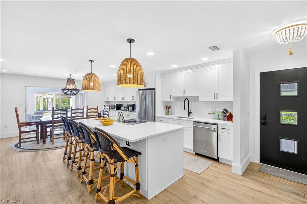 Welcome to your slice of paradise in the exclusive Isles of Capri! This beautifully renovated 2-bedroom, 2-bathroom single-family home offers the quintessential Southwest Florida lifestyle. Imagine waking up to serene waterfront views and enjoying direct, deep-water access to the Gulf of Mexico. The open-concept floor plan has been thoughtfully updated to maximize both space and natural light. The gourmet kitchen boasts sleek, modern finishes and stainless steel appliances, making it a dream for any home chef. Both bedrooms are generously sized and offer a tranquil retreat, while the renovated bathrooms feel like a spa-like oasis. Beyond the impeccable interior, the true highlight of this home is the outdoor living space. A brand new seawall provides peace of mind and long-term value, while the new boat lift is a boater's dream come true, providing effortless access for all your aquatic adventures—from world-class fishing and kayaking to a leisurely cruise at sunset. Located just a short drive from the vibrant dining, shopping, and entertainment of downtown Naples and Marco Island, this home offers the perfect blend of a secluded island escape and convenient access to all the area has to offer. This is more than a home; it's a lifestyle. Don't miss your chance to own a piece of paradise. Schedule your private showing today!