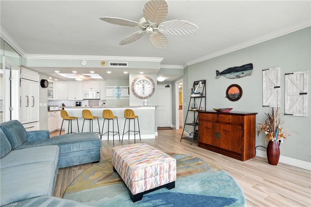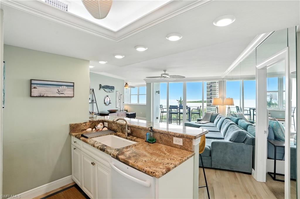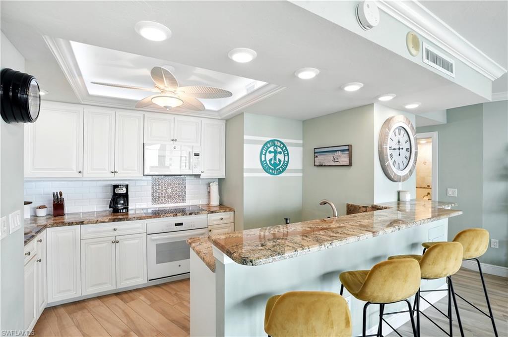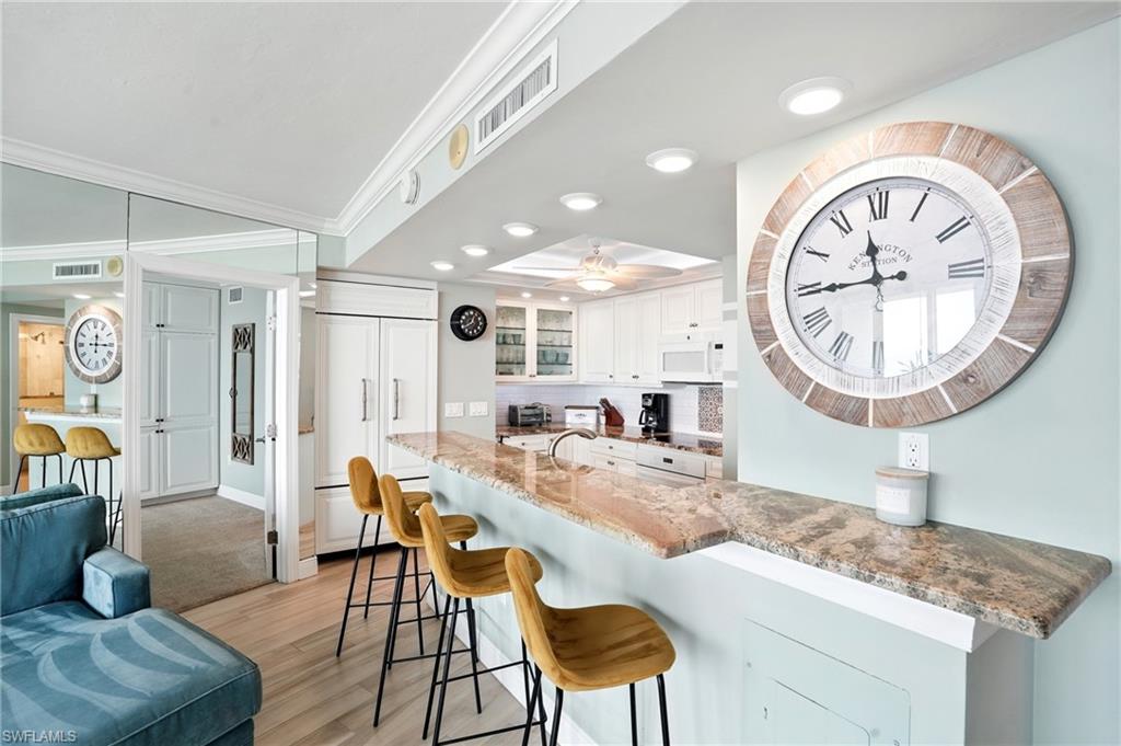 Welcome to this tastefully UPDATED BEACHFRONT Condo at the GULFVIEW APARTMENTS OF MARCO ISLAND which offers the perfect blend of luxury, comfort, and location. Perched on the 8th floor overlooking the Gulf of Mexico, the unit features breathtaking BEACHFRONT VIEWS—from morning tranquility over beautiful blue waters to unforgettable sunsets that paint the sky in vibrant hues each evening. Inside, the condo boasts a coastal design with clean lines, neutral tones, and high-end finishes. The kitchen has been remodeled with custom features including white cabinetry/granite counters, SUB-ZERO refrigerator, WOLF cooktop, CONVECTION oven, and FARMERS sink, open to views and a spacious living area. This open-concept living space flows effortlessly onto a private balcony, your front-row seat to the beach! The primary suite offers direct Gulf views, a custom built-in closet/wardrobe with drawers, and hidden TV cabinet to maximize storage. In the ensuite bath you can appreciate the soaking tub for a spa like experience, or the walk-in shower. For added space, the guest bedroom has been redesigned as 2 rooms to include a den or office with pocketing tempered glass doors, overlooking the gulf. Newer plumbing, electricals, doors and more! Impact-resistant windows complete the stylish, low-maintenance interior. PARKING GARAGE with assigned space and storage closet. If enjoy pickleball or tennis, it’s all here! Located in one of Marco Island’s most sought-after beach-front communities, adjacent to RESIDENTS' BEACH, you're just steps from the sand and a short walk to popular restaurants, boutique shops, and lively cafés. Whether you're looking for a peaceful retreat or a vibrant coastal lifestyle, this pet-friendly building delivers the best of both worlds. Perfect for year-round living, a vacation getaway, or a high-demand rental opportunity. Come see what makes this condo different from all the others!