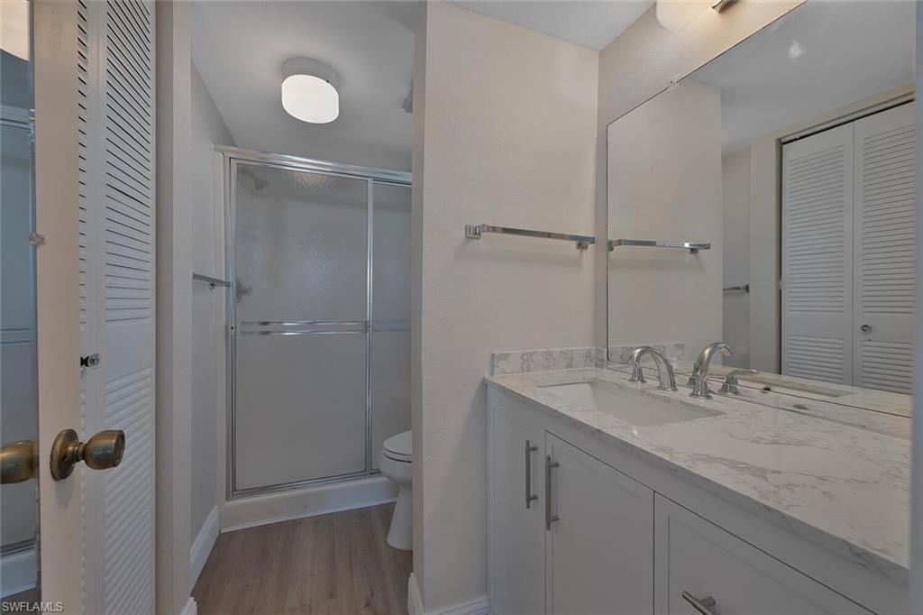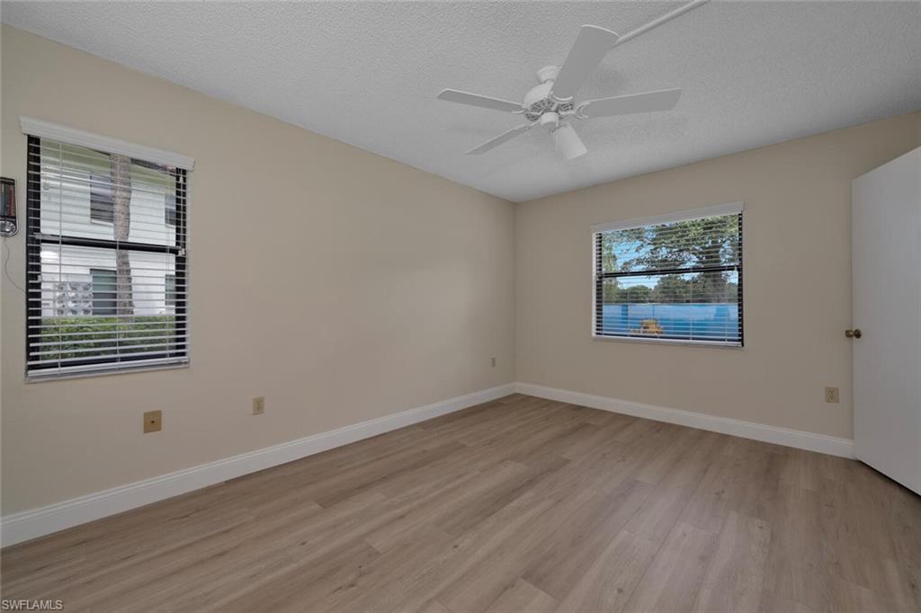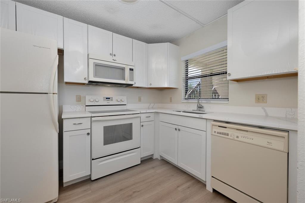 RENOVATED END UNIT: new flooring, new kitchen and bathroom cabinetry. Ready for you to step into the relaxed lifestyle of Fairways at Par Four, a welcoming 55+ community just minutes from the heart of Naples. This first floor, 2 bedroom, 2 bath residence features an open great room design. A screened lanai extends the living space and captures peaceful views of the future Gate Golf Club. Residents of Fairways at Par Four enjoy a variety of amenities designed for both leisure and connection, including a heated swimming pool, clubhouse, pickleball, tennis, bocce ball, and a vibrant calendar of social events such as dinners, dances, movies, and seasonal gatherings. Whether you are looking to stay active, meet new friends, or simply unwind poolside, this community delivers. The Gate Golf Club is a highly anticipated nine hole public course designed by Peter Jacobsen and Jacobsen Hardy, scheduled to debut in 2026. Plans for the club include a high tech driving range, putting course, restaurant, event pavilion, and instructional academy, with discounted access available to Collier County residents. Perfectly situated just 9 miles from downtown Old Naples and its world class shopping, dining, and white sand beaches, the location offers both convenience and charm. This condo offers great value in a lively, amenity rich neighborhood.