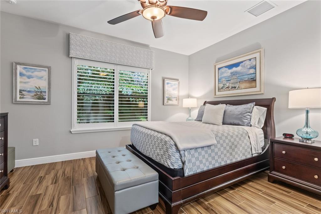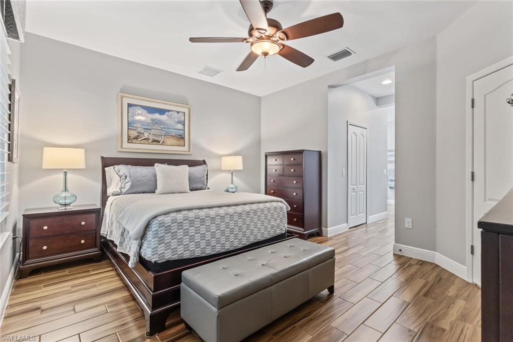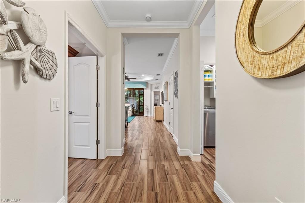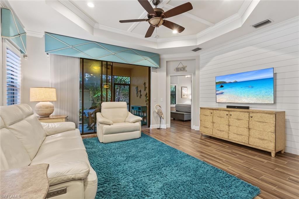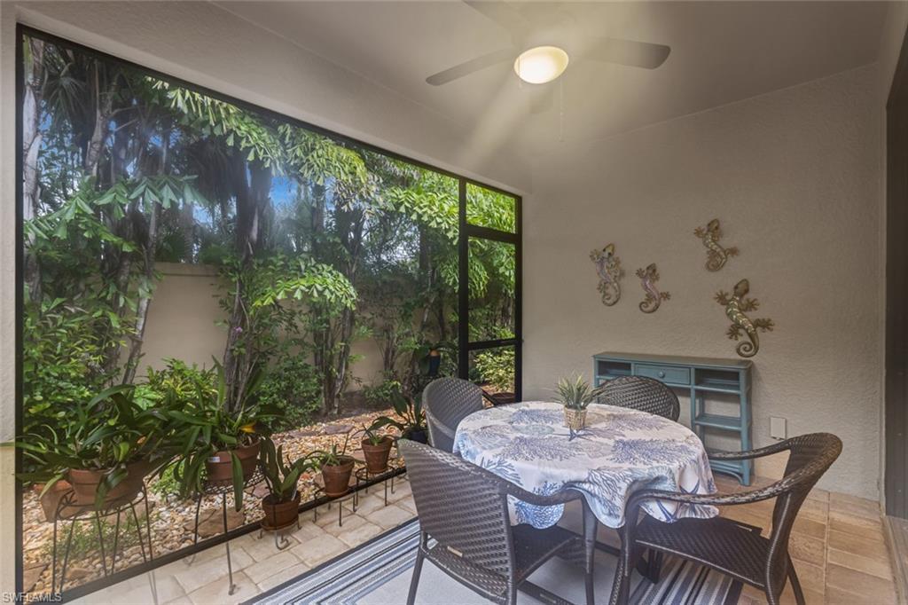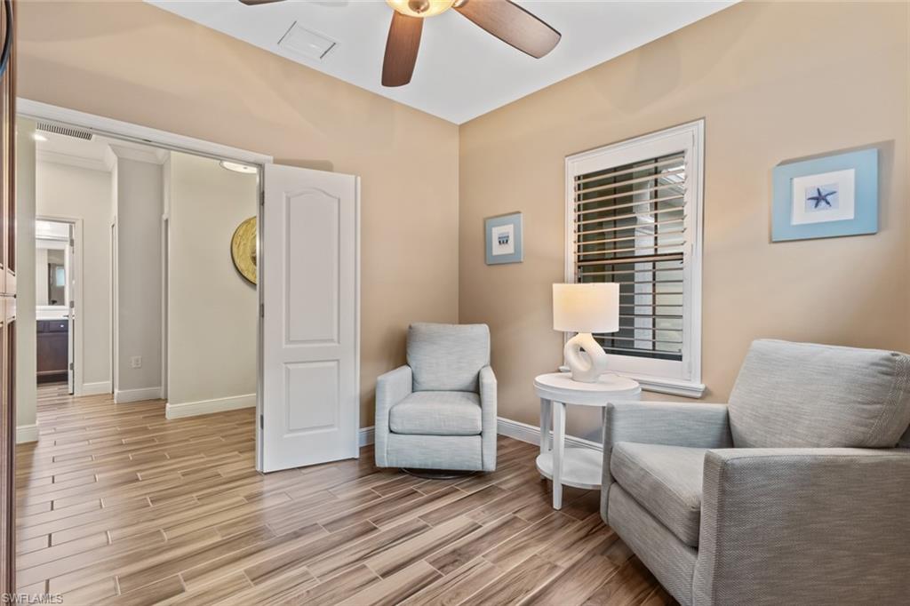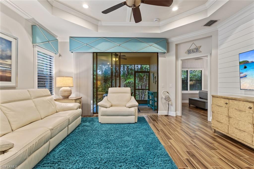Welcome to Villa Palmeras in Estero— where Florida living meets comfort and style! This well-appointed, Neal-built villa offers the perfect blend of charm, convenience, and low-maintenance living — with NO CDD fees and NO flood zone! With only one owner, this home showcases the Crystal Sand split bedroom floor plan featuring 2 bedrooms, 2 bathrooms, and a versatile den/office that easily converts into a third bedroom with a custom Murphy bed and negotiable furnishings. The open layout highlights a spacious great room and dining area that flow seamlessly to a screened lanai through sliding doors, ideal for entertaining. The kitchen is a chef’s delight with a natural gas stove, granite countertops, stainless steel appliances, a large island, and ample wood cabinetry. The primary suite offers two closets (one walk-in with custom shelving), dual vanities, and a generous walk-in shower for added luxury. Additional features include: Crown molding, Tile flooring throughout, Shiplap accents and a Two-car garage with SafeRack storage. Villa Palmeras offers a community pool/spa, grilling area, cabanas, and a peaceful nature boardwalk. Situated in the heart of Estero, provides easy access to I-75, US-41, the airport, dining, shopping, entertainment, beaches and more!