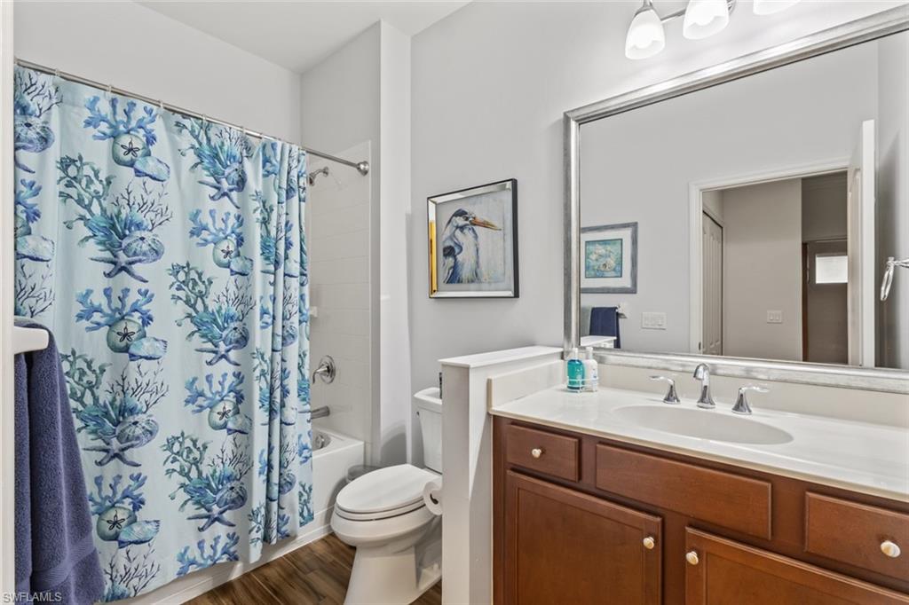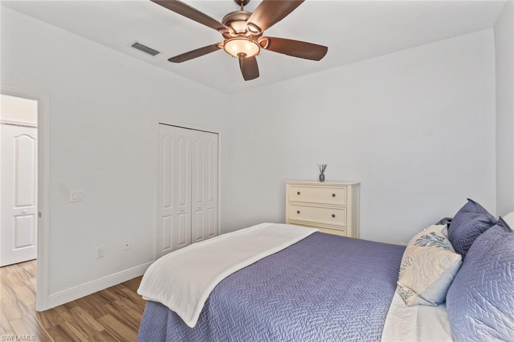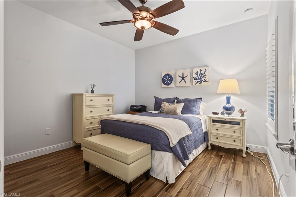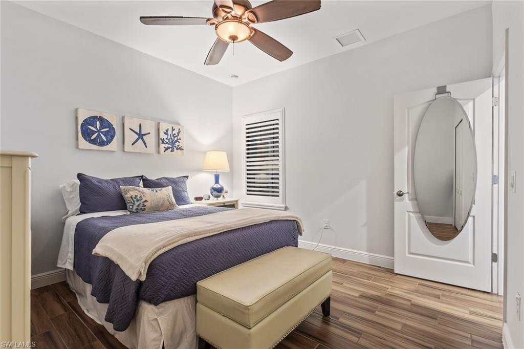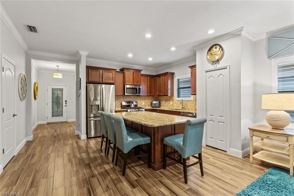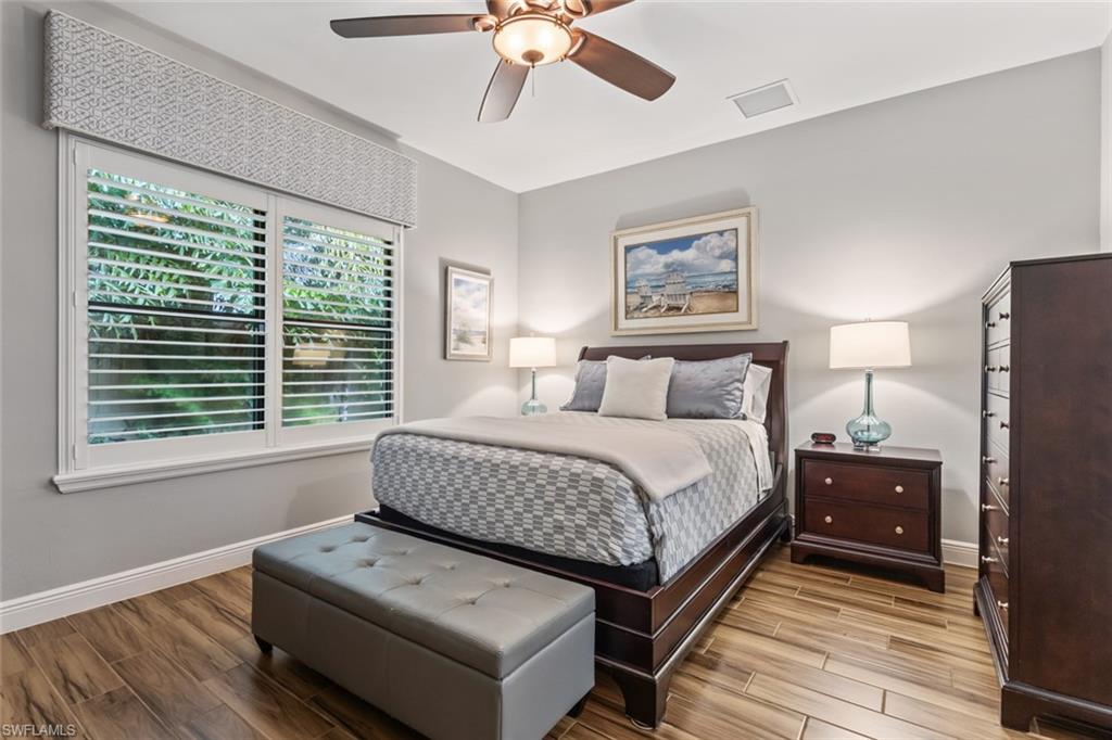 Welcome to Villa Palmeras in Estero— where Florida living meets comfort and style! This well-appointed, Neal-built villa offers the perfect blend of charm, convenience, and low-maintenance living — with NO CDD fees and NO flood zone! With only one owner, this home showcases the Crystal Sand split bedroom floor plan featuring 2 bedrooms, 2 bathrooms, and a versatile den/office that easily converts into a third bedroom with a custom Murphy bed and negotiable furnishings. The open layout highlights a spacious great room and dining area that flow seamlessly to a screened lanai through sliding doors, ideal for entertaining. The kitchen is a chef’s delight with a natural gas stove, granite countertops, stainless steel appliances, a large island, and ample wood cabinetry. The primary suite offers two closets (one walk-in with custom shelving), dual vanities, and a generous walk-in shower for added luxury. Additional features include: Crown molding, Tile flooring throughout, Shiplap accents and a Two-car garage with SafeRack storage. Villa Palmeras offers a community pool/spa, grilling area, cabanas, and a peaceful nature boardwalk. Situated in the heart of Estero, provides easy access to I-75, US-41, the airport, dining, shopping, entertainment, beaches and more!