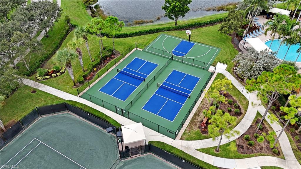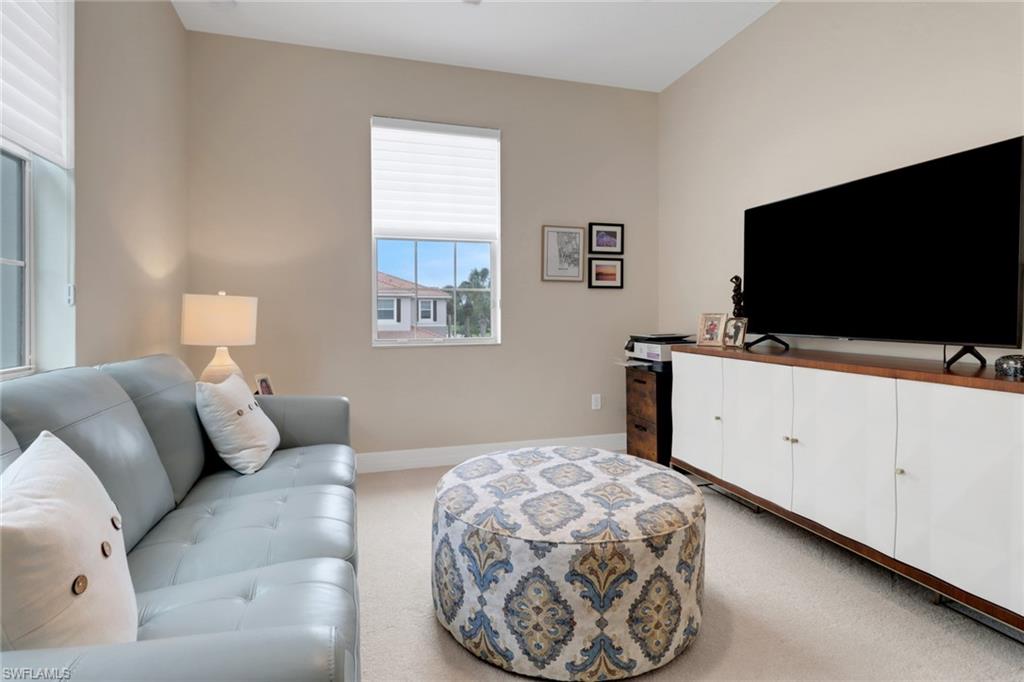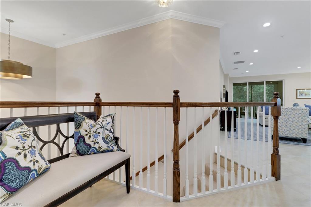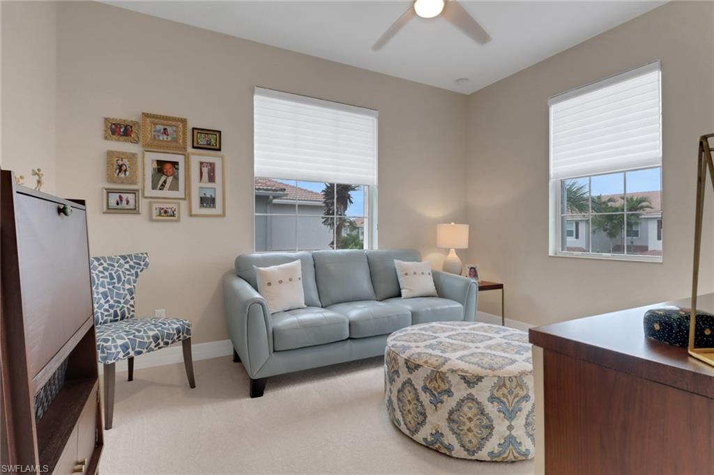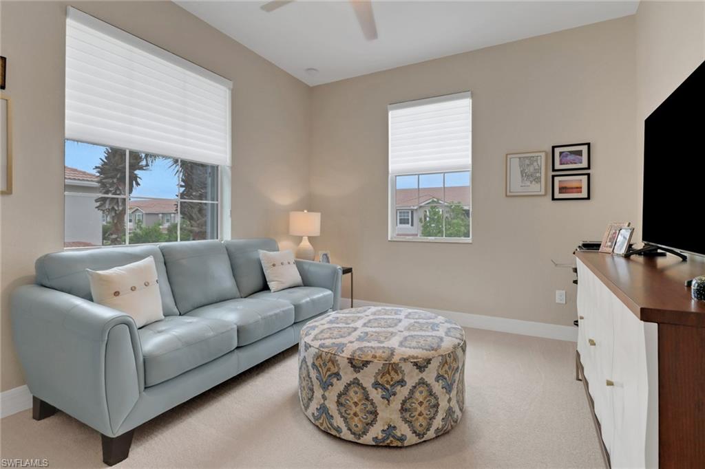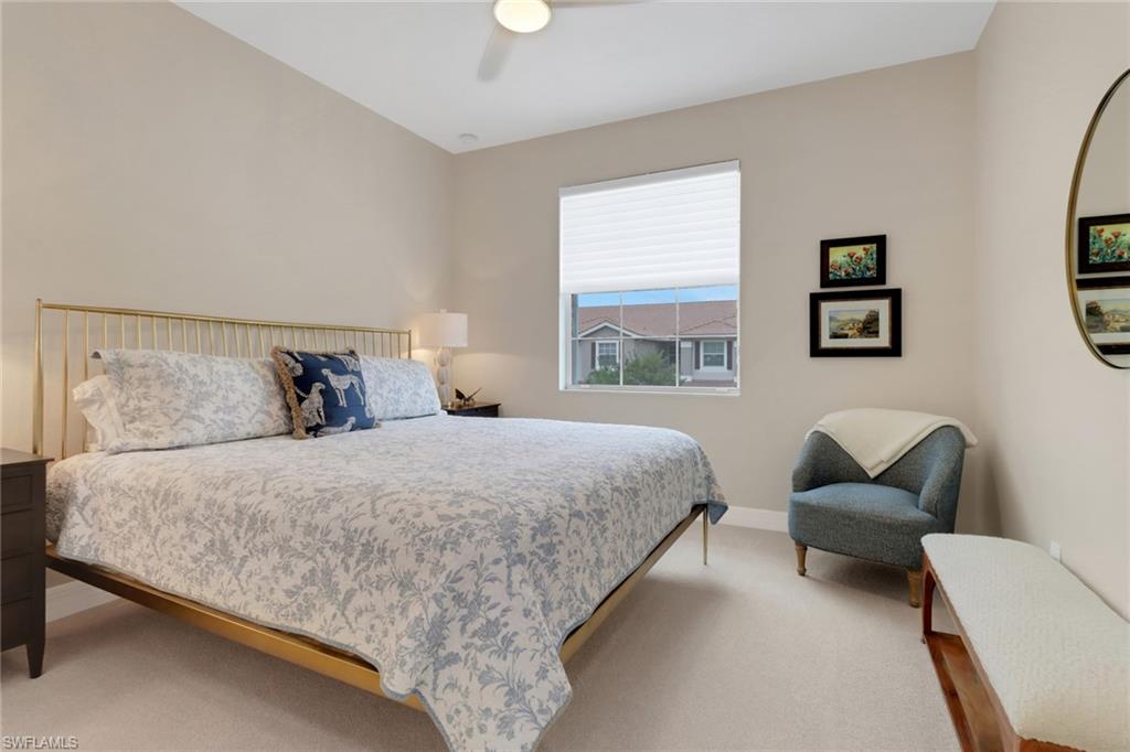 Welcome to the pinnacle of resort-style living in the prestigious Marbella Lakes community, just minutes from the heart of Naples. This exquisite end-unit Napoli model offers 3 bedrooms plus a den, 2 ½ baths, 2,288 square feet, and a 2-car garage. Thoughtfully updated, every surface has been refreshed, including painted walls, trim, ceilings, doors, and garage. The ceramic floors, including the lanai, have been professionally cleaned and sealed, and the lanai itself pressure-washed for a fresh start. Closets have been upgraded with custom California Closet Systems, while new lighting fixtures elevate the foyer, dining area, bathrooms, and stairway, complemented by energy-efficient LED recessed lighting throughout. The kitchen and baths have been beautifully transformed with freshly painted white cabinetry, new quartz countertops, marble backsplash, sinks, and faucets. The primary bath features an updated shower (2024), resurfaced bathtubs, and three new toilets (2023). New Hunter Douglas soft shades replace blinds in every room, and all bedrooms and the den feature new ceiling fans. New High-quality carpet graces the stairs, bedrooms, and den, while the laundry room has been enhanced with cabinets in place of wire shelving. Major updates include a new AC system with humidity control, a full suite of new appliances (2023–2024), and accordion hurricane shutters for nearly every window and lanai. Beyond the home, Marbella Lakes offers an unparalleled lifestyle. The 8,000 sq. ft. lifestyle center includes an indoor sports complex, fitness center, billiards and game room, social hall, and resort-style pool and spa with an oversized sundeck. Residents also enjoy tennis and pickleball courts, along with a full-time social director who organizes events and activities year-round. With onsite management, vibrant community life, and top-notch amenities, Marbella Lakes is the perfect place to call home—whether for families, couples, or singles seeking an active Naples lifestyle.
