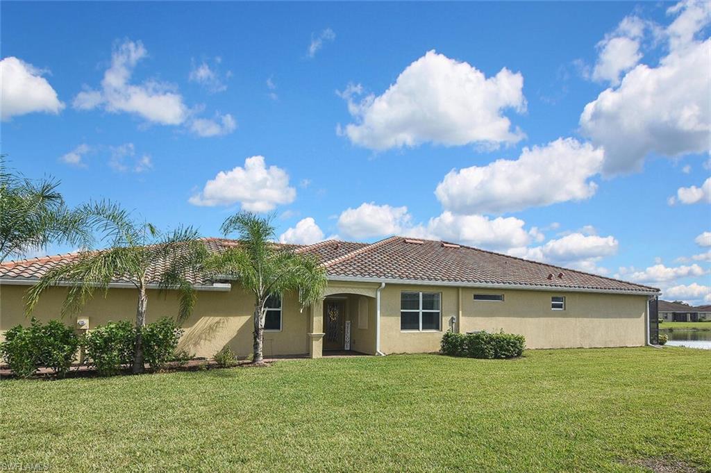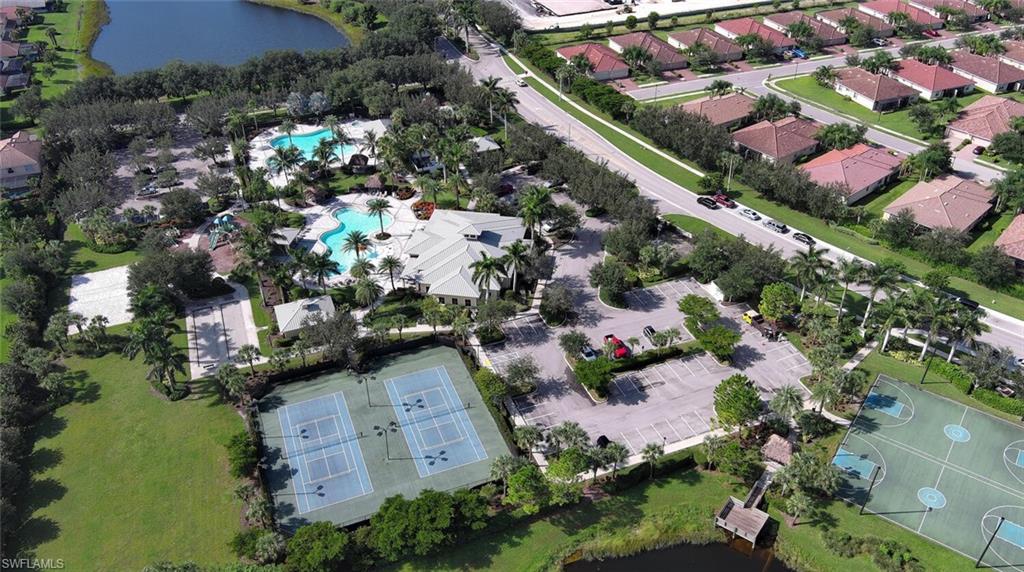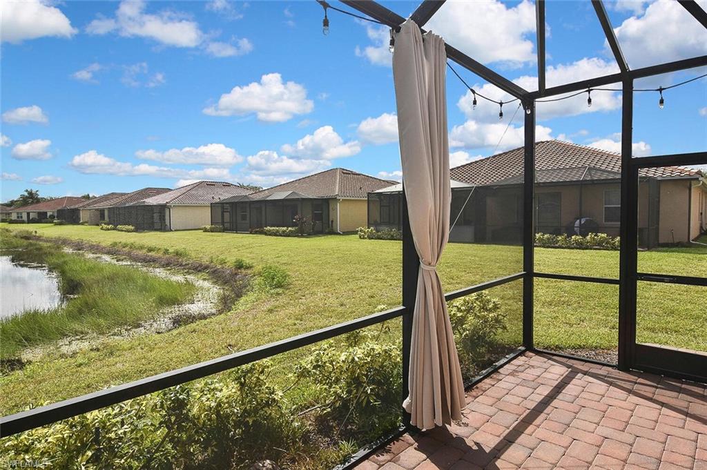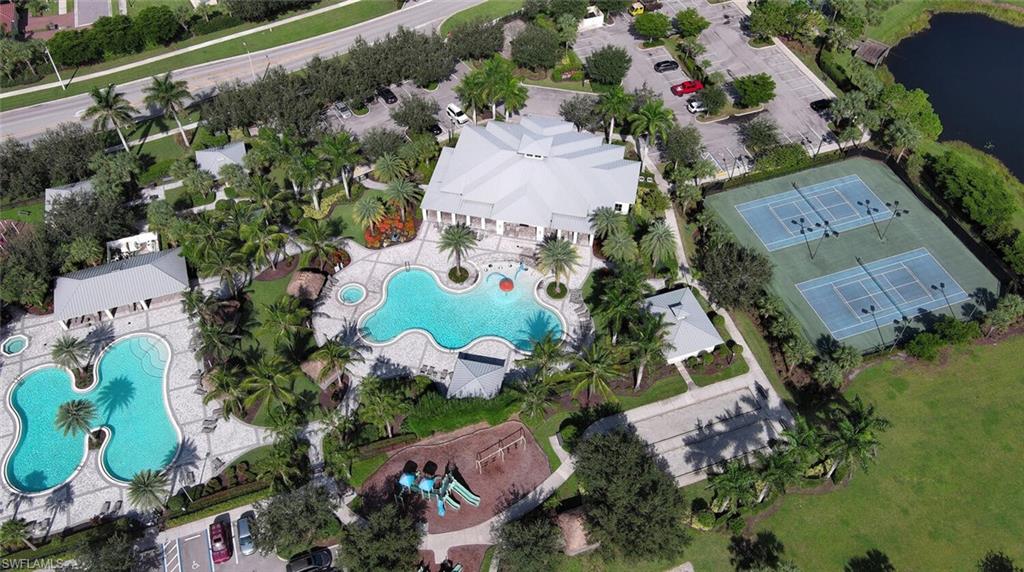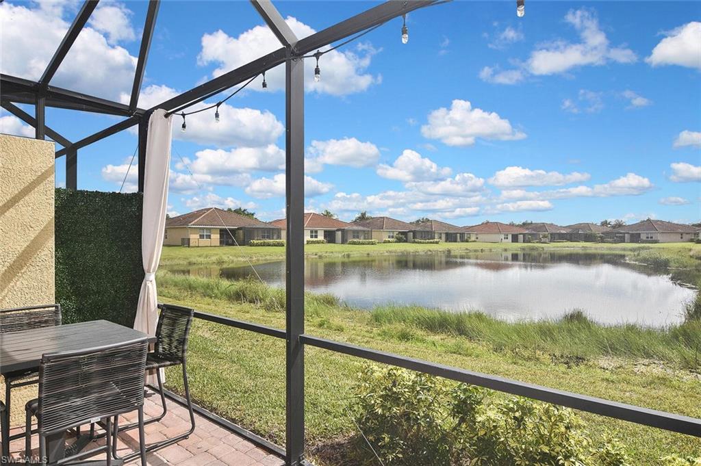 Paradise Resort-Style Living with Lake Views Enjoy spacious living in this beautifully maintained 2+Den, 2-bath home with a 2-car garage, perfectly situated on an oversized end-unit lot. The prime location offers added privacy, a generous yard, and peaceful lake views surrounded by lush landscaping. Step inside to an open-concept floor plan featuring split bedrooms, a large dining area, and a stunning kitchen with upgraded fixtures and finishes. The expansive lanai is ideal for seamless indoor-outdoor living and entertaining. The master suite boasts a walk-in closet, master bath with dual sinks, and a frameless glass shower enclosure. Guests will appreciate the spacious bedrooms with ample storage. Thoughtful upgrades throughout the home include stylish light and plumbing fixtures, ceiling fans (including the lanai), modern hardware, beautiful, angled tile flooring, garage shelving, and epoxy-sealed garage floors. With only 3 years of age, this immaculate home offers low-maintenance living. The community features low HOA fees that cover lawn care, irrigation, and access to incredible amenities: a newly renovated clubhouse, two resort-style pools and spas, tennis, basketball, and volleyball courts, fitness center, playground, bike paths, and secure gated entry. Conveniently located just minutes from a new shopping complex with a grocery store soon to be completed. This home truly has it all—comfort, convenience, and resort-style living. Schedule your private showing today.
