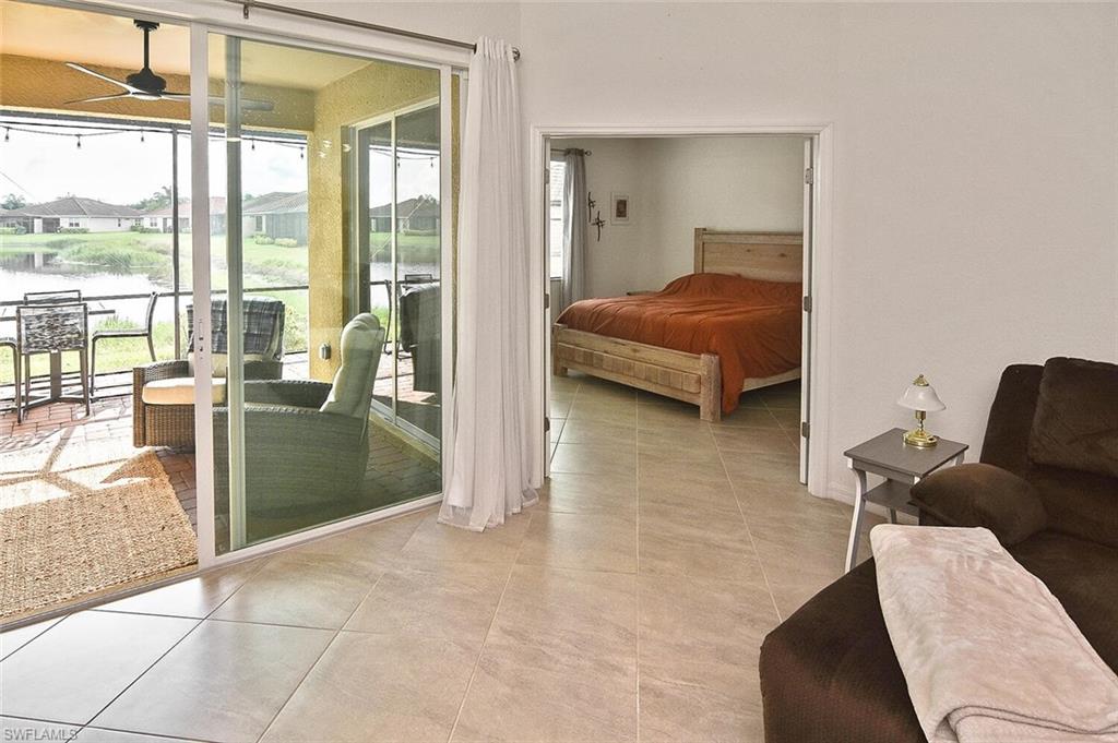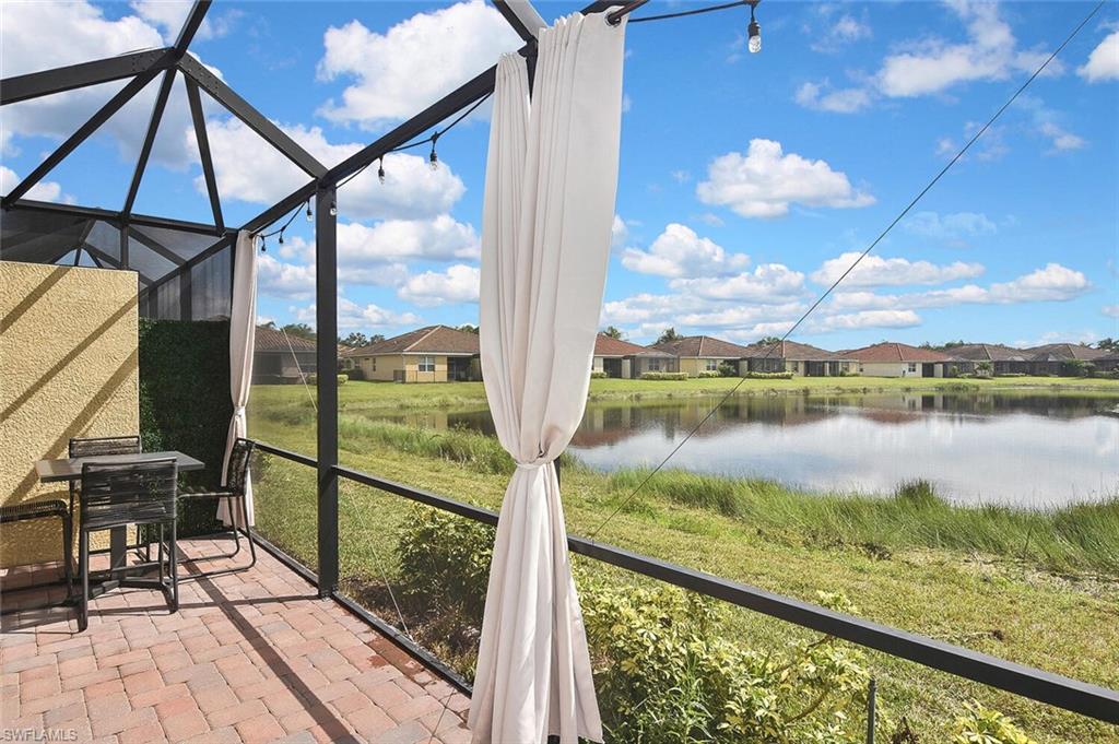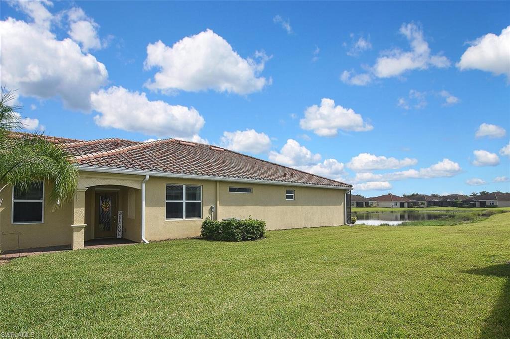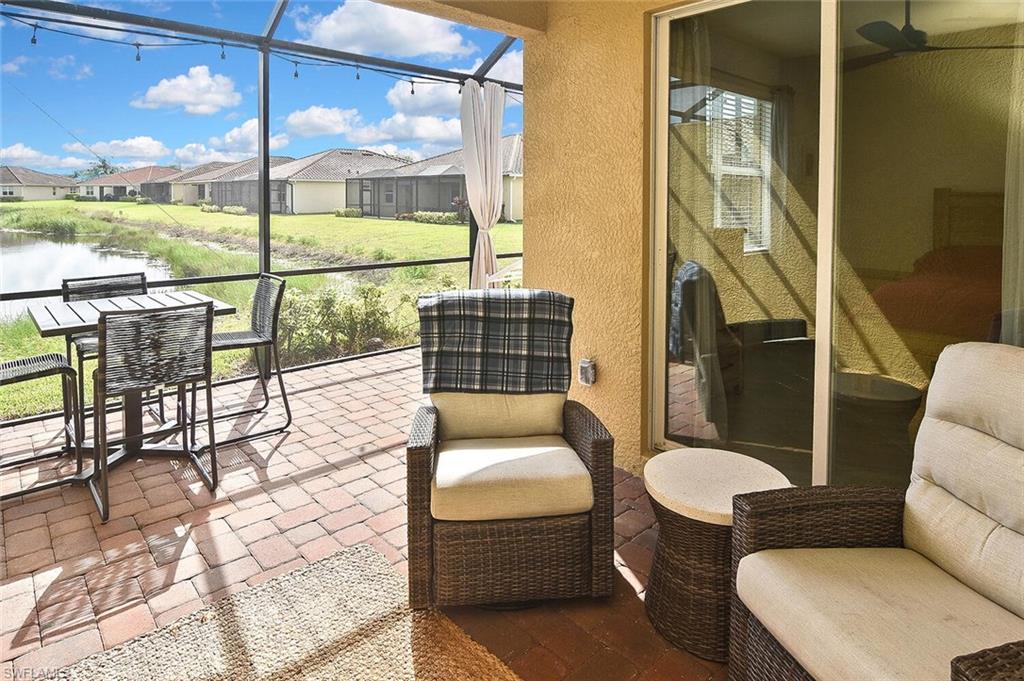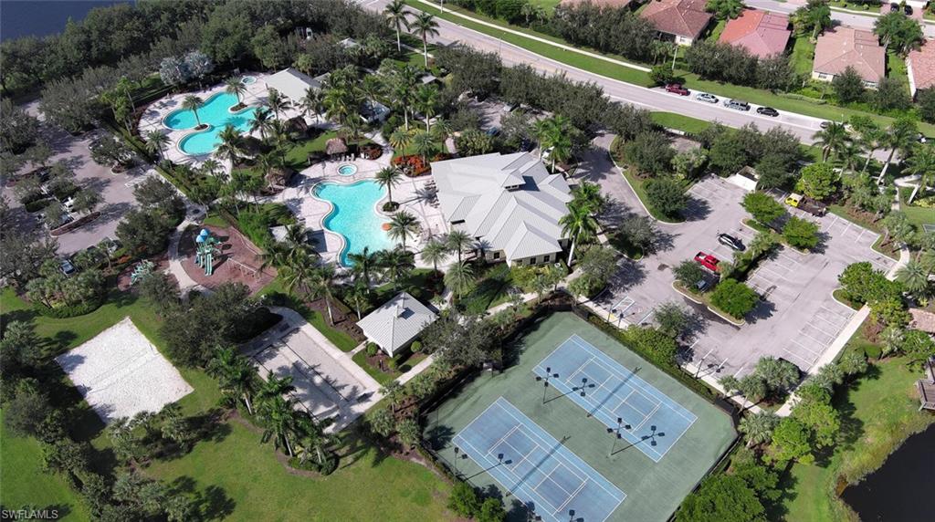 Paradise Resort-Style Living with Lake Views Enjoy spacious living in this beautifully maintained 2+Den, 2-bath home with a 2-car garage, perfectly situated on an oversized end-unit lot. The prime location offers added privacy, a generous yard, and peaceful lake views surrounded by lush landscaping. Step inside to an open-concept floor plan featuring split bedrooms, a large dining area, and a stunning kitchen with upgraded fixtures and finishes. The expansive lanai is ideal for seamless indoor-outdoor living and entertaining. The master suite boasts a walk-in closet, master bath with dual sinks, and a frameless glass shower enclosure. Guests will appreciate the spacious bedrooms with ample storage. Thoughtful upgrades throughout the home include stylish light and plumbing fixtures, ceiling fans (including the lanai), modern hardware, beautiful, angled tile flooring, garage shelving, and epoxy-sealed garage floors. With only 3 years of age, this immaculate home offers low-maintenance living. The community features low HOA fees that cover lawn care, irrigation, and access to incredible amenities: a newly renovated clubhouse, two resort-style pools and spas, tennis, basketball, and volleyball courts, fitness center, playground, bike paths, and secure gated entry. Conveniently located just minutes from a new shopping complex with a grocery store soon to be completed. This home truly has it all—comfort, convenience, and resort-style living. Schedule your private showing today.