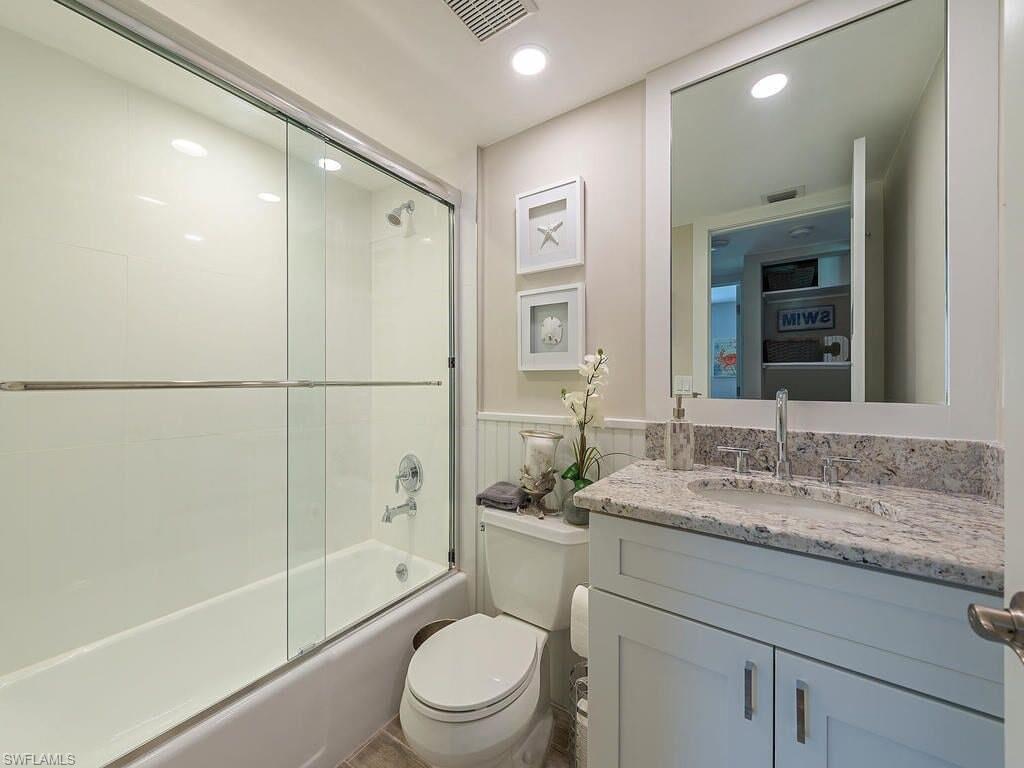 Super cute and completely renovated from top to bottom. Ready to enjoy or rent as you wish. Own a piece of Naples Paradise! Less than 30 minutes from RSW/Ft Myers airport, this coastal designed/decorated condo is situated in the popular and convenient central location of Naples--close to shopping, dining, Old Naples, Mercato, beaches and more. Tucked away in the Pinewoods Subdivision off Airport Road and close to Grey Oaks CC, you will love the quiet ambience of the area and the serene lake views from your screened in lanai. Enjoy the pool just steps from your condo, tennis courts and the covered carport within close proximity to your front door. Everything is newer-kitchen, flooring, cabinetry, appliances, wine refrigerator, shower doors, custom mirrors, window treatments, ship lap, bead board, beautiful granite....AND all the new furniture and decor remains if you wish, or owner can remove. No leases attached to the property, so you can move right in, enjoy yourself, or use as an investment. HOA is small, yet strong and only has 6 friendly homeowners with long term professional HOA management.