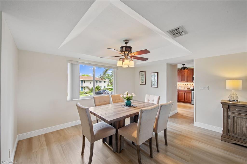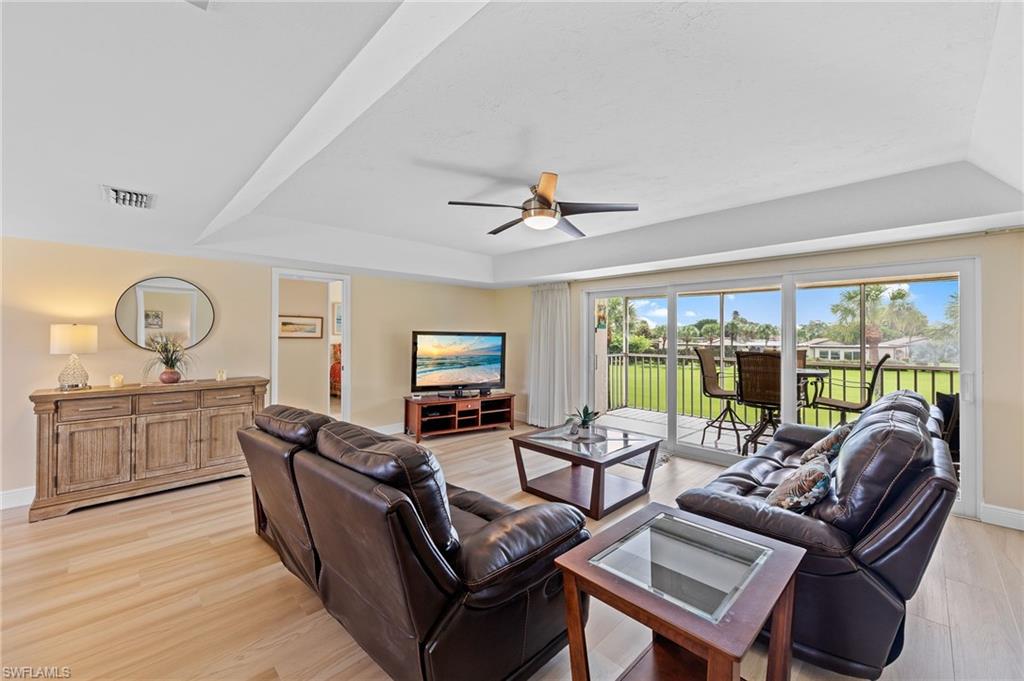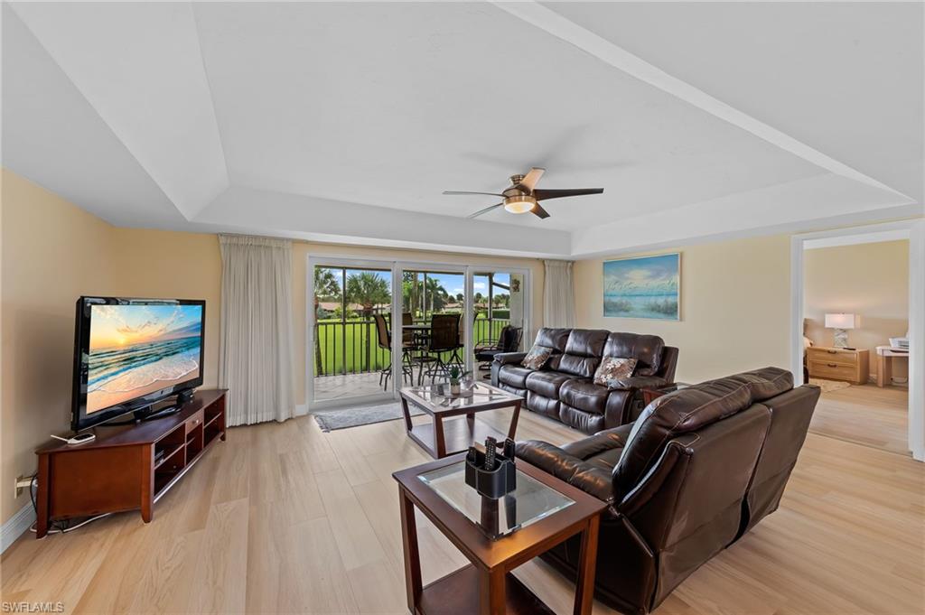 Be the first to walk on the brand-new flooring in this spacious 1,542 sq. ft. second-floor Bayou model condo located in the highly desirable Glades Golf & Country Club. This beautifully updated home features an open and airy floor plan, an updated kitchen with modern finishes, and renovated baths for a fresh, move-in-ready feel. Enjoy a spectacular view of the Pines Golf Course right from your screened lanai, creating the perfect backdrop for your Naples lifestyle. The Glades Golf & Country Club offers resort-style amenities, including two Gordon Lewis-designed golf courses—the Pines par-70 course and the Palmetto par-55 executive course—12 brand-new pickleball courts, resurfaced Har-Tru tennis courts, a 19th Hole Restaurant with a new outdoor dining deck, nine swimming pools, bocce courts, and a vibrant clubhouse with year-round activities. All of this is just 10 minutes from downtown Naples, world-class dining, shopping, and the white sandy Gulf beaches.
