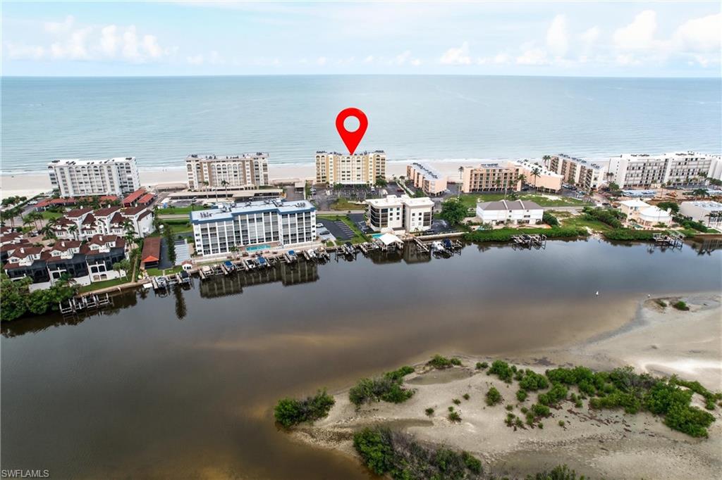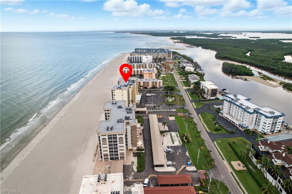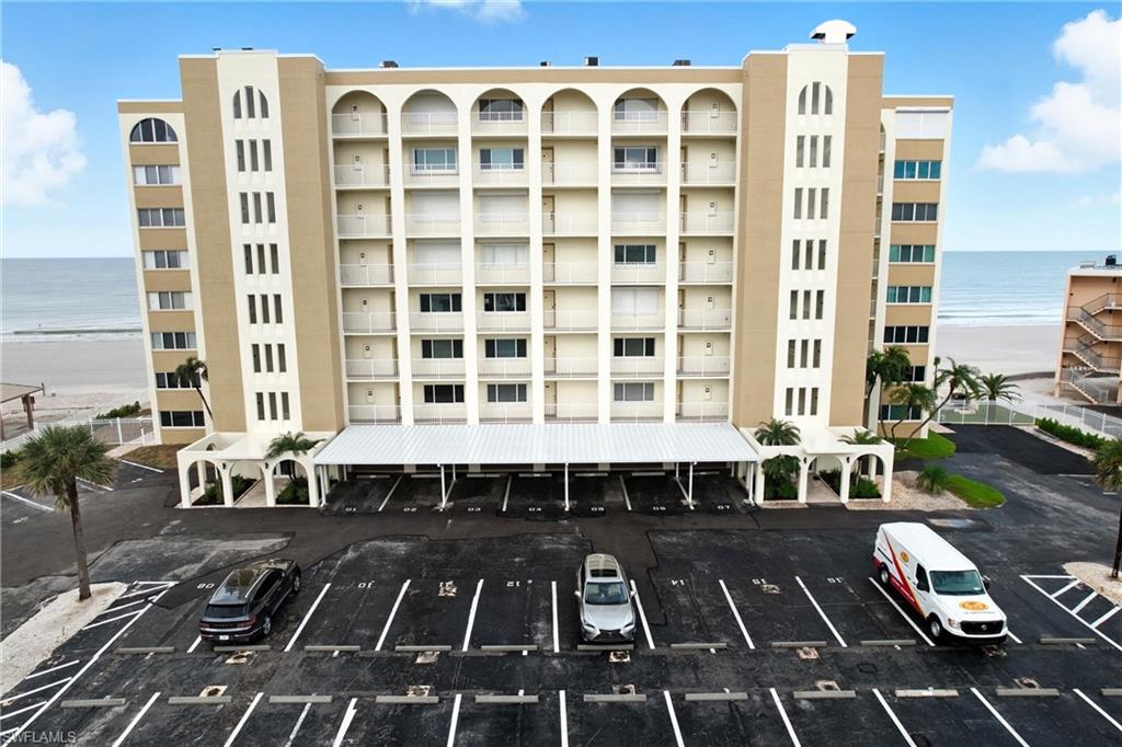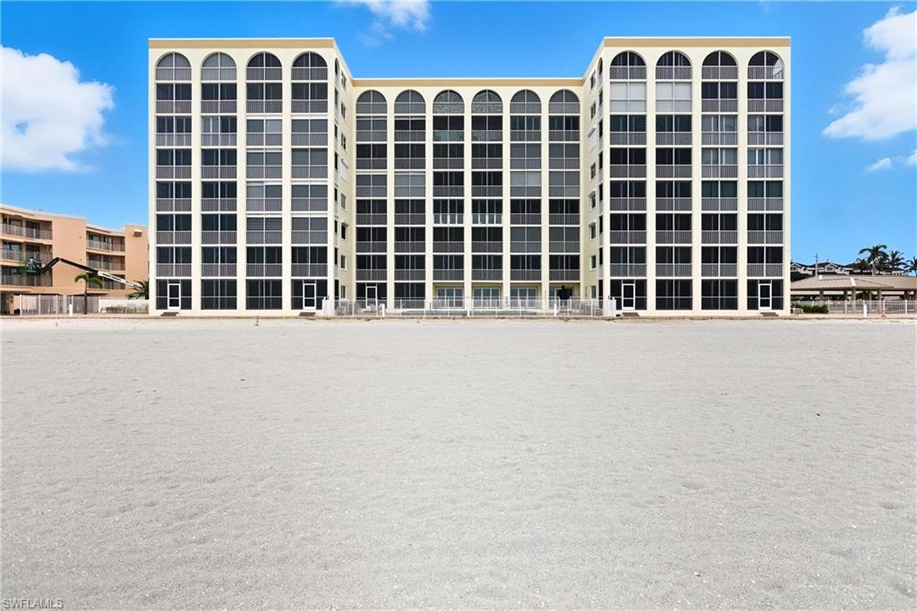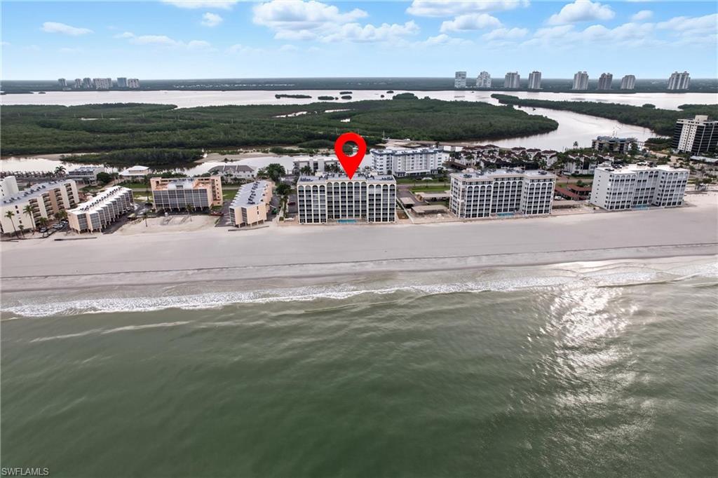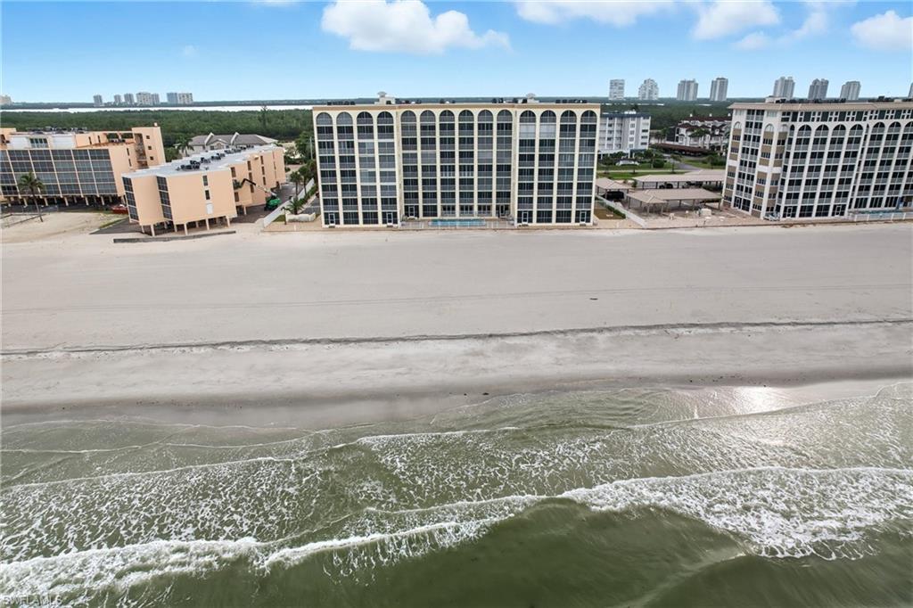 Looking for a Gulf front upper floor end unit on Bonita Beach with unobstructed views from Naples to Sanibel and beyond? Then, look no more! This beauty is tucked away on a quiet cul-de-sac for peaceful enjoyment without traffic and allows beach strolls all the way from Wiggins pass on the S to the end of Hickory Island on the N. Just how far is that? MILES! This 7th floor home away from home has glass on 3 sides, boasts intercoastal vistas of the back bay, and will reward the new owner breathtaking sunsets 365 days a year- There are two (2) full bedrooms, two (2) baths, and a glassed in lanai that provides added living space and year-round enjoyment. The building has been entirely renovated after Ian in '22 with pool rebuild, extensive mechanical upgrades (electric service/plumbing/etc.), new community room, new exterior paint, and new roof. Be sure to check out the exclusive extra storage on the unit floor that is unique to these end units. It has been structurally inspected to meet new FL guidelines for safety. It will provide years of enjoyment for you and your family/friends or rented out monthly. Income potential will surprise you as overall demand increases from more and more owners using these properties solely for themselves. It is being offered turnkey furnished for the buyer who wants to move right in and enjoy it in the coming season when windblown snow drifts close the roads up N. This is the only end unit of it's kind on the market at this time. Someone once said everyone should live on the beach at least once in their life. They were so right- Make this your time to do just that!