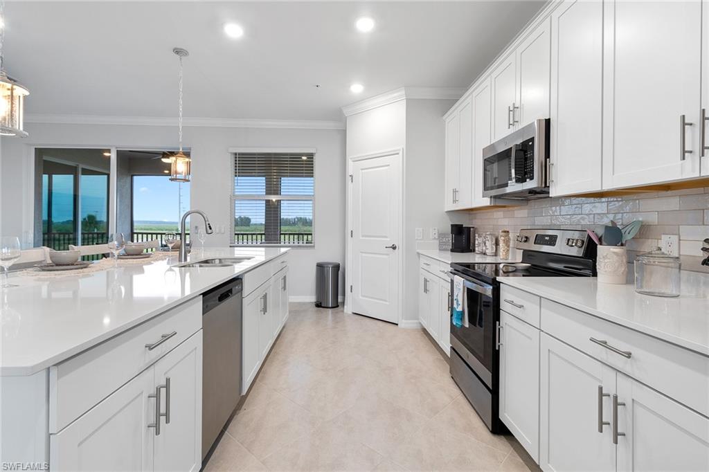 Welcome to the ultimate investor’s dream in The National Golf & Country Club at Ave Maria! This rarely available BayCreek model coach home is fully turnkey, income-producing, and already leased through January 31, 2026—delivering instant cash flow from day one. Opportunities like this simply don’t come around often. Perfectly positioned at the end of a quiet cul-de-sac, this 3-bedroom, 2-bathroom residence offers unmatched privacy with serene lake and sweeping golf course views. Spanning 2,110 sq. ft., the split-bedroom floor plan lives large with an open kitchen featuring a center island, pantry, walk-in storage, and custom tile backsplash. The home has been thoughtfully upgraded with crown molding throughout, tasteful accent walls, and fresh designer paint. The bright living and dining areas flow seamlessly to the oversized screened lanai—recently re-screened with tight “no see-um” mesh for ultimate comfort while you take in tranquil sunsets over the fairways. The owner’s suite showcases dual sinks, a walk-in closet, and a sleek glass-enclosed shower. Additional features include impact-resistant windows and doors, tray ceilings, built-in cabinets, and a full laundry room. The oversized 2.5-car tandem garage easily accommodates two full-size vehicles plus your golf cart. Ownership is bundled with a private golf membership, giving you and your tenants unlimited access to the championship 18-hole course and a suite of resort amenities: resort and lap pools, full-service spa, fitness center with classes, pickleball, tennis, bocce, dining, bars, and more. HOA fees include cable, internet, water, irrigation, trash, exterior pest control, and 24-hour security for a worry-free lifestyle. And here’s the kicker: the seller is also offering two additional income-producing coach homes in The National. Buy one, buy two, or seize all three for the ultimate portfolio investment in one of Southwest Florida’s fastest-growing golf communities. Turnkey. Upgraded. Leased. Cash-flowing. Bundled with golf. This is the opportunity of a lifetime!