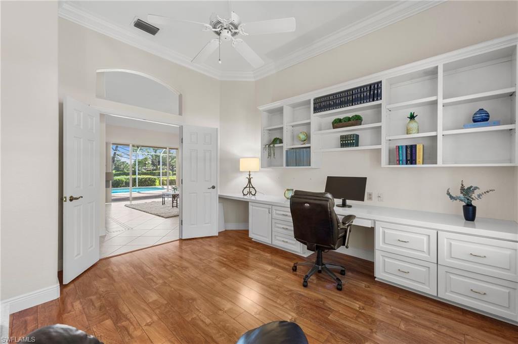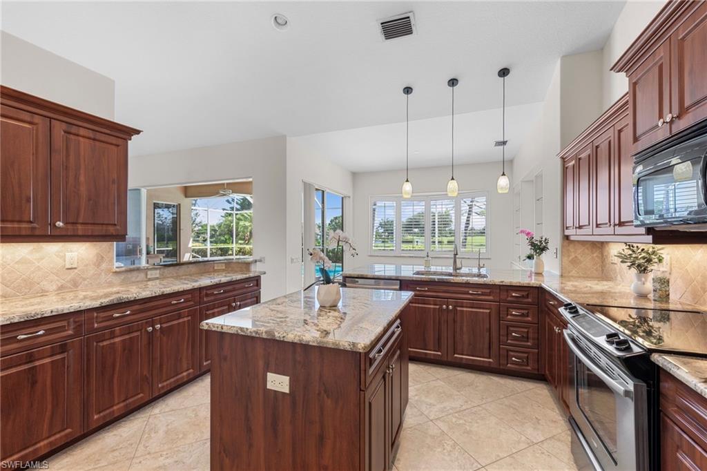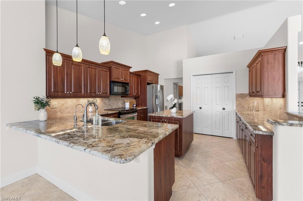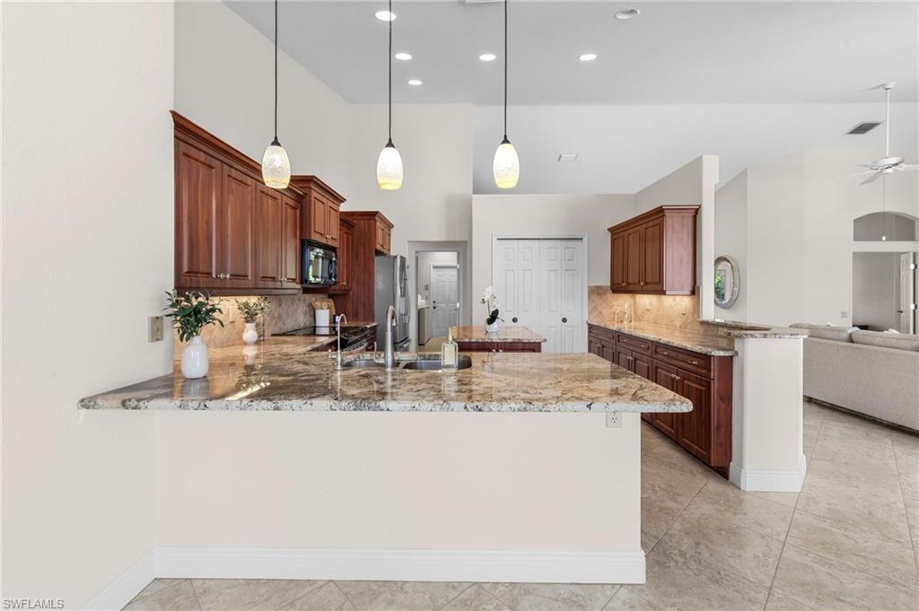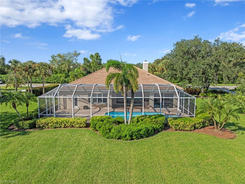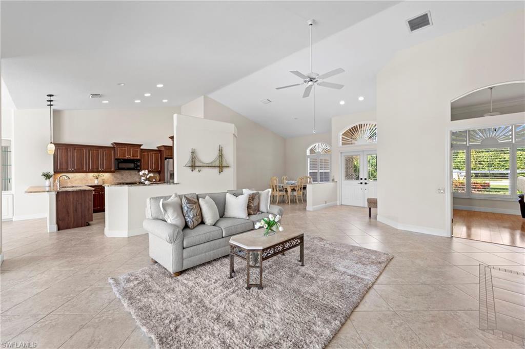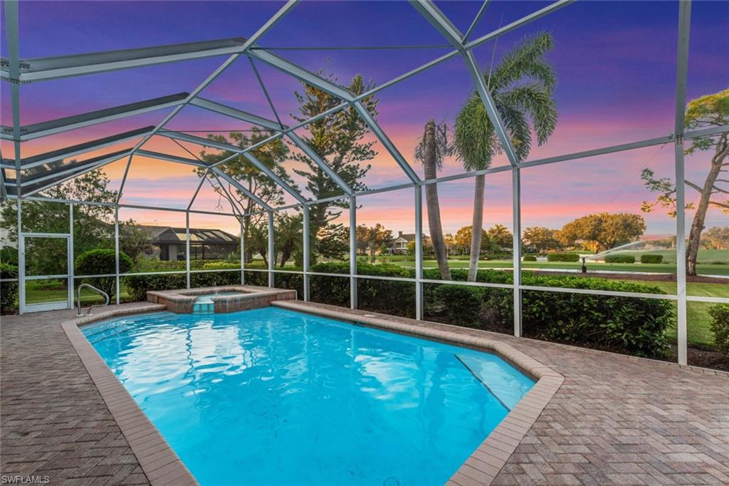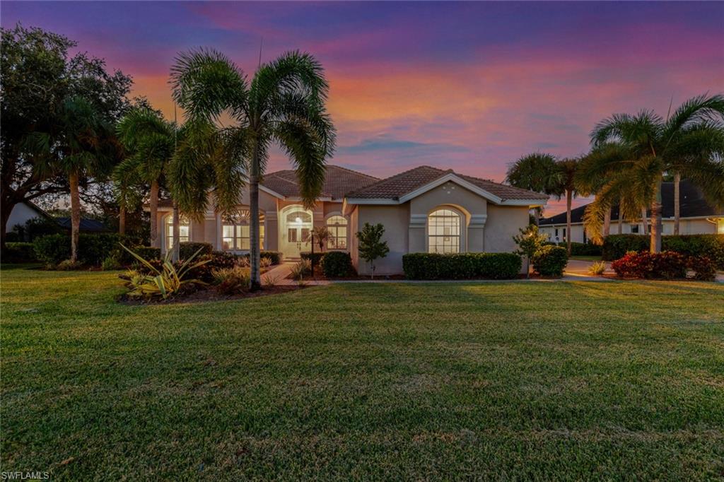 Nestled on OVER HALF AN ACRE in the heart of The Vines, this 3-bedroom plus den, 3-bath residence offers the perfect blend of comfort, privacy, and sweeping views. Overlooking both the pristine golf course and a sparkling lake, the home captures the essence of Southwest Florida living. Step inside to a light-filled interior where spacious gathering areas flow seamlessly for both relaxation and entertaining. The open kitchen and great room design invite family and friends to linger, while the versatile den provides the perfect space for a home office or media room. The private owner’s suite features serene views and a spa-like bath, creating a true retreat. Outdoors, enjoy the best of Florida living with a screened pool and spa surrounded by lush landscaping and endless skies—a setting made for sunsets and entertaining. Situated within a highly desirable community, this property delivers a lifestyle of leisure, with golf (NO WAITLIST!) tennis, and social memberships available at Estero Country Club. Just minutes from world-class shopping, dining, and Southwest Florida’s white-sand beaches, this home combines luxury, location, and lifestyle.