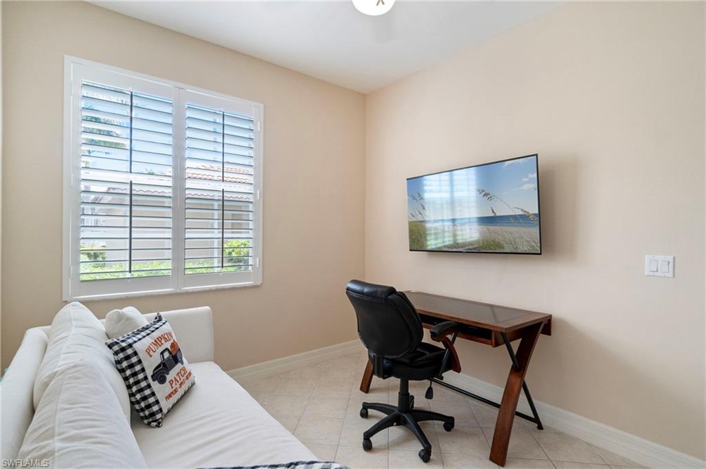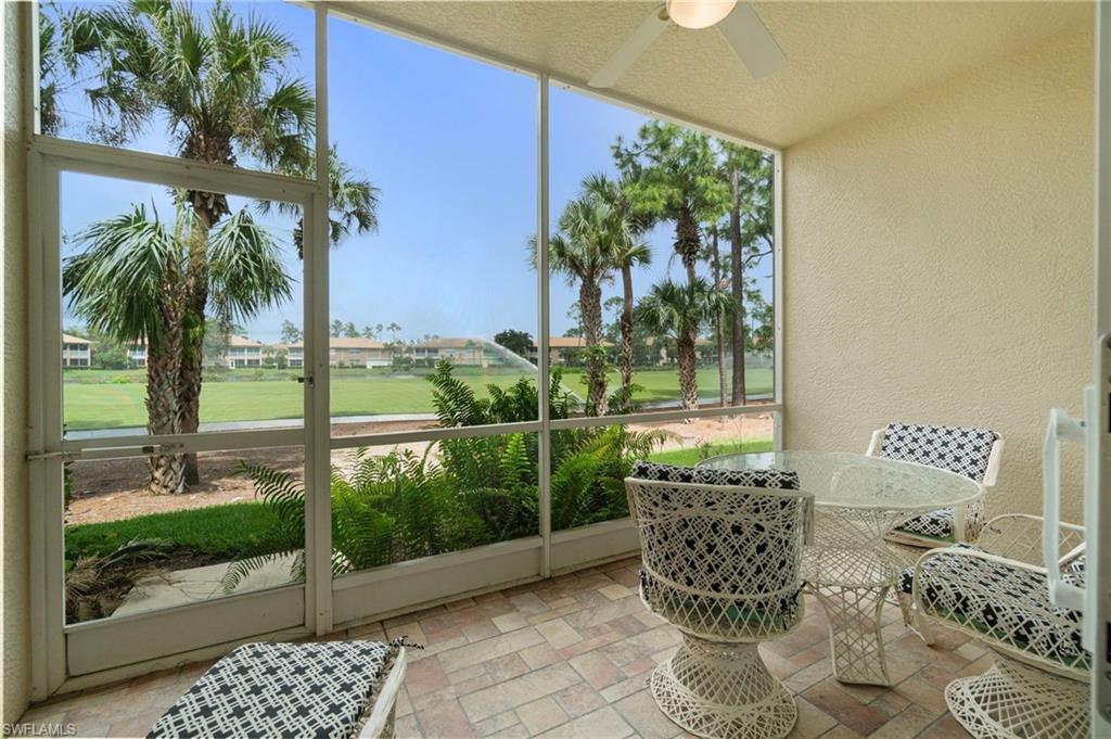 TURNKEY - UPDATED GARDEN HOME WITH GOLF & FOUNTAIN VIEWS! Experience relaxed living in this immaculate ground-floor 2BR+Den/2BA garden home located in the newly remodeled bundled golf community of Forest Glen Golf & Country Club. Enjoy wide golf course and fountain views from the screened lanai, complemented by fresh paint, stylish new furnishings, and a updated kitchen with new countertops and sink. The open layout features tile throughout, bamboo floors in the bedrooms, plantation shutters, impact windows and doors, plus an attached garage. The building roof was replaced in 2020, adding extra peace of mind. Forest Glen offers a vibrant lifestyle with bundled golf, pickleball, tennis, clubhouse dining, member pub, and a resort-style poolside bar and grill. Centrally located between Naples and Marco Island, this move-in ready home combines comfort, convenience, and community living at its best. THIS PROPERTY QUALIFIES FOR A 1% LENDER INCENTIVE IF USING PREFERRED LENDER, INQUIRE FOR MORE DETAILS**