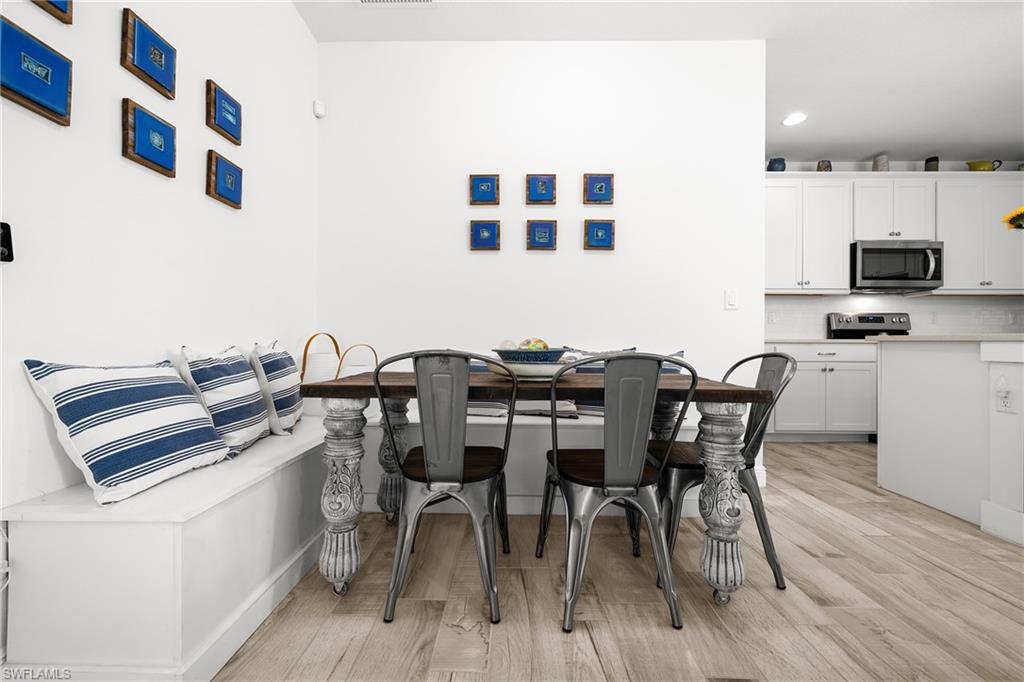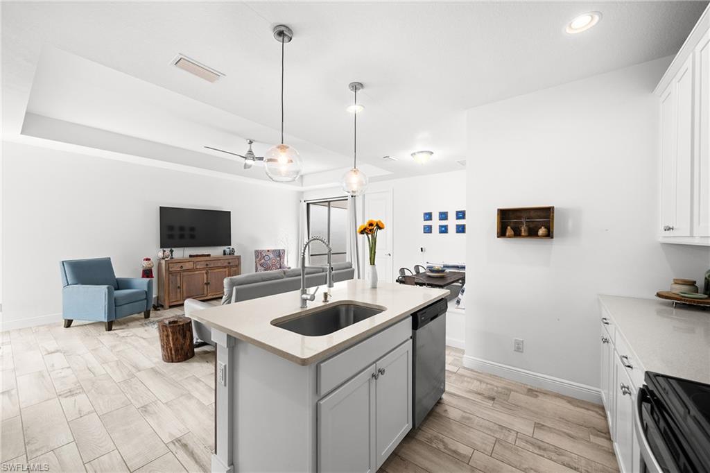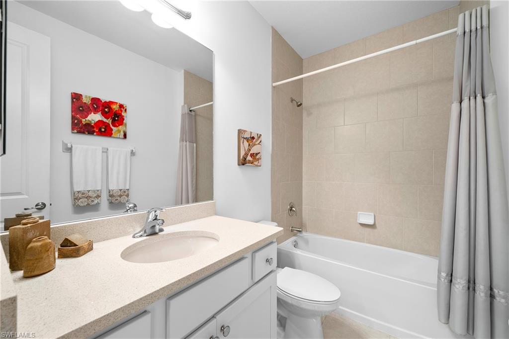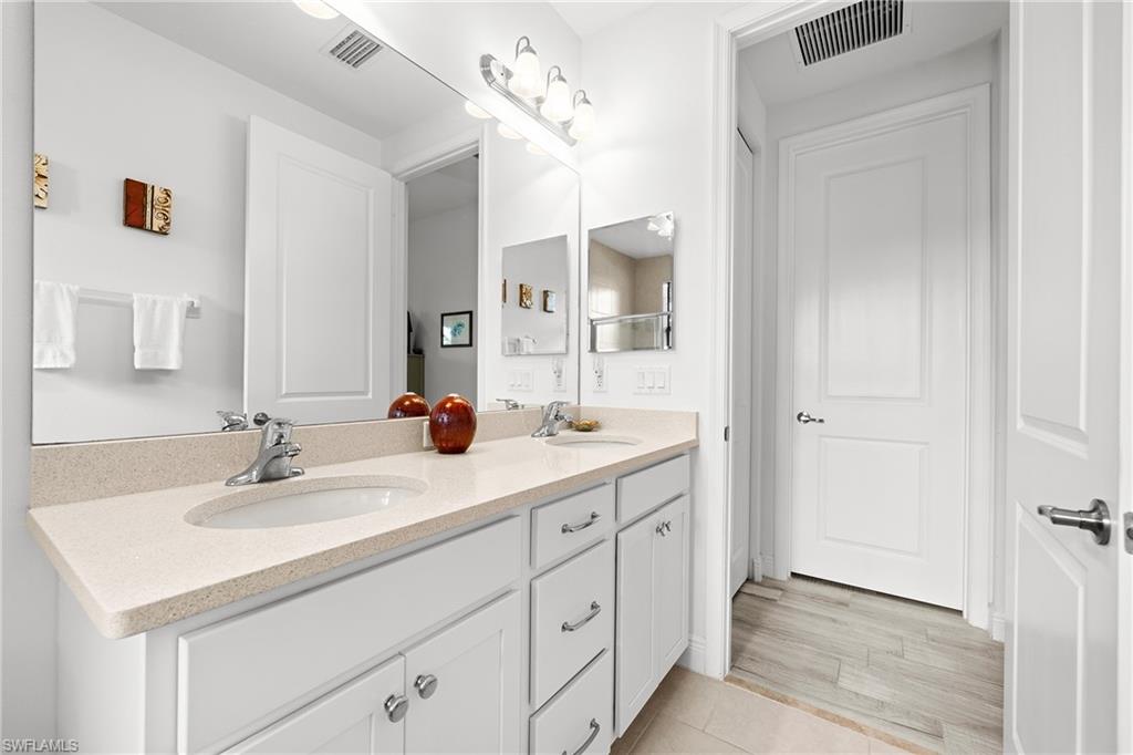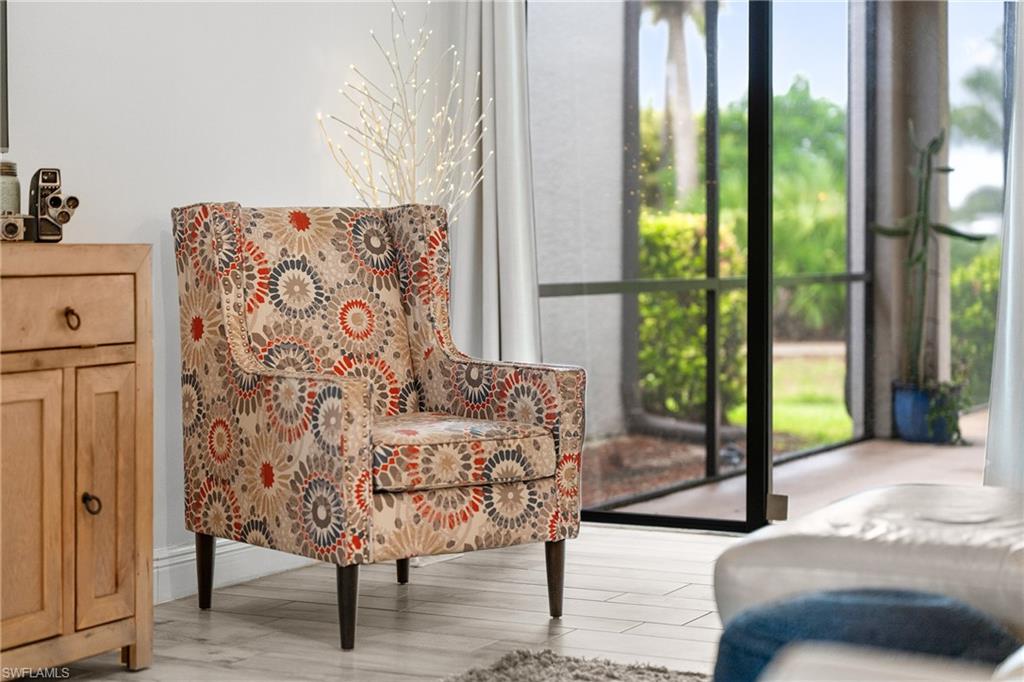 Prime Location meets functional living & Low HOA Fees at this extraordinary one level single family residence in Natura at Bonita Fairways! Meticulously kept home with an open floor plan, extended lanai with sweeping golf course views at a price that cannot be beat! The owners have invested in high-quality upgrades, such as exterior rain gutters, special Loxon waterproofing masonry exterior paint, a Ring camera, an alarm system, and 8' doors throughout. Custom window treatments and five specialty fans enhance the living space. The well-appointed kitchen features upgraded stainless steel appliances, quartz countertops, pendant lighting, a large farmer-style sink, and soft-close white shaker-style wood cabinetry. The entire home boasts light-colored porcelain plank-style flooring. The spacious owner’s suite offers a sliding glass door leading to the lanai, while the bathrooms are fitted with top-of-the-line cabinetry and quartz countertops.The screened-in lanai has been extended, offering an extra 8.5' x 16' of space, complete with "granite grip" flooring for durability and comfort. Located in the desirable Bonita Fairways community, this property provides access to an 18-hole Gordon Lewis designed golf course, clubhouse, pool / spa, restaurant, pickle ball courts & a fitness center. Five miles to the beach & surrounded by all the best shopping, dining & nightlife that bonita springs has to offer. Truly a must see to appreciate this wonderful opportunity to own a better than new home in the heart of Bonita Springs!