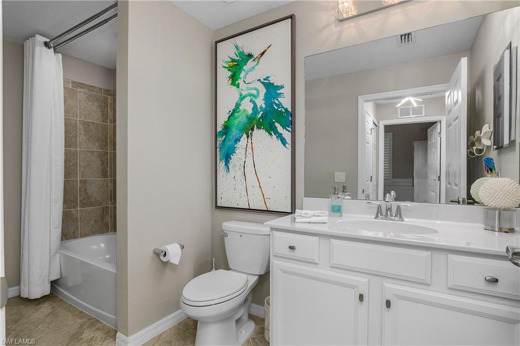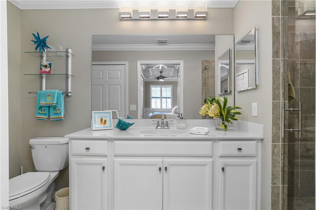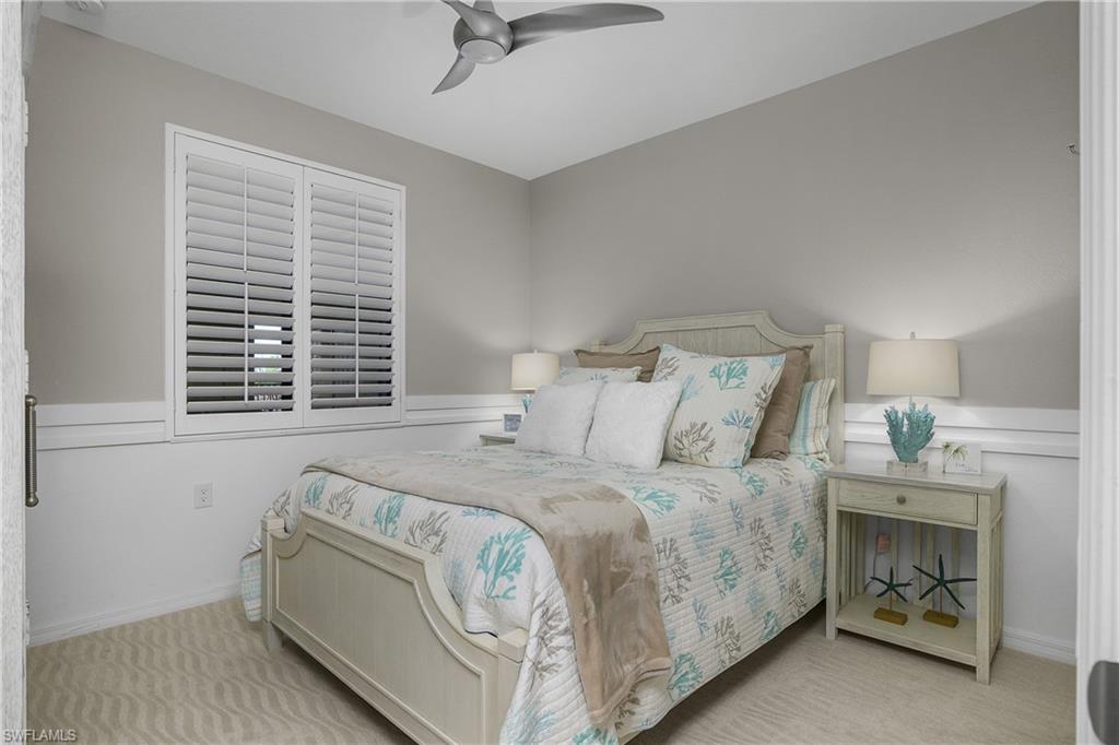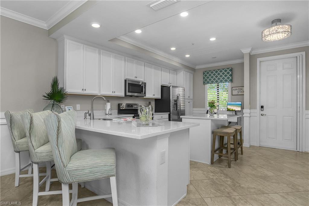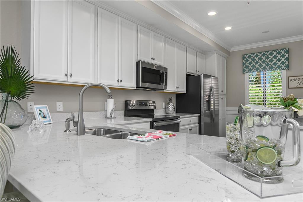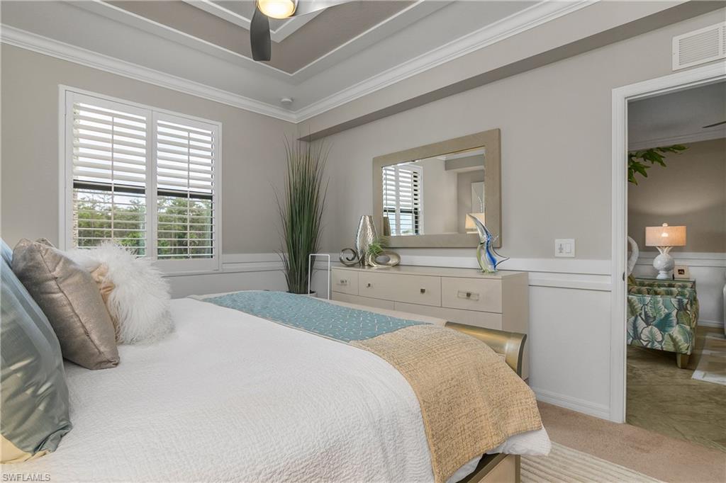 Experience resort-style living at its finest in this tastefully & functionally upgraded 2-bedroom, 2-bath second-floor condo in Treviso Bay, offering peaceful and private lake and preserve views along with a coveted social membership. Inside you'll find newer interior paint, custom trim, designer lights and fans, and new carpet in the spare bedroom. The primary suite is a true retreat with two custom California closets and a seamless glass shower door. The washer and dryer are thoughtfully placed in the second bath, keeping them out of sight yet easily accessible. Additional thoughtful upgrades include plantation shutters on all windows, custom window treatments in the main living space, shelving in the storage room, no-see-um screens and a sun shade on the lanai, plus an invisible screen at the front door for breezy cross-ventilation. Treviso Bay is one of Naples’ most sought-after resort-style communities, offering a stunning clubhouse, resort-style pool with poolside restaurant and bar, state-of-the-art fitness center, tennis, pickleball, bocce, full-service spa, social events, and miles of walking and biking trails — all just minutes from downtown Naples and the Gulf beaches. The main clubhouse over looks the private TPC golf course (golf available to social members May-October) and offers an indoor/outdoor restaurant and bar, event room, activities room, library, business center, and Arthurs snack shop. This home combines comfort, privacy, and a true Florida lifestyle in one perfect package.