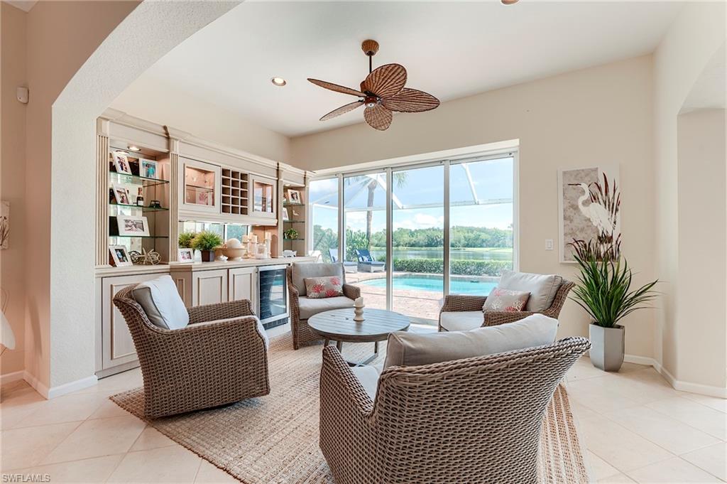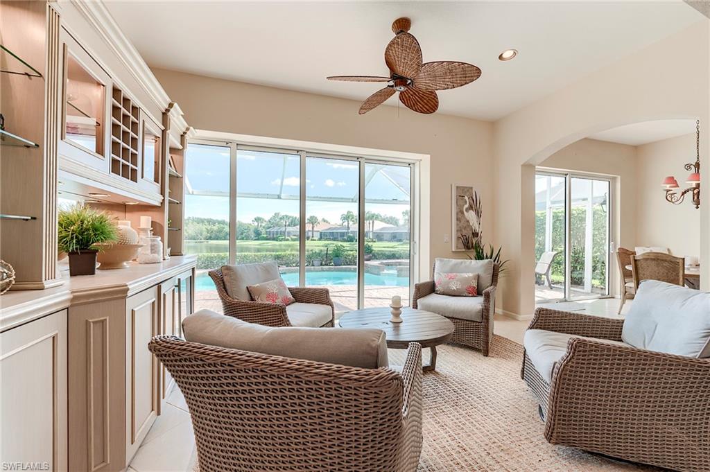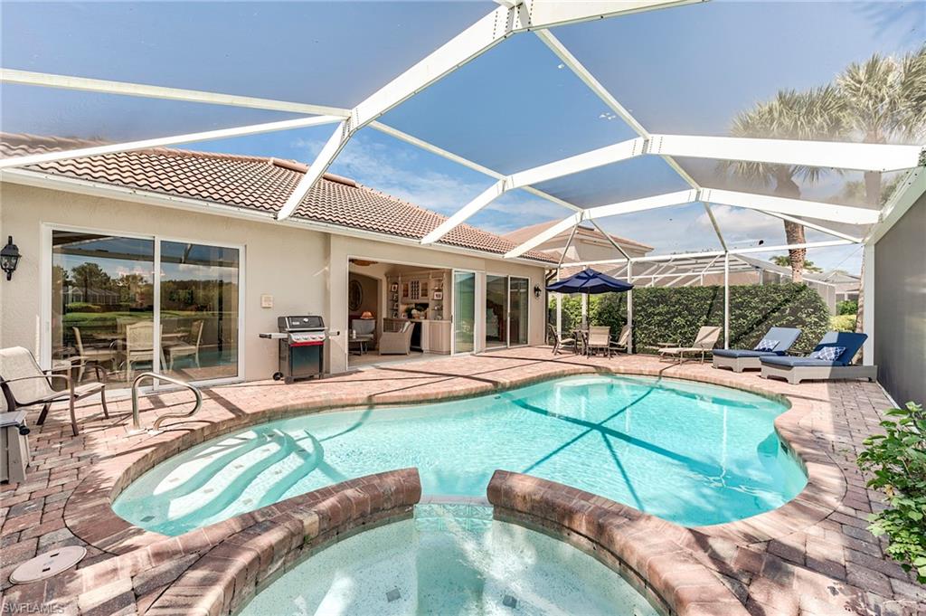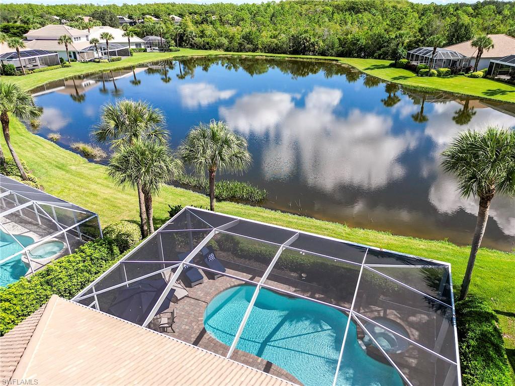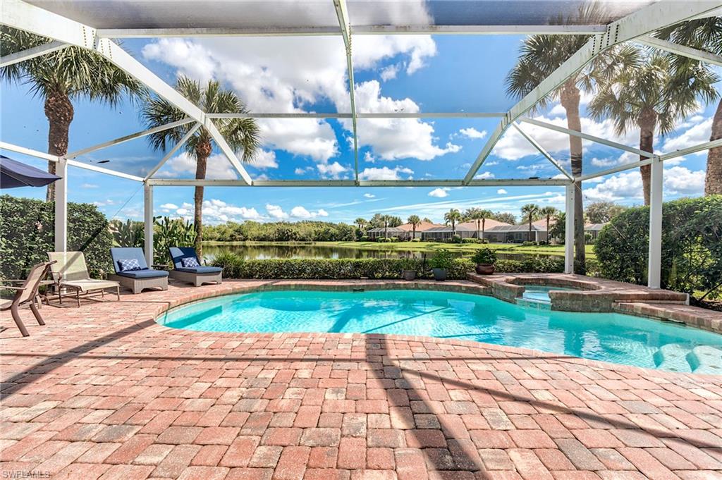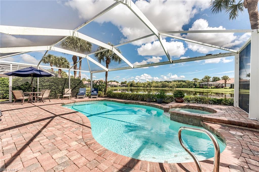 Updated Heron with 3 Bedrooms and Den/Office- living all on one level. Custom Cabinetry and Granite countertops in the kitchen, Kenmore Elite Stainless Steel Appliances. Complete with crown molding and plantation shutters, tile floors in the main living areas. Over 2000 additional living area due to glassed -in covered lanai that expands your entertaining area. Sparkling resurfaced Free-Formed pool and spa surrounded with brick pavers. Enjoy the quiet peaceful location, water birds and morning sunrise. New Roof 2023. FULL GOLF MEMBERSHIP with NO WAIT LIST for the golf enthusiast, this begins the day you close on the property. Currently the Country Club is constructing the LIFESTYLE CENTER which should be completed in last 2026. The world class facilities include Resort style pools with zero depth entry, a dedicated children's pool, lap lanes, 6 Indoor Pickleball courts, New Racquets Pro Shop, Grab and Go Cafe, Poolside Restaurant and Bar.