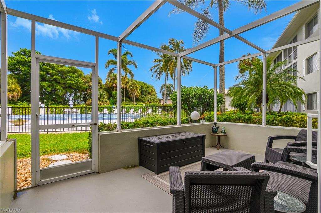 Move in ready and start enjoying the Naples Florida lifestyle you have dreamed of having. 2 bedrooms and 2 full baths, with great room living that merges with a screened lanai, along with an open air patio with views of the pool. Superior north Naples location that is close to shops, restaurants and beaches. Covered parking, storage. Some additional data and information: Central air replaced 2018, Windows and sliding door replaced 2019, Washer/Dryer replaced 2022, Refrigerator, range, dishwasher and microwave replaced 2025, Water heater replaced 2025, Power window shades installed 2025.