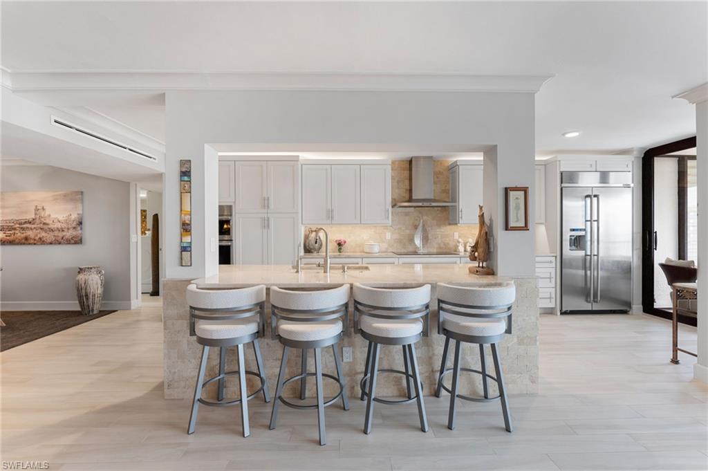 Experience the ultimate beachfront lifestyle at the gorgeous Monaco Beach Club! Inquire about our evening tours to enjoy a glass of wine on the lanai and fall in love with the gorgeous illuminated bay front views! This beautifully renovated residence features a bright, modern floor plan with an open concept and a spacious master suite. Spanning nearly 2,000 square feet, this condo is elegantly designed with high-end appliances, fixtures, and finishes. Step out onto the expansive 20-foot lanai to soak in the incredible views of Venetian Bay, day or night. Rest easy knowing this property is accompanied by an 8.6-foot elevation certificate for the lobby, clean tropical storm disclosures for both the condo and lobby, and no open or pending special assessments! A third bedroom addition is possible with this floor plan! Experience the luxury of modern coastal living on 6 acres of first-class beachfront property with resort-style amenities such as the private Park Shore Promenade Beach Walking Path, heated pool and spa, a relaxing lounge area, an updated fitness center, tennis courts, a private parking garage, bike storage, concierge service, and 24-hour security with a manned and gated entrance. Indulge in the coastal lifestyle with confidence in one of Naples' most desirable locations and well-managed buildings!
