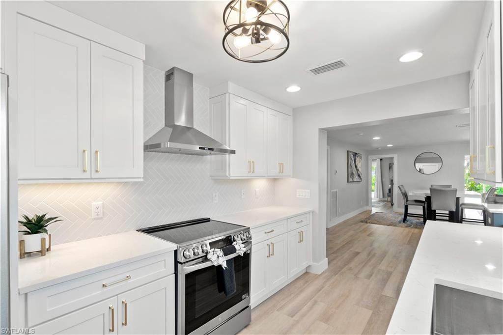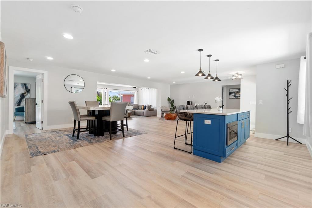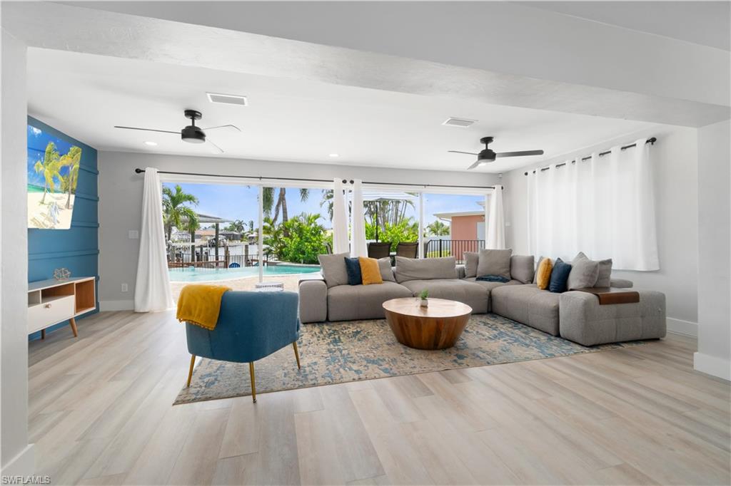 Beautifully renovated Gulf-access home situated on one of the largest canals in Estero Island! It is also one of the highest streets on the island at abut 10 feet above sea level. This coastal retreat is the ultimate beach and boaters’ delight with beach access only a short bike ride away & Gulf access from your boat dock/lift (20,000LB capacity). It could also be a prime rental investment opportunity if desired (7-day minimum rental zone)! This light, bright, and airy home boasts a fantastic open floor plan with 4 spacious bedrooms and 2 modern bathrooms. Step outside into your fenced-in backyard paradise featuring an infinity pool with a soothing water fountain, a tanning shelf, and ample space for lounging while taking in the breathtaking canal views. The tranquil boat dock area extends your outdoor enjoyment, with a large deck perfect for relaxing and watching dolphins and manatees glide by. The modernized chef’s kitchen features white quartz countertops, sleek white cabinetry, stainless steel appliances, and an expansive island with seating, perfect for entertaining. The spacious primary bedroom offers private access to the patio, walk-in closet, and a beautifully appointed bathroom with dual vanities and a frameless glass shower enclosure. This coastal retreat is perfectly located in the peaceful neighborhood of Glenview, close to many fantastic restaurants and easy access to Lovers Key/Bonita Beach.