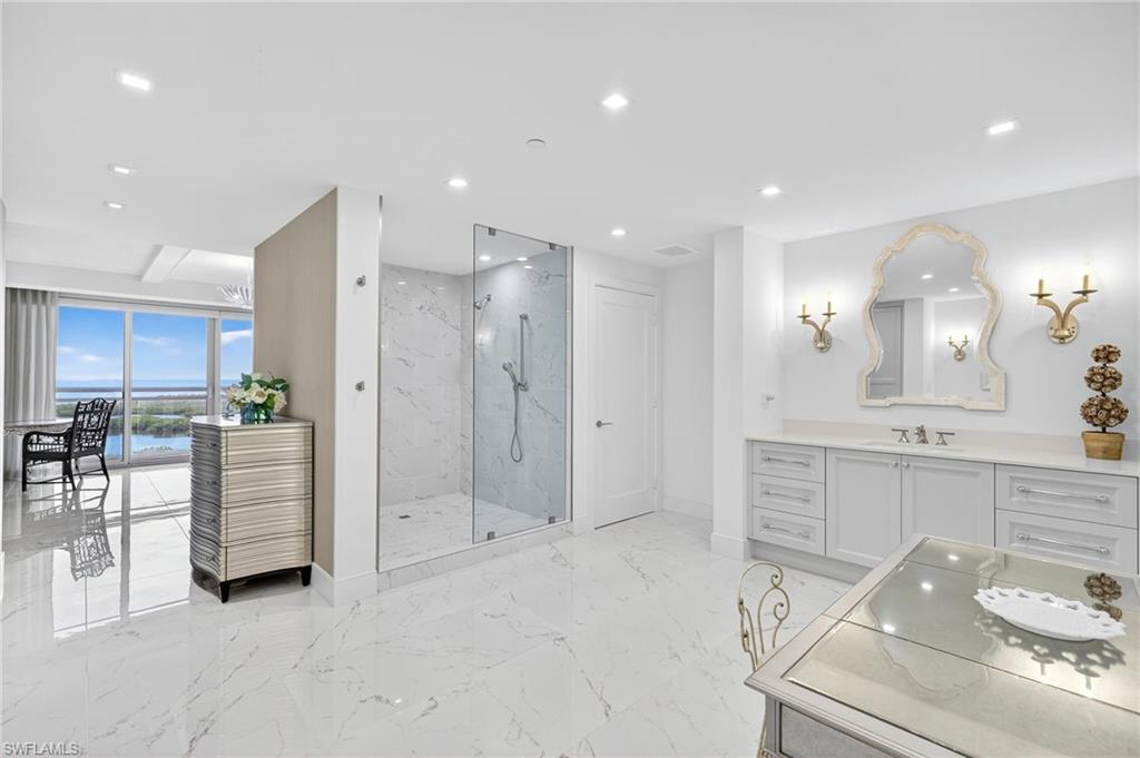 Welcome to Unit 1503 in Tower 100 in the award-winning and truly exceptional resort-style community of Kalea Bay. Ascend the elevator directly into your 15th floor sanctuary in almost 3300 square feet of casually elegant living space. This 4 Bedroom/4 Bathroom residence has been thoughtfully designed and furnished by premier local designer, Design West. Just bring your toothbrush, this unit comes Turnkey!! Open-concept living space features gorgeous wide-plank light oak flooring complemented by distressed wood coffered ceiling in the spacious living room with white brick decorative fireplace. Wall of glass opens out to a gorgeous outdoor terrace with panoramic views of Wiggins Pass and the Gulf. A true chef's eat-in kitchen replete with Sub-Zero/Wolf appliances, white shaker cabinetry, oversized quartz island flanked by waterfall edges and a convenient butler's pantry ideal foyer entertaining. Master Suite oasis with spacious bedroom with breathtaking western facing waterfront views, spa-like bathroom featuring oversized walk-in shower, separate vanities, separate water closet and enormous walk-in closet with custom built-ins. Split floor plan with 3 additional suites on the opposite end of the residence for utmost privacy. Kalea Bay is a 5-star, award winning community featuring 24 hour guard gated entry, a breathtaking 24th floor rooftop deck featuring gorgeous infinity pool, 4 built-in grills, open-air gym and club room with panoramic western views of the Gulf for the utmost in luxurious resort-style living. Kalea Bay Club is rich in amenities including multiple pools, wellness center, tennis and pickleball courts, 2 restaurants, 8 guest cottages and beach shuttle. Truly exceptional living at its finest.
