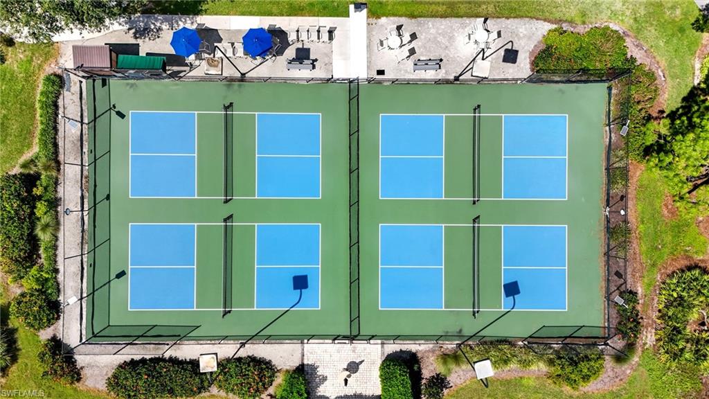 Nestled in the heart of beautiful Naples Heritage Golf and Country Club, this move-in ready retreat exudes charm and ambiance. With a prime view overlooking a lake and the 12th Hole, this adorable gem is a haven for those seeking the ultimate Florida lifestyle. Ownership here grants FULL GOLF PRIVILEGES in a community brimming with top-notch amenities. The 18 hole, par 72 golf course designed by Gordon Lewis, offers 10 different tees so as to accommodate all levels of golfers, complete with a driving range and putting green recently renovated in 2022. All amenities have undergone recent renovations as well, including the impressive Club House, state-of-the-art Fitness Center, and a stunning resort-style pool — enhanced by poolside dining at the club’s Palm Terrace. Engage in friendly matches on one of the 6 Har-Tru tennis courts, 2 bocce courts, or the newly resurfaced pickleball courts. The light and bright interior dazzles with quartz countertops in the kitchen and marble in the baths. In addition to the two generously-sized bedrooms, the den is well-equipped for either use as an office or additional guest quarters with a sofa-sleeper and pocketed privacy doors. The new HVAC system ensures year-round comfort, electric storm screens provide peace of mind, and the detached garage adds sought-after convenience. Enjoy the tranquility of having both front and back lanais, perfect for savoring morning coffee or evening sunsets. Offered turnkey, every detail has been meticulously maintained for you. Conveniently located minutes from Naples’ downtown 5th Avenue & 3rd Street shopping and dining districts as well as Marco Island, discover Naples Heritage, where lifestyle meets leisure.
