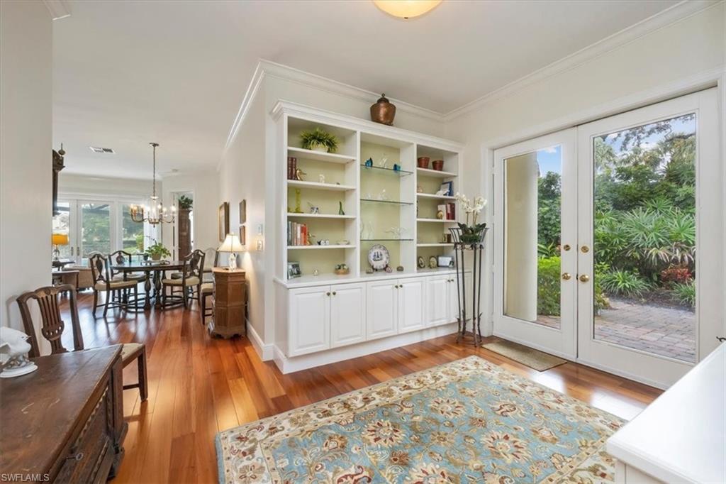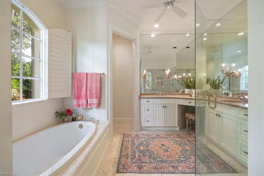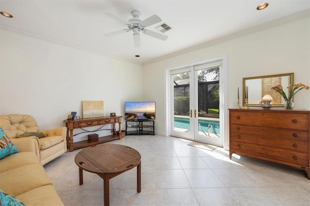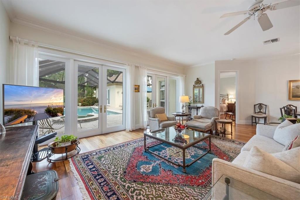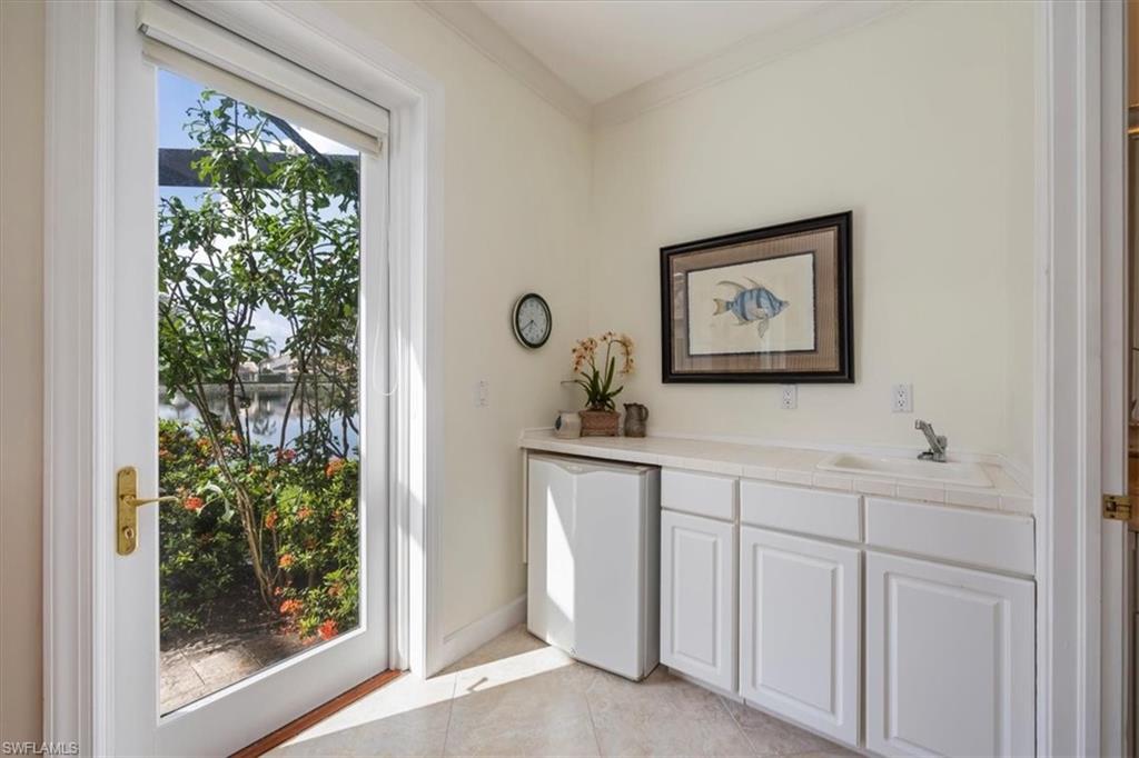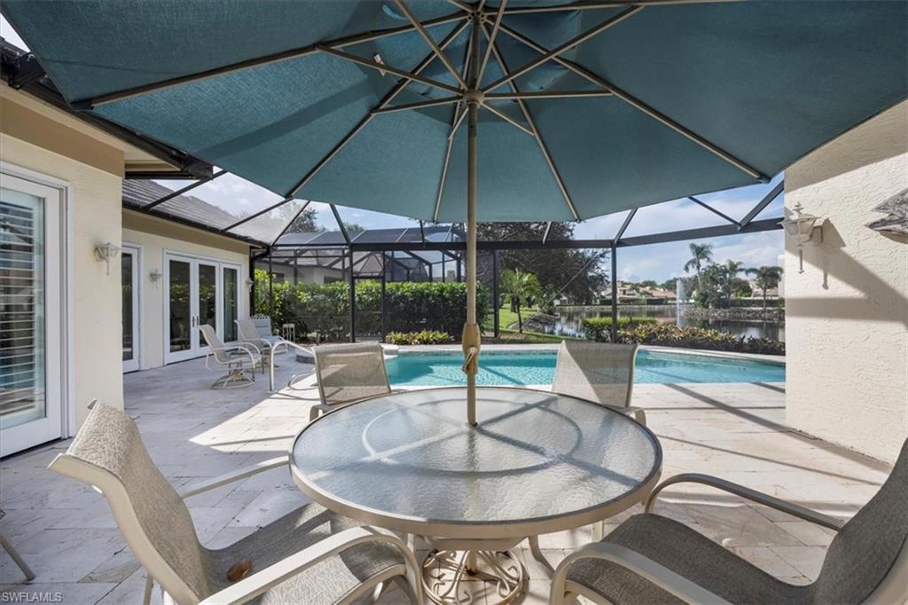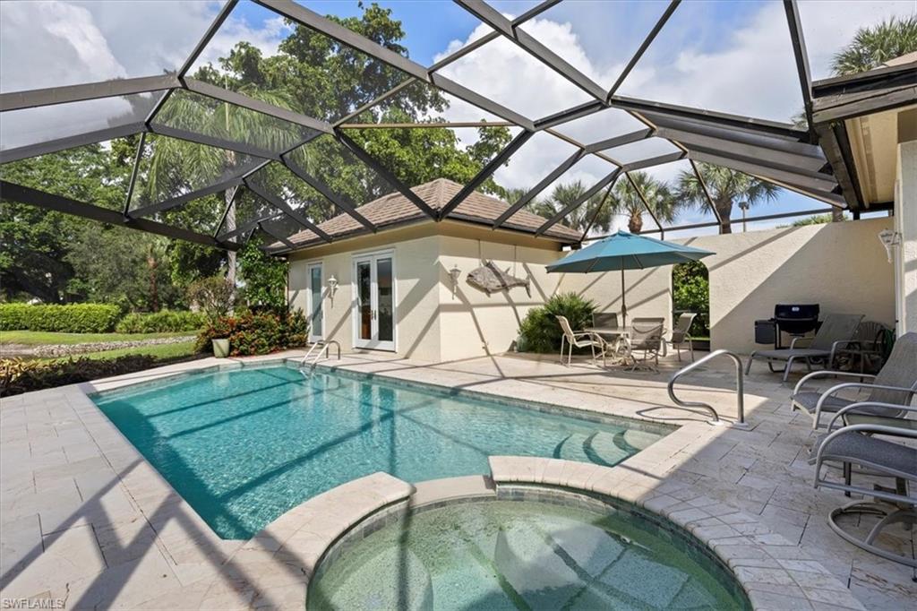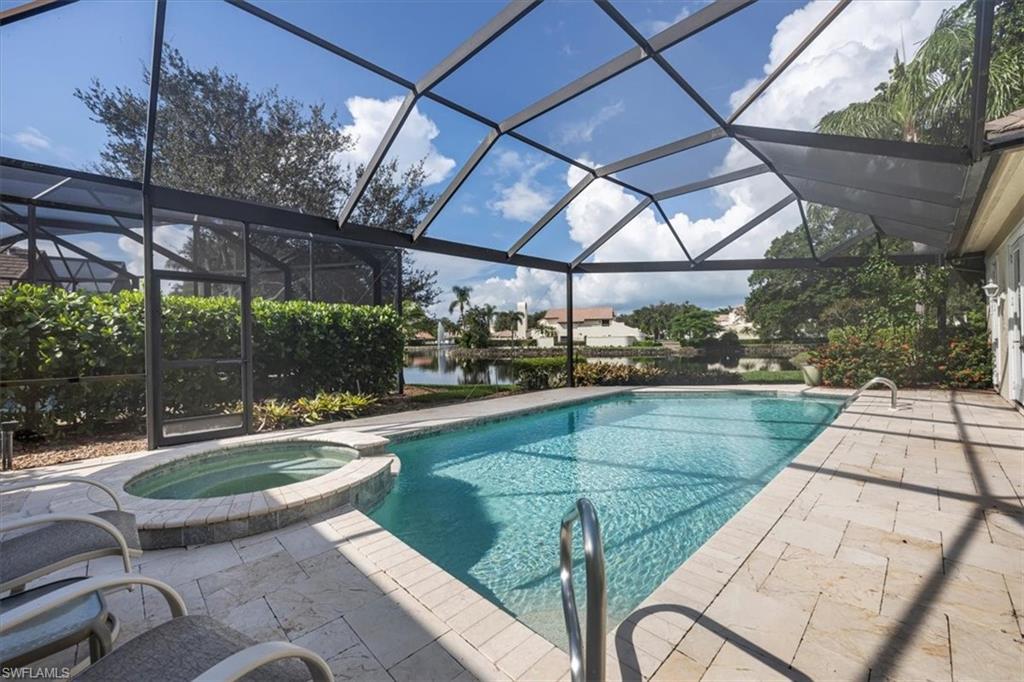 Experience over 2,400 square feet of refined living in this 3-bedroom, 3-bath residence with a 2-car garage, perfectly positioned to capture serene views of the lake and water feature. The main home showcases an open layout with a beautifully renovated kitchen flowing into the spacious living and dining areas. The primary suite provides a true retreat with walk-in closets, dual vanities, a soaking tub, and a walk-in shower, while a guest bedroom and full bath complete the main living space. A detached 1-bedroom, 1-bath cabana offers exceptional flexibility—ideal for guests, a home office, or a private studio. Outdoor living is equally impressive with a screened lanai featuring a pool and spa, multiple seating areas, and tranquil lake views. Upgrades include wood flooring, plantation shutters, impact windows and doors, and hurricane shutters for added peace of mind. Nestled within the highly sought-after Pelican Bay community, residents enjoy exclusive amenities such as two private beachfront pavilions, tennis and pickleball courts, a state-of-the-art fitness center, and a lively community center, all just moments from Naples’ premier dining, shopping, and cultural attractions.
