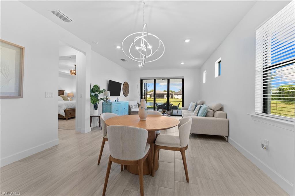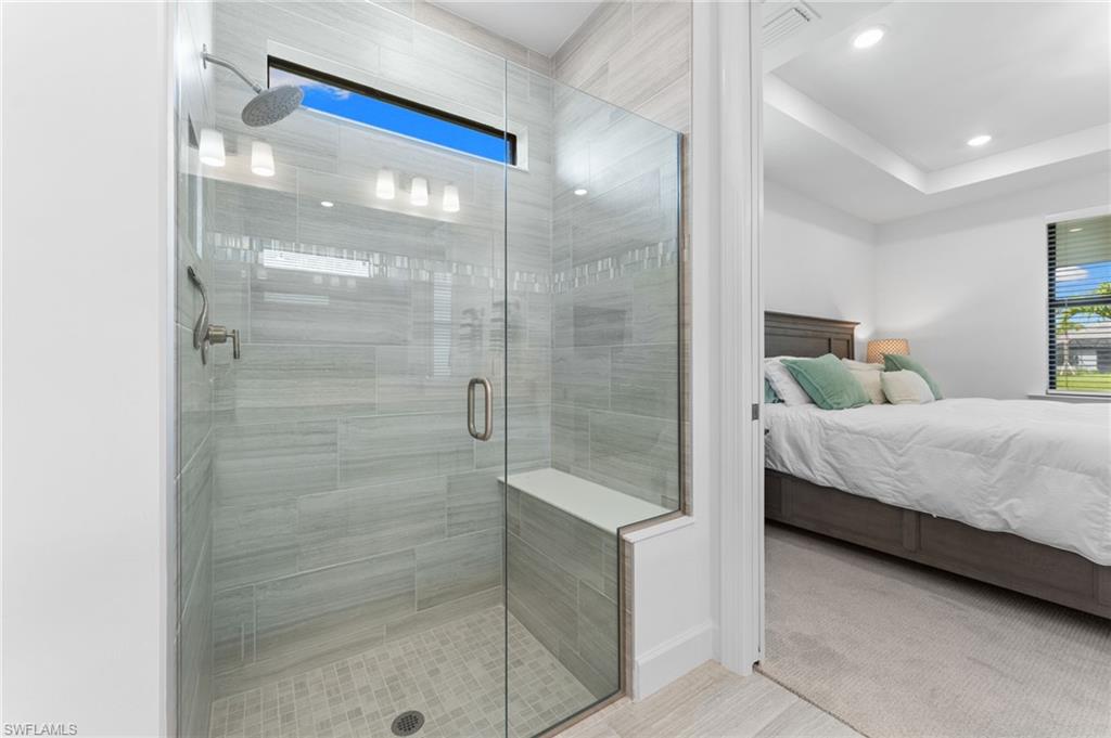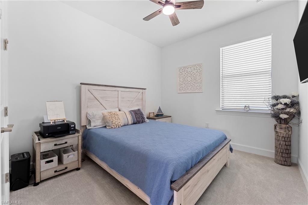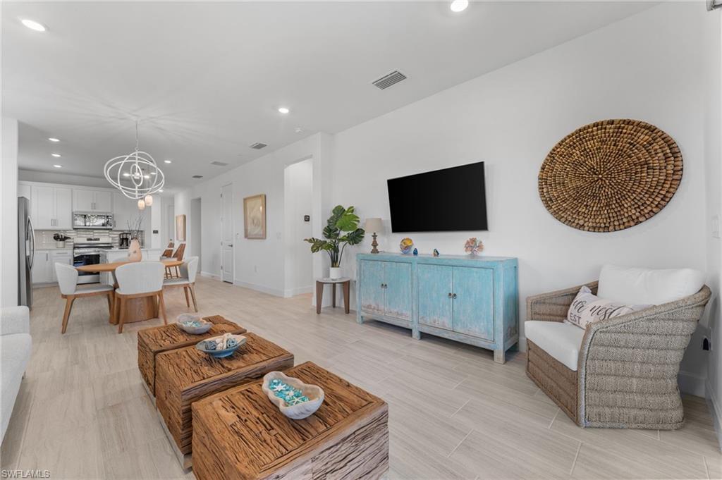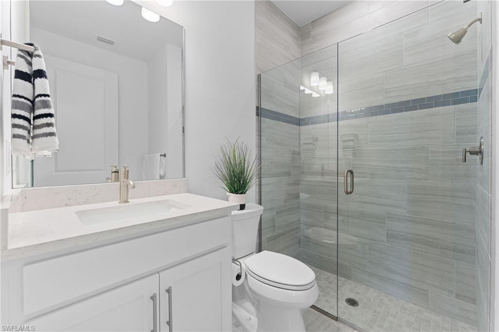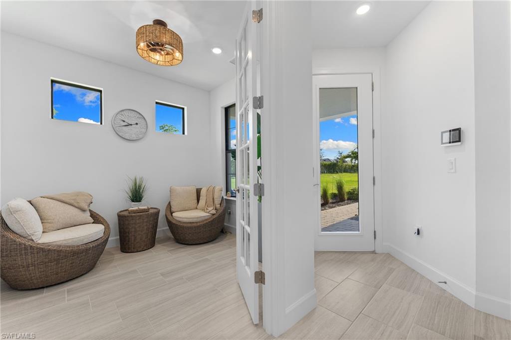 BETTER THAN NEW! Take advantage of new construction with immediate availability and thoughtful upgrades with this one-year-old Contour floorplan. Featuring extensive builder upgrades like impact windows and doors, glass front door, extended lanai, walk-in showers, tray ceiling, laundry storage, garage sink and an impressive lot at the end of the cul-de-sac with oversized side yard, plenty of privacy and a serene lake view. Ideally positioned with western exposure, owners will love the ample natural light, bright and open floorplan, and enjoy evening sunsets on the extended covered, screened lanai. Inside features tasteful finishes including wood look tile, white shaker cabinetry, tile backsplash, neutral quartz countertops and stainless steel appliances. Additional upgrades include high end lighting, epoxy garage floor, electric window shade, wood blinds and custom mirror tint. This property is made for hosting with the extended driveway for parking, generous island and inviting extended patio space. Terreno is an amenity rich NATURAL GAS neighborhood with stunning resort pool, pickleball, tennis, comprehensive fitness center, brand new restaurant, dog park, playground and rich social calendar. Optimum security and peace of mind for full time residents and snowbirds with a manned gated entrance. Golf available at Valencia Country Club, a new Publix and a quick drive to popular shops and restaurants for the best lifestyle Naples has to offer!
