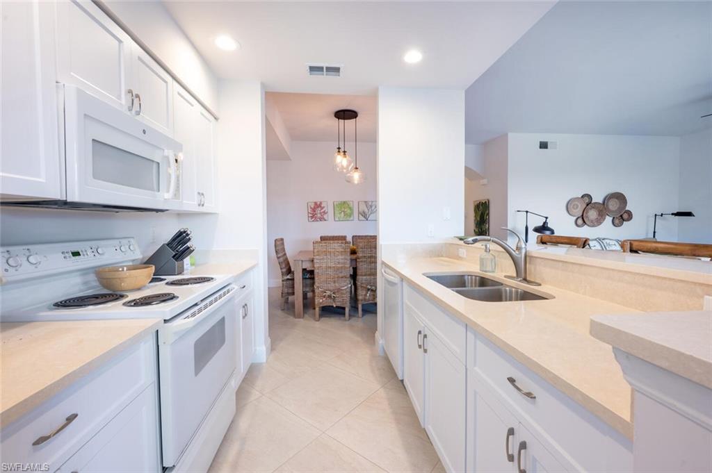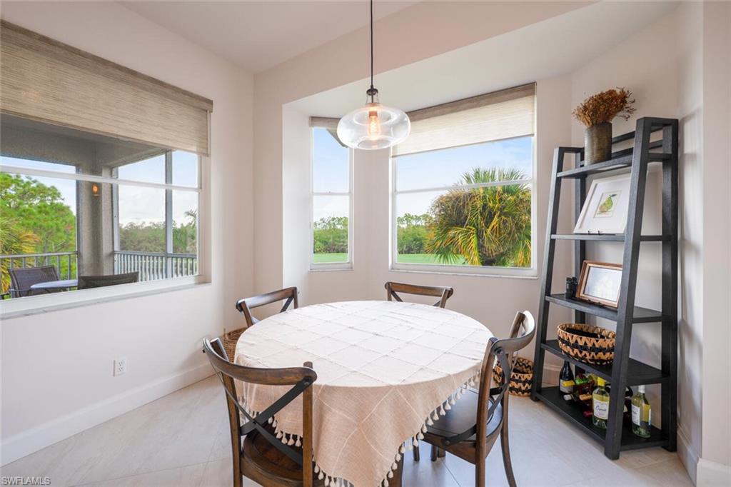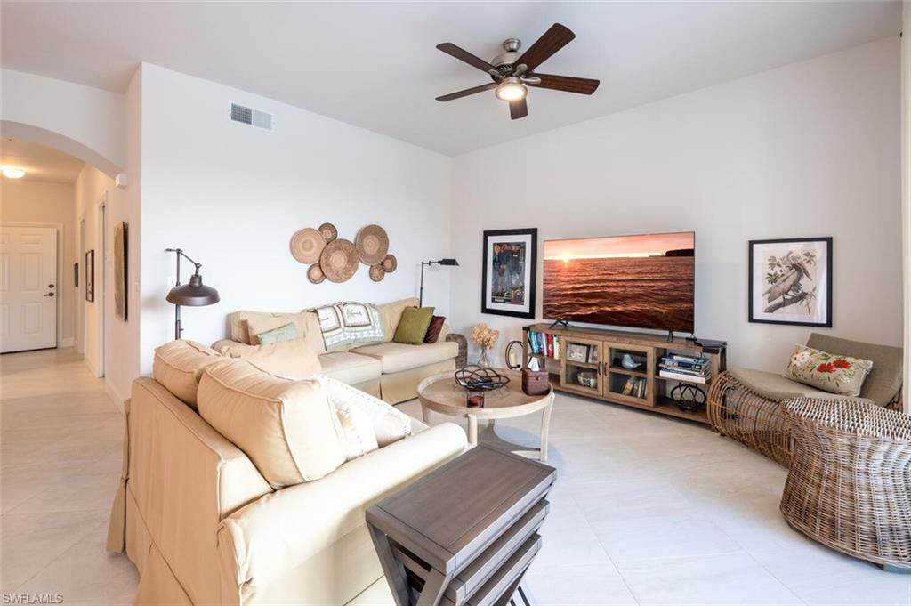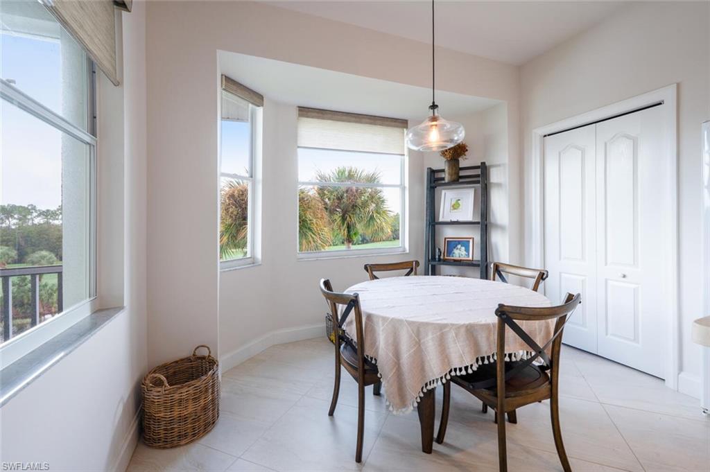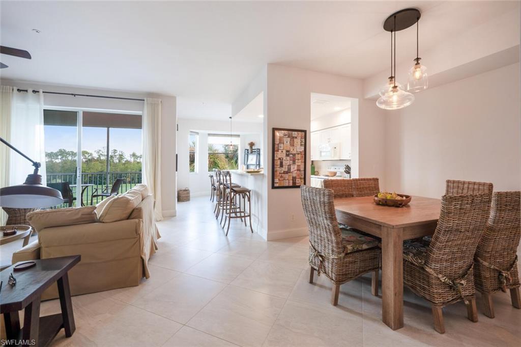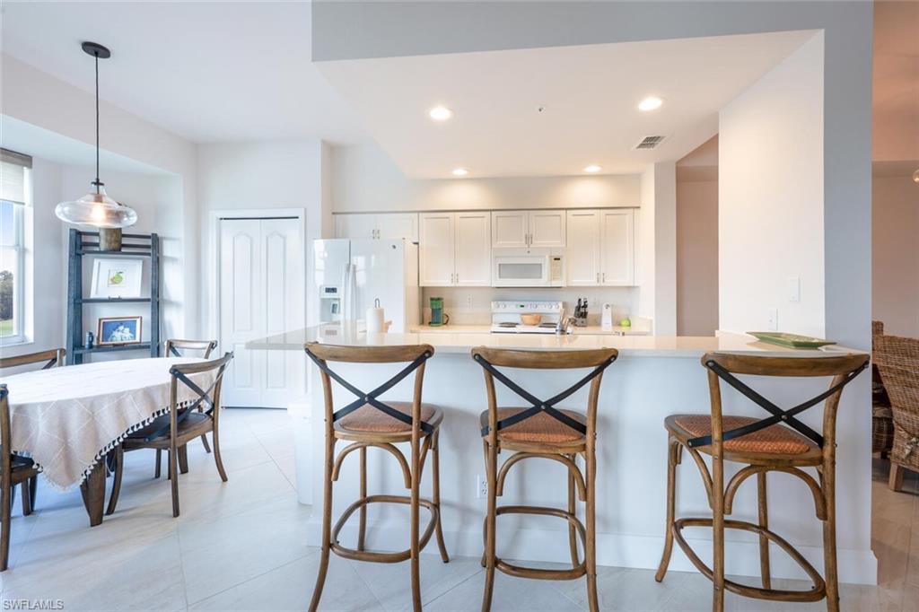 Fabulous top floor end condo, nobody above you and only one neighboring condo giving you a majestic and expansive view of the eleventh hole. Close to the club and amenities. This beautiful open concept Brookside model is completely furnished and ready to move into. Tile in living areas. Granite countertops and an upgraded kitchen. Just move in and enjoy all Naples Heritage has to offer including golf, clubhouse with dining, resort style pool with dining, fitness center with classes, tennis complex, pickleball complex...Naples Heritage has it all! All of this and so close to Fifth Avenue and the Naples beaches! You've earned that Naples lifestyle come and enjoy it it one of Naples premier bundled communities where neighbors become lifelong friends.