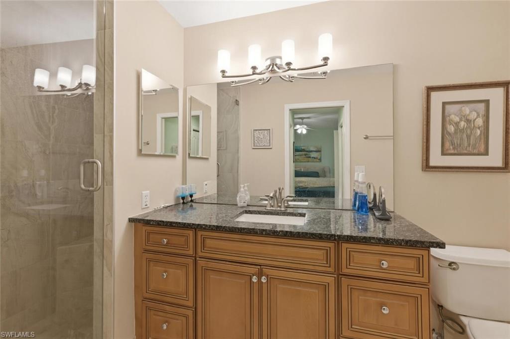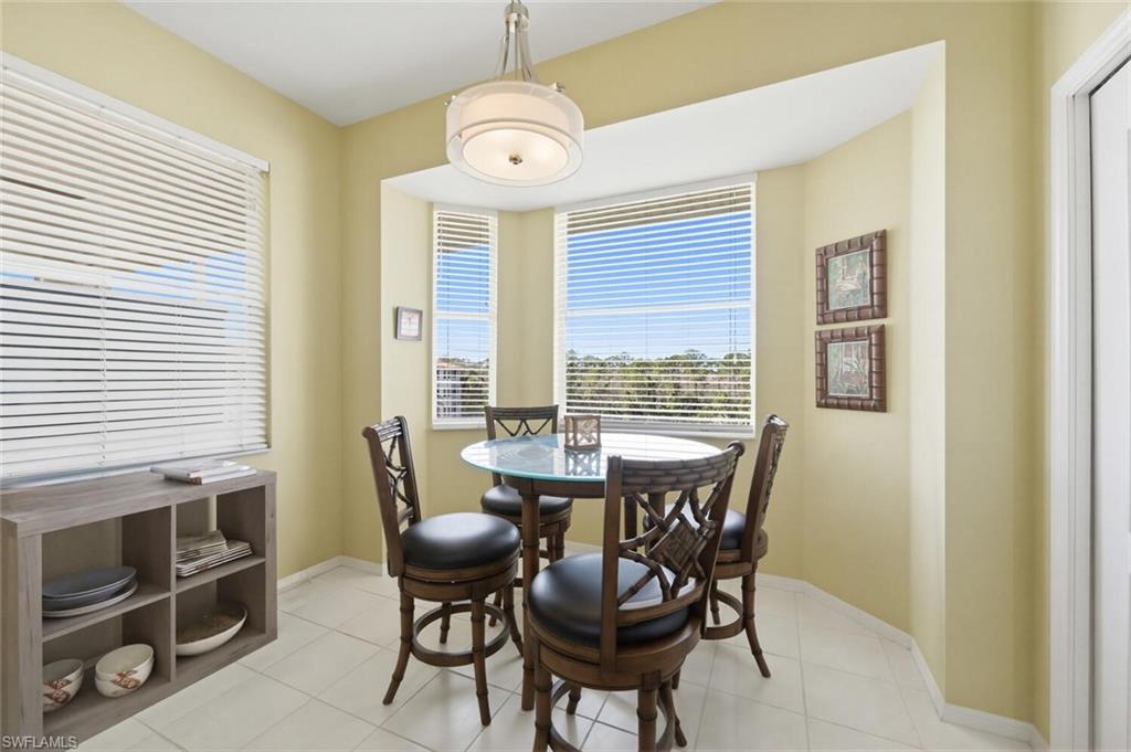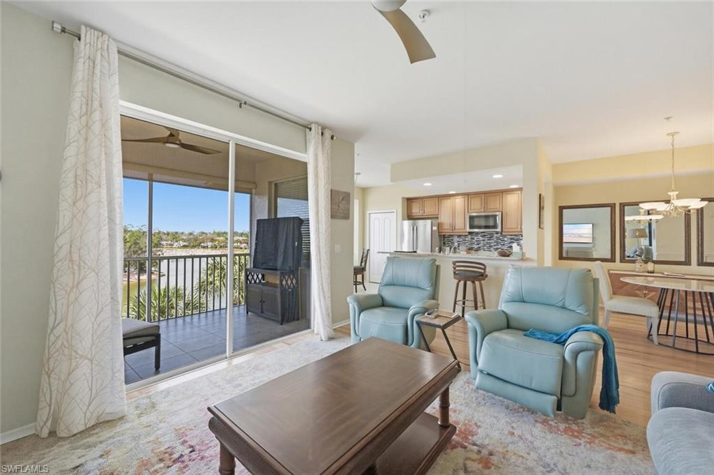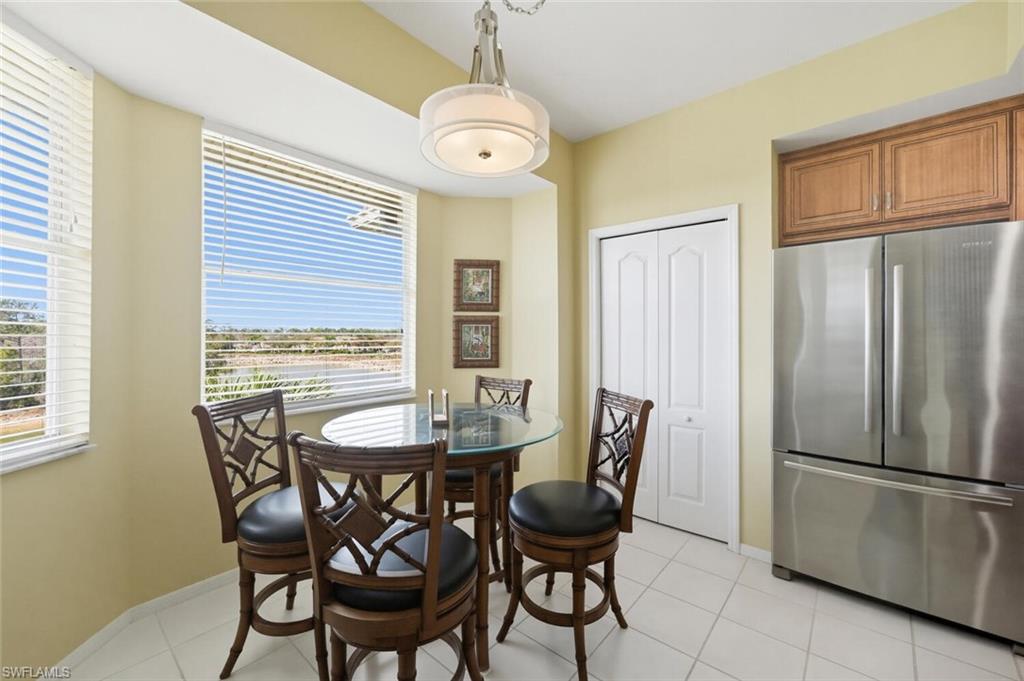 Fabulous top floor end unit popular open concept Brookside model completely furnished and ready to move into immediately at an incredible price. This condo has it all! From the moment you enter you will be impressed with the layout and views from the living areas. You will love the upgraded kitchen with granite counters and hardwood cabinetry with soft-close drawers along with Jenn-Aire stainless steel kitchen appliances. Upgraded primary and guest bathrooms with granite counters and hardwood cabinetry with soft-close drawers. New porcelain tile shower in primary bathroom. New ceiling fans in living room and lanai with remote controls. New light fixtures in main hallway, breakfast area and primary bathroom. Newer washer and dryer. Custom shade screens on lanai. The condo even comes with an extra large end unit storage room and includes full-size fridge/freezer and heavy-duty steel shelving. The view of the lake and preserve will win any discernible buyer over in a quiet serene location. The golden hour sunsets from the lanai are breathtaking. All this and so close to downtown Naples with its beautiful beaches, shopping and entertainment. Naples Heritage has it all championship golf, fitness center with classes, clubhouse with restaurant indoor outdoor dining, resort style pool with dining and bar area, tennis complex, pickleball complex, and even a bocce ball complex being completed in 2026. Come see what they’re all talking about in one of Naples premier bundled golf and resort style communities fabulous Naples Heritage. You’ve earned this lifestyle and it’s time to live it well in this fabulous condo.
