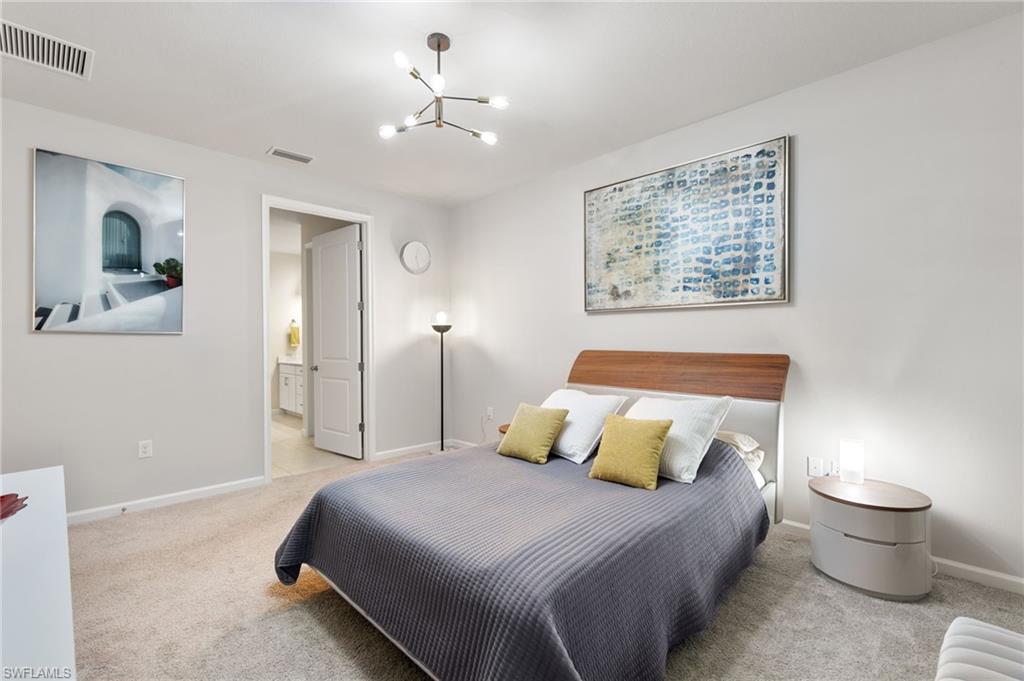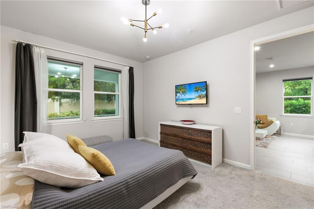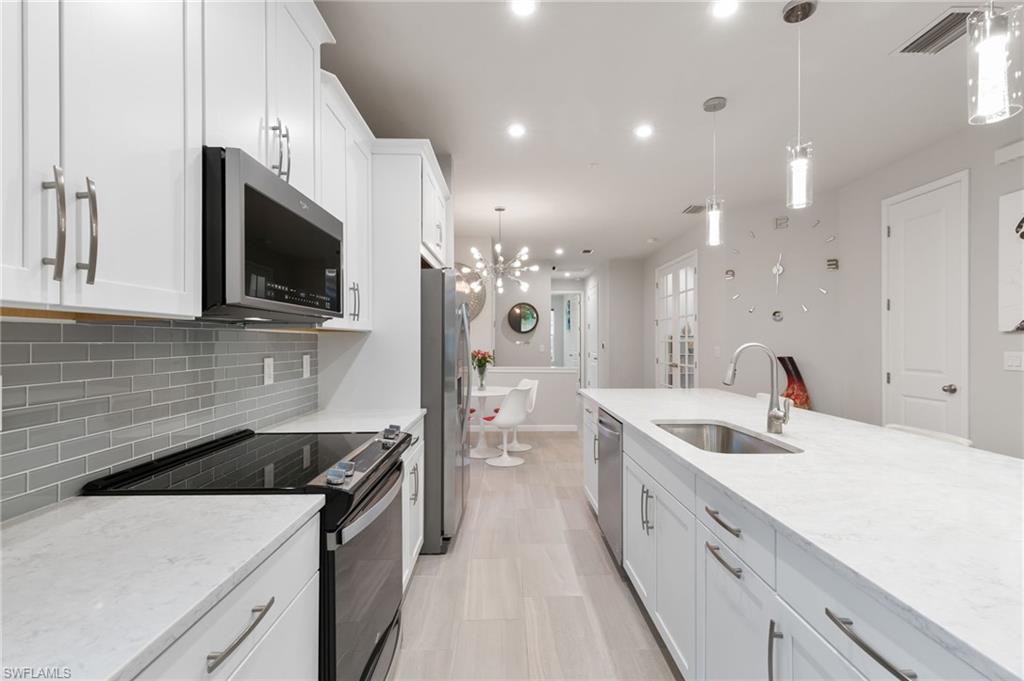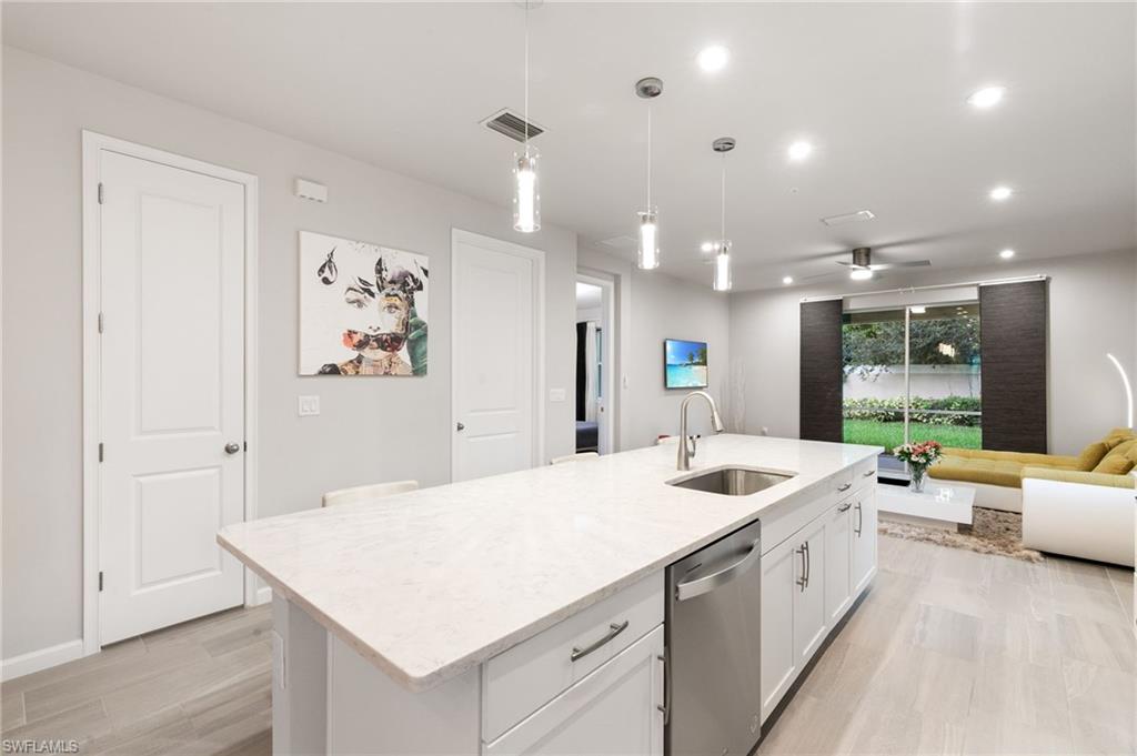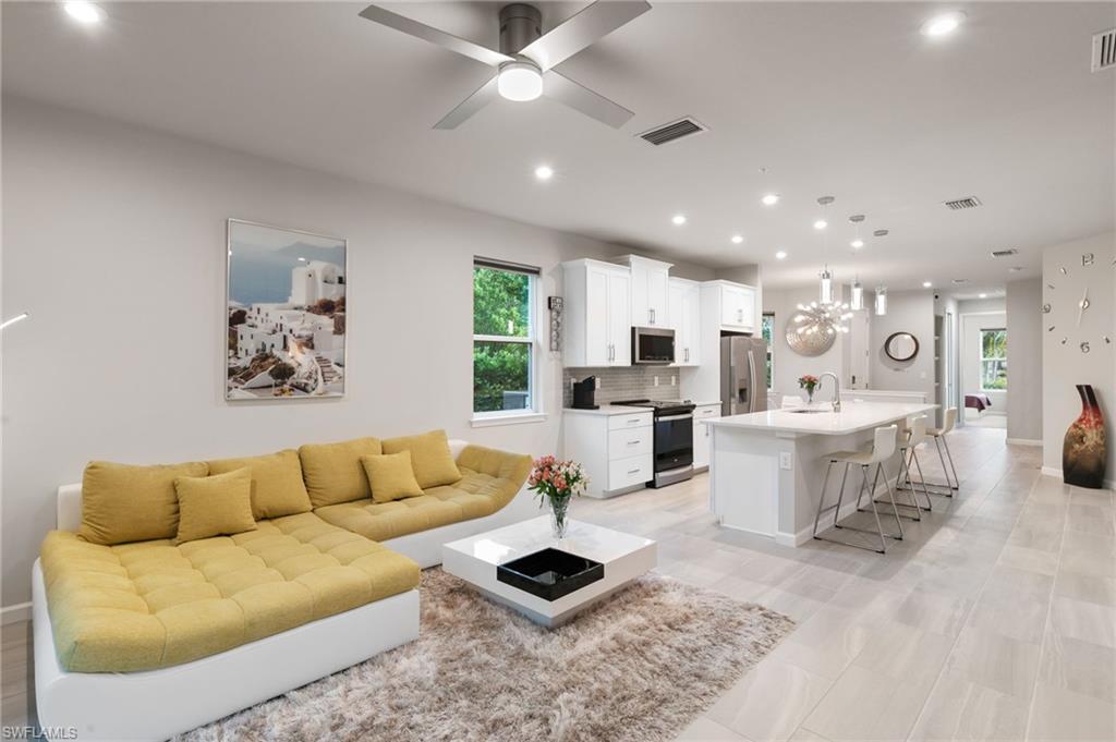 Bright & Private end unit 2 BR + DEN Condo – No Neighbor to the Right! Discover your new home in this beautifully maintained 2023 end-unit Turn-key furnished home, offering extra privacy and abundant natural light from the extra side windows. With no neighbors on one side, this one floor, 2-bedroom + den/flex space, 2-bathroom residence is perfect for relaxing or entertaining. Step inside to an open-concept living area with stylish lighting, Quartz countertops throughout, glass backsplash and upgraded tile flooring. The kitchen features a large island ideal for gatherings and upgraded stainless steel Whirlpool appliance package. The private patio features tropical landscaping with no other condos to the right. The master bath features dual sinks and a beautifully tiled walk-in shower. Enjoy resort-style living just minutes from everything Naples has to offer: Minutes to the amazing National Pickleball Center, Naples Botanical Garden, Rebecca’s upscale Restaurant & Bar, the Celebration Food Truck Pavilion with a waterfront bar & live music and several other local restaurants. And just 10 minutes to world class 5th Avenue & 3rd Street shopping, dining, and the famous white sandy beaches! Walking distance to the Community club room which includes a resort-style pool & hot tub, fitness center, BBQ and Fire pit all overlooking a large beautiful lake! Plus, a dog park for your furry friends. Don’t miss the chance to own this rarely available end unit in one of Naples’ most desirable and upcoming locations! Bonus: This community was re-mapped in 2024 by FEMA, and is not in a mandated flood zone. Pets allowed!