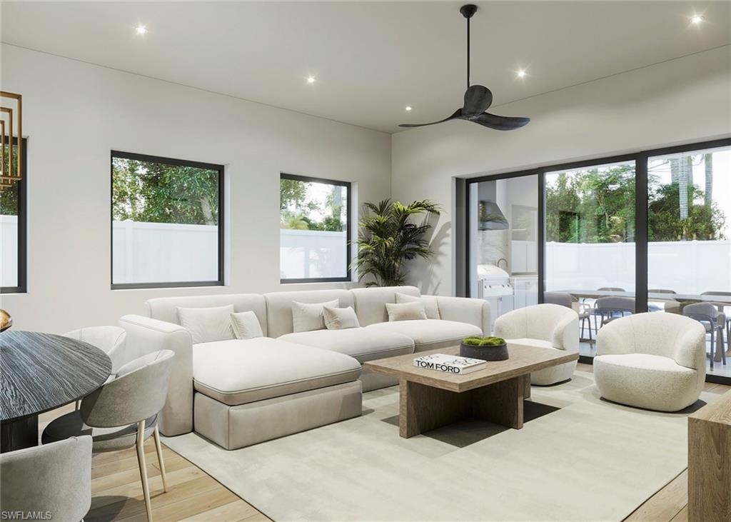 Location, location, location! This brand-new luxury home is perfectly situated on the coveted 600 block of 93rd Avenue in Naples Park, less than a mile from Vanderbilt Beach. Enjoy world-class sunsets, pristine sand, and close proximity to Mercato’s upscale dining, shopping, and nightlife, along with golf courses and cultural attractions. Designed and built by The Glendale Group of Southwest Florida, this residence is part of an exclusive collection of six homes that redefine upscale living in Naples Park. Currently under construction with completion expected by mid-2026, the home offers 4 bedrooms, 3 bathrooms, and 2,024 square feet under air. The open-concept floor plan features 11-foot ceilings, 8-foot doors, rich hardwood flooring, and a chef’s kitchen with quartzite countertops, high-end appliances, and a gas cooktop powered by a 500-gallon propane tank. A whole-home generator provides additional peace of mind. The spacious primary suite includes a spa-like bath, walk-in closets, and abundant natural light, while three additional bedrooms offer flexibility for family, guests, or rental potential. Outdoor living is designed for year-round enjoyment, with a covered lanai spanning the width of the home, complete with an outdoor kitchen, electric fireplace feature wall, and ample space for entertaining. The private, fenced backyard includes a custom pool with spa, sundeck, and outdoor shower, enhanced by desirable southern exposure. With no HOA fees or rental restrictions, Naples Park is highly sought-after by both homeowners and investors. Short-term vacation rentals in this area can command up to $1,500 per night in peak season, making this property an excellent choice as a primary residence, vacation retreat, or income-producing investment. Only six of these exclusive homes will be built, offering a rare opportunity to own a brand-new luxury home in one of Naples’ most desirable neighborhoods. Photos in this listing have been virtually rendered.