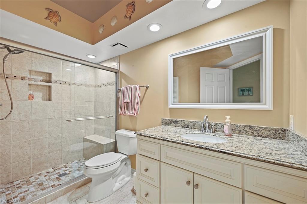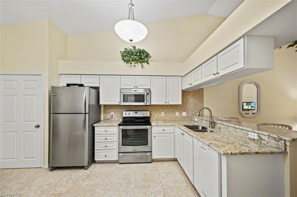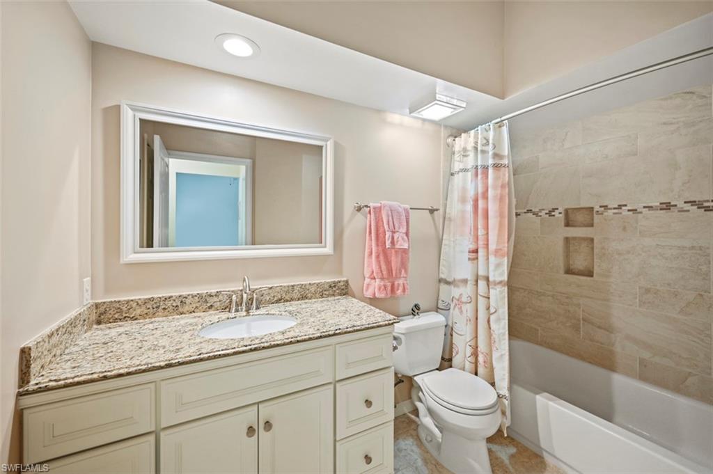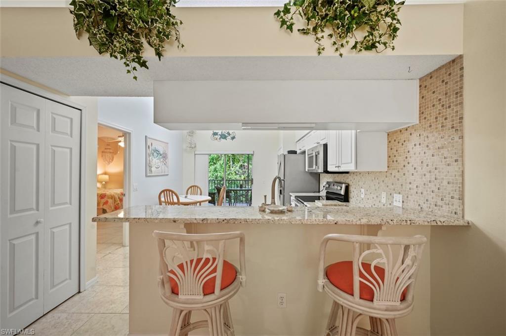 Impeccably maintained top floor condo offering 2 bedrooms and 2 bathrooms. Located in the highly sought-after gated community of Bermuda Gardens at Vanderbilt Lakes. Split floor plan with NEWER TILE THROUGHOUT, no carpet or mismatched flooring here! Updated kitchen with white cabinets, granite countertops, stainless steel appliances as well as new, convenient, pullout drawers in the pantry. The two bathrooms have also been thoughtfully updated with new vanities. Storm ready with High-impact-resistant windows in the front of the condo and electric roll-down shutters located in the back of the condo. NEW ROOF in 2022! The unit also includes a covered carport for parking in front of the building. Bermuda Gardens features a sparkling community pool and is a wonderful walking community. Bike ride to the beach in 15 minutes! This location is unmatched! Within minutes of Vanderbilt Beach, Bonita Beach and Barefoot Beach as well as numerous shops and restaurants. You don't want to miss out on this fantastic home.