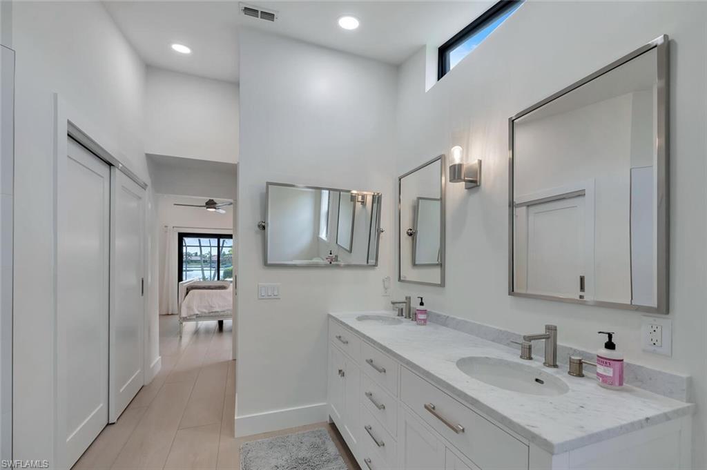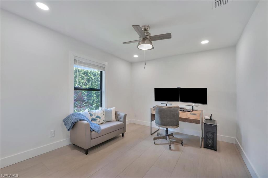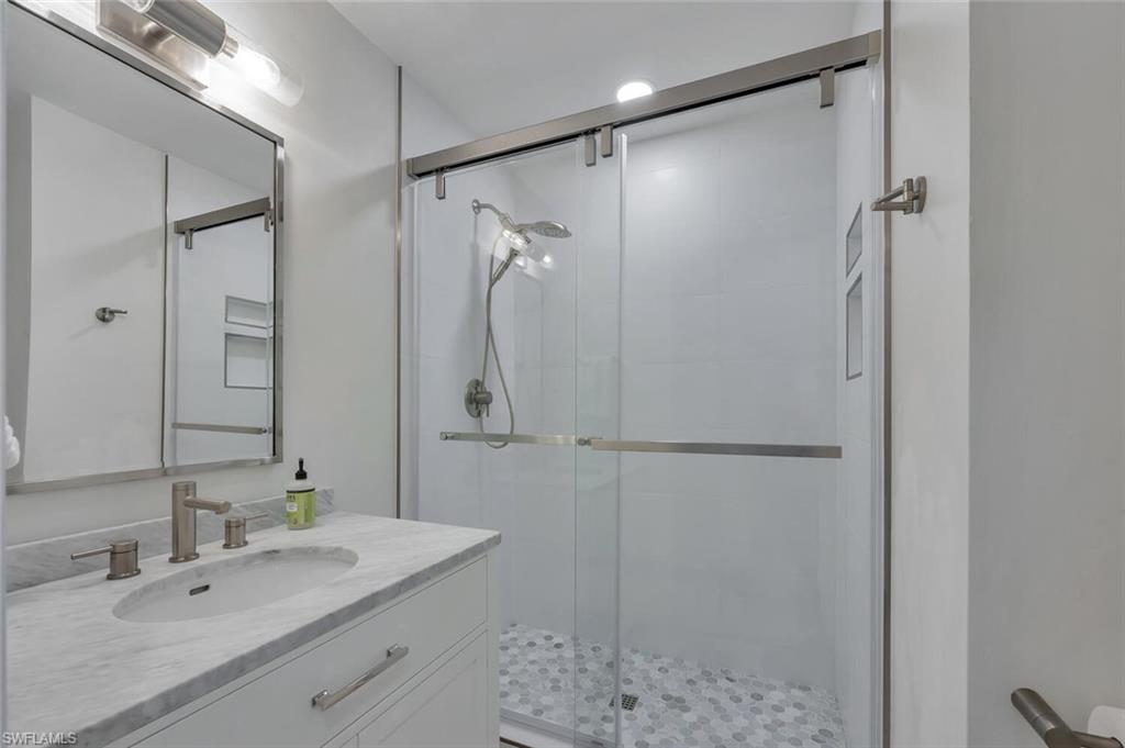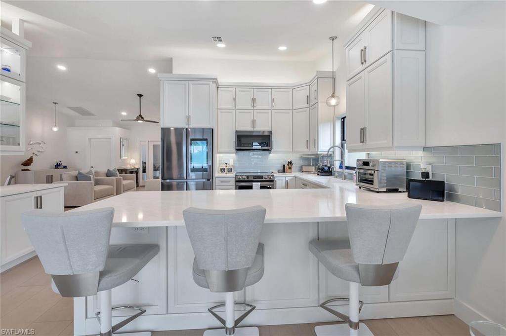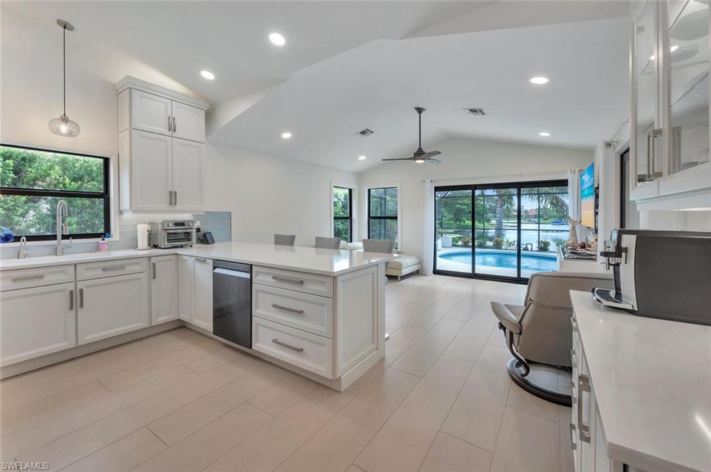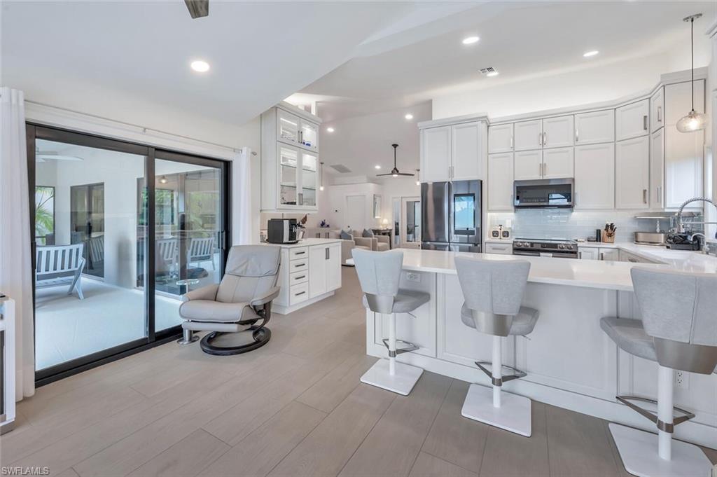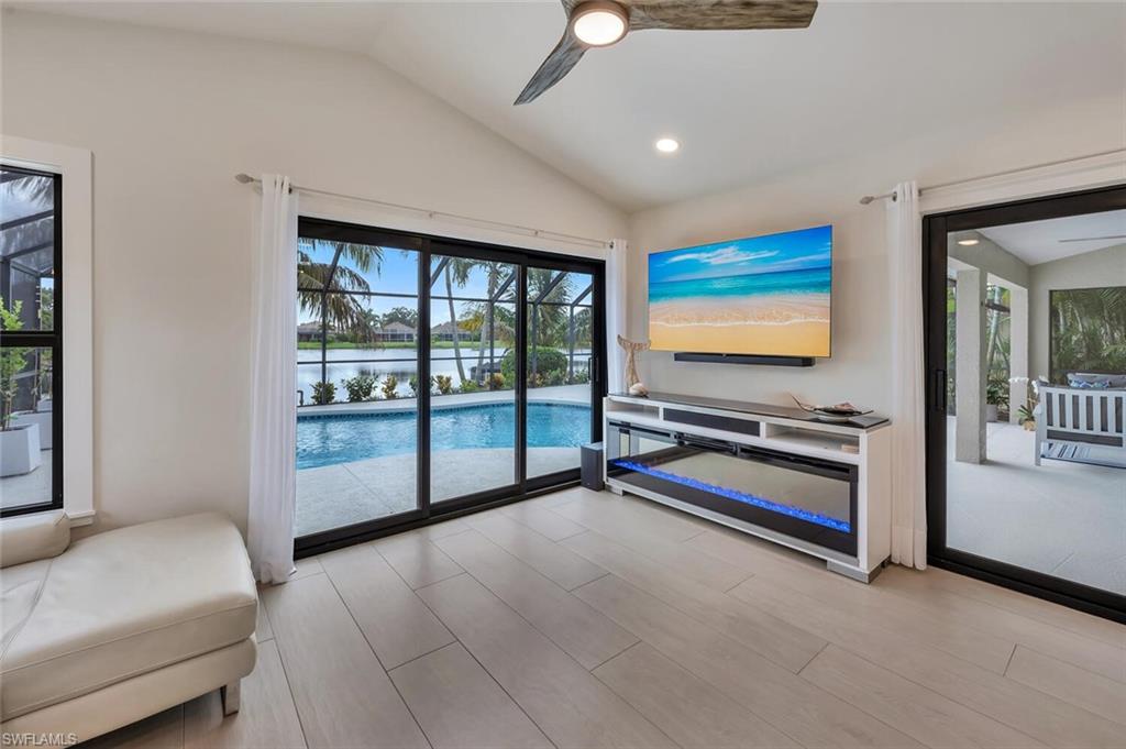 Here, every day feels like a quiet escape, yet everything about it is unmistakably home. Located in the welcoming, established community of Longshore Lake, this beautifully renovated 3-bedroom, 2-bath residence offers a truly effortless lifestyle, complete with wide water views, morning sunshine, and the kind of peaceful atmosphere people come to Naples to find. The view is unmatched. Along the entire back of the home, sliding glass doors open to a tranquil lake, where light dances across the water and wildlife makes daily appearances. Step outside to a crystal-clear, newly resurfaced and retiled heated pool, surrounded by lush natural privacy plantings, tropical palms, and flowering gardens, and it’s easy to forget you're just minutes from Naples’ finest shopping, dining, and beaches. Open all the doors to the newly re-screened lanai and front porch, and the home transforms into a breezy, indoor-outdoor haven—airy, bright, and deeply relaxing. Inside, the home has been fully renovated with over $200,000 in thoughtful updates. A redesigned kitchen, stylish new bathrooms, and elegant wood-look tile throughout give the space a fresh, clean feel that’s both modern and inviting. New doors, trim, paint, lighting, and ceiling fans continue the cohesive design, while a custom laundry room and updated closet systems bring comfort and function to everyday living. The home also offers something increasingly rare: true peace of mind. With new whole-house impact windows and doors, generator transfer switch, and elevated location outside the flood zone, it’s built to handle storm season without worry. Behind the scenes, new whole-house plumbing, gutters, sprinkler system, pool equipment, and fresh exterior paint mean the hard work is already done. Longshore Lake is a gated, amenity-rich community where residents enjoy tennis and pickleball, a clubhouse pool and restaurant, a fitness center, walking trails, and boating, kayaking, paddle boarding, and fishing. It’s a place where neighbors wave hello, kids ride bikes, and life moves at an easier pace. This home isn't about grand statements. It’s about quiet luxury, easy living, and the restful setting that makes you exhale the moment you arrive.