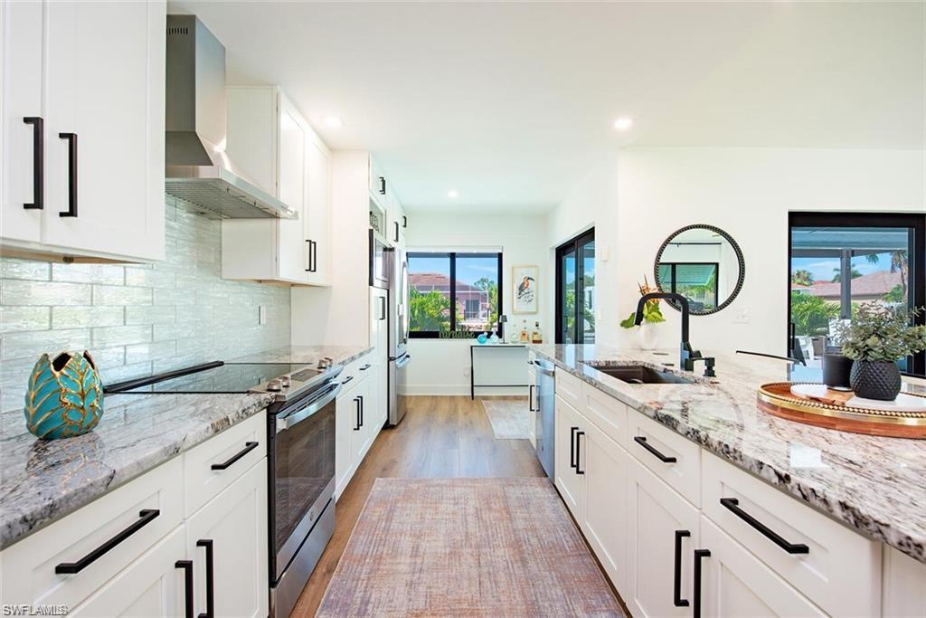 Welcome to your dream home on the magnificent Marco Island! This fully remodeled single-family residence offers unparalleled luxury and comfort, perfectly situated on a wide canal, ideal for boating enthusiasts, and boasting southern exposure with sunny pool/spa. Step inside to discover a stunning modern kitchen featuring beautiful stone countertops that blend style and functionality. The elegant wood flooring flows seamlessly throughout the home, highlighting the contemporary design and decor. The spacious living area provides a warm and inviting atmosphere, perfect for entertaining family and friends. Step outside to the gorgeous lanai seating area, where you can relax and take in the breathtaking wide canal views and intersecting waterway in the distance. Here, you can truly experience resort-style living at its finest, with the tranquil sounds of the waterway as your backdrop. Numerous recent upgrades including, but not limited to: new recessed lighting, new PGT double pane impact windows and sliding doors, newer seawall 2006, roof 2018, A/C 2022, paver circular driveway, new irrigation system, and stunning landscaping. Fish off your newer dock, complete with new 10,000 lb. lift and enjoy boating through prestigious Roberts Bay out to the Ten Thousand Islands and the Gulf. Relax in new saltwater pool with spillover jetted spa with new 1080 sq. ft. enclosed spacious lanai with stunning views of wide canal. Convenient to all that Marco Island has to offer - beach, shops, restaurants, shopping, and more. Don't miss the chance to call this exquisite property your home, where luxury and coastal living come together in perfect harmony!
