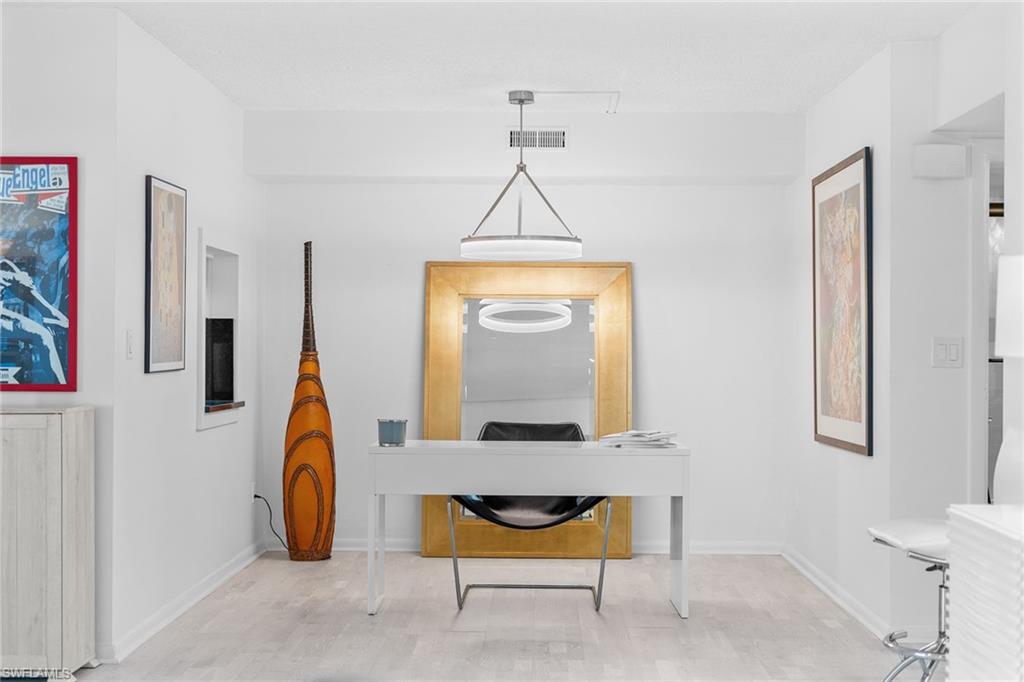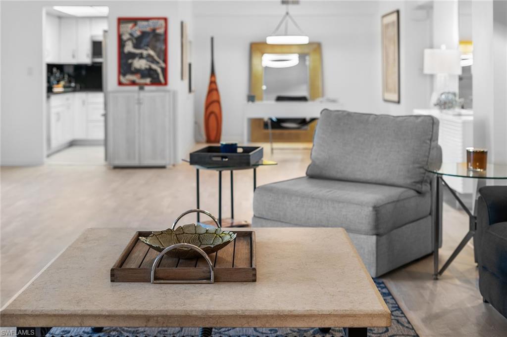 Positioned in one of Naples' most coveted enclaves, this three-bedroom, four-bath first-floor residence offers the rare combination of privacy, space, and immediate access to the vibrant heart of downtown. Just moments from the Gulf of Mexico, Fifth Avenue South, and Cambier Park, the home is perfectly situated for those who value fine dining, boutique shopping, cultural attractions, and year-round recreation. A unique double-unit floor plan showcases hardwood flooring throughout the main living spaces and two fully equipped kitchens, one thoughtfully styled as a dedicated coffee bar. Designed to maximize indoor-outdoor living, expansive sliding glass doors open to two screened lanais that seamlessly connect to a serene private courtyard. From multiple vantage points, tranquil lake views provide a picturesque backdrop. Set within a boutique building, the residence blends the elegance and exclusivity of Old Naples with versatile functionality. Whether envisioned as a seasonal retreat or a year-round sanctuary, this home delivers exceptional lifestyle value in the heart of a premier coastal destination.