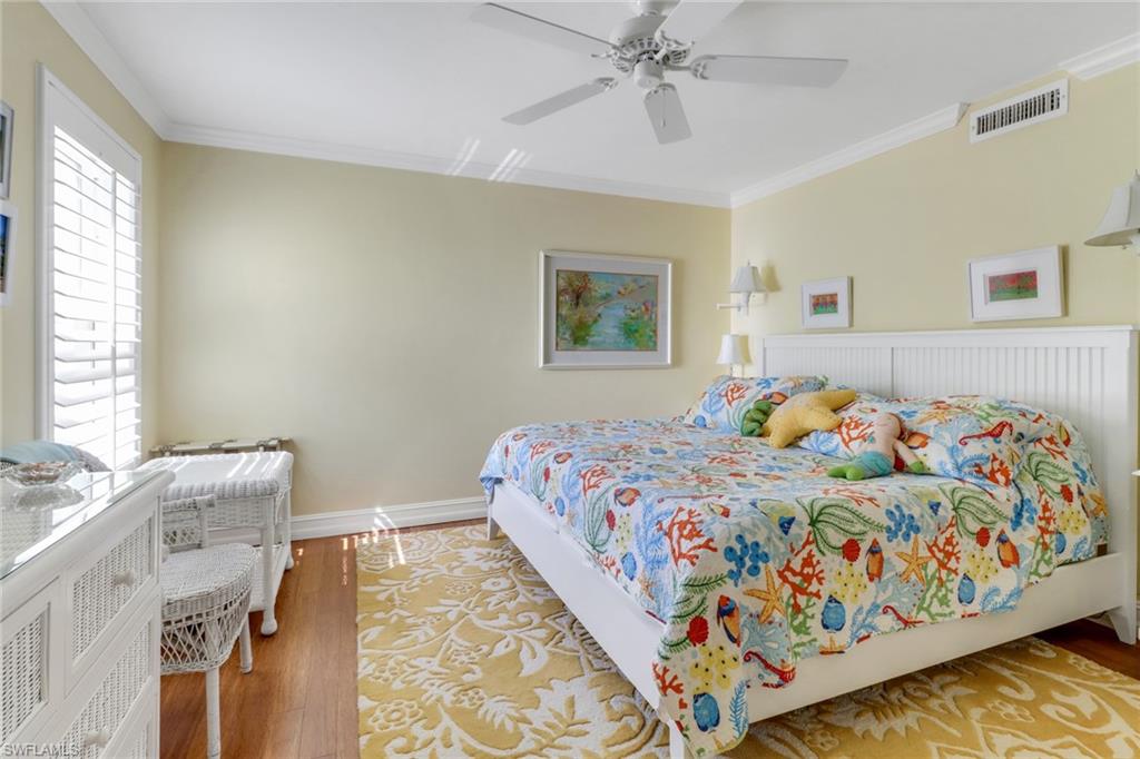 Jennifer Shores is a well-kept mid-rise PET-FRIENDLY condominium community located on the bay in the Venetian Village area. This tastefully updated three bedroom, two bathroom, southern end-unit condo provides beautiful views of Moorings Bay from the glass lanai and glimpses of the Gulf form the primary bedroom. Hardwood bamboo floors and a soft color palette are found throughout the property, providing a cozy feeling in every room. The spacious floorplan offers a white galley kitchen with breakfast bar, a dining room with built in wet bar, a sitting area, a family room, plus a glass lanai to enjoy your morning coffee or evening cocktail overlooking the bay. The expansive pool area is located along the water, with tiki hut, grills and boat slips that are available to lease. In addition, there is an extra storage closet (not available with all units) and a guest suite for extra visitors. Jennifer Shores in one of the FEW PET-FRIENDLY communities and is less than 200 steps away from public beach access.