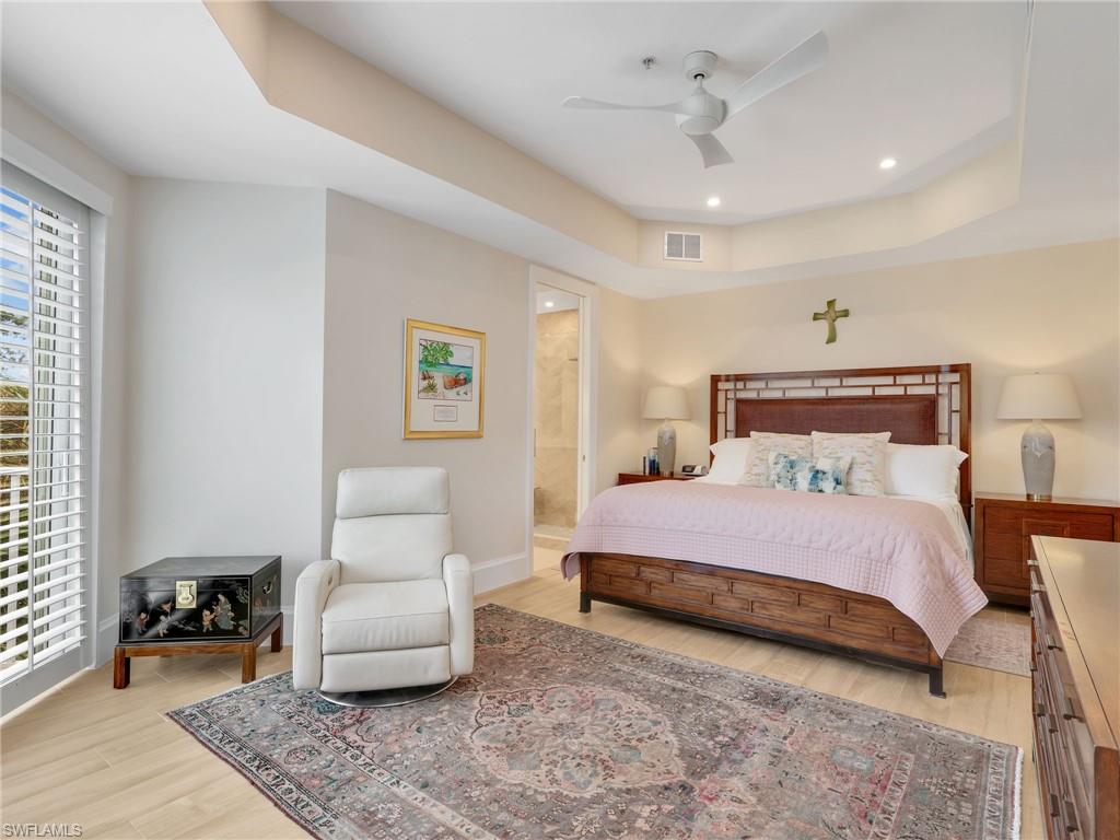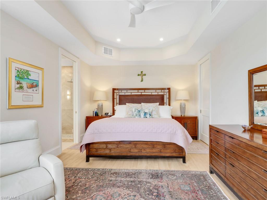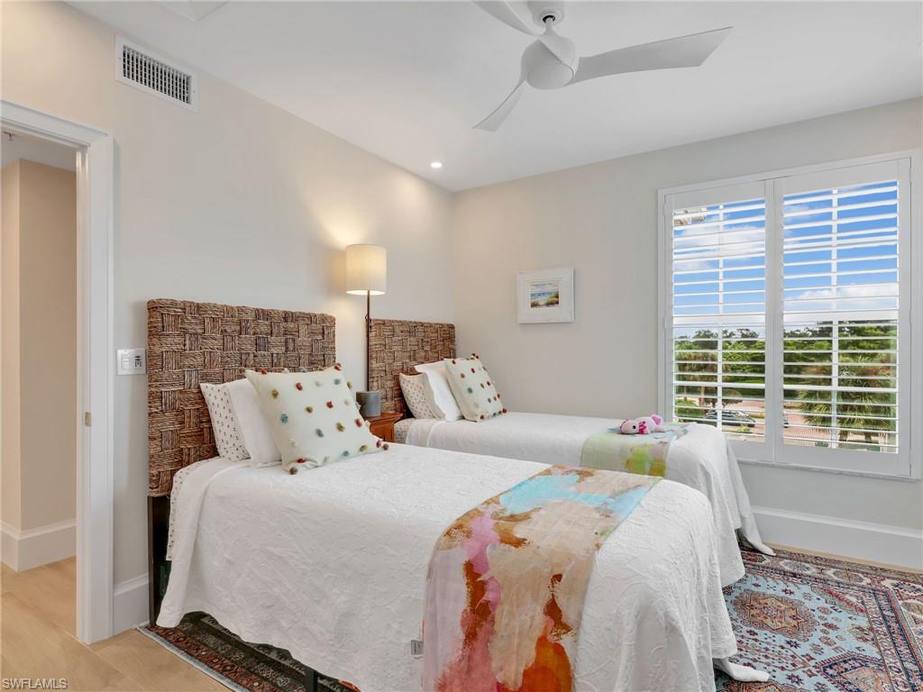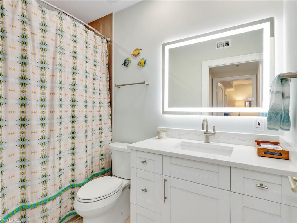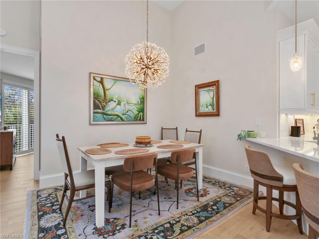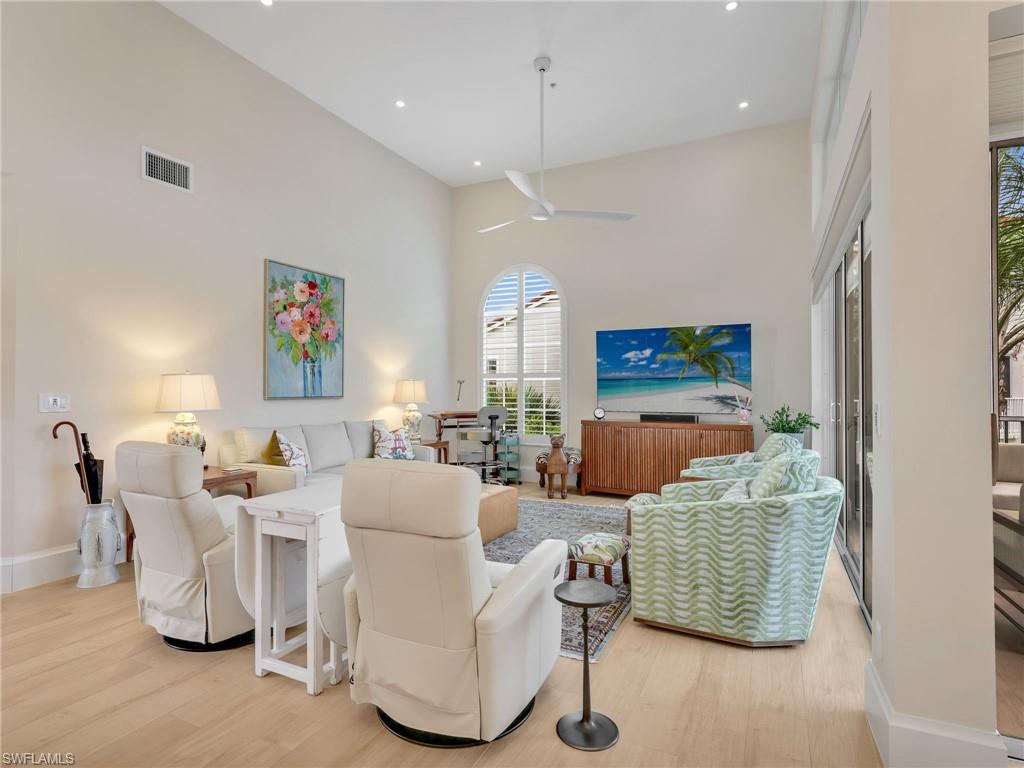 This Beautifully renovated TOP Floor end-unit condo in Clermont at Pelican Marsh has undergone an extraordinary, top-to-bottom transformation, with no detail left untouched. A complete 2024 reimagination has elevated the space, opening up the kitchen and great room by removing a dividing wall to create a more expansive and inviting layout. The eye-catching kitchen boasts all-new custom cabinetry, sleek quartz countertops, premium appliances—including a counter-depth refrigerator and wine cooler—gorgeous hand-blown glass pendant lighting, and LED recessed lighting, all working together to create a warm yet refined ambiance. Throughout the residence, brand-new tile flooring extends seamlessly, complemented by tall baseboards, wide door trim, and upgraded pocket sliding doors for closets. The primary bathroom has been completely reconfigured, now showcasing a luxurious walk-in glass shower, additional cabinetry, and all-new fixtures. Every aspect has been refreshed, including brand-new plumbing, sleek new bath fixtures, and a brand-new bathtub, ensuring every space is as beautiful as it is functional. No expense was spared in upgrading this home for comfort, efficiency, and style. Brand-New Impact Windows with New Plantation Shutters on the Impact Windows, new impact sliders in the primary bedroom, and electric impact screens on the lanai provide storm protection and peace of mind. The lanai itself has been fully upgraded with new screens, offering a serene retreat with sweeping golf course views. A new HVAC system, and a brand-new electrical panel ensure optimal climate control and reliability, while thoughtful enhancements like all-new plantation shutters, LED recessed lighting, ceiling fans, and a striking new dining chandelier add an extra layer of opulence. Even the smallest details have been refreshed, from all-new interior doors and light switches to a fresh coat of paint that ties the entire space together. Additional 2025 updates include a new tankless water heater, an electronic key entry system, and a full-glass storm door for added security. With its impressive scope of upgrades, this condo is truly move-in ready—offering an unparalleled blend of modern luxury, prime location, and stunning golf course views, all just minutes from the Gulf beaches, Mercato, and Waterside Shops.