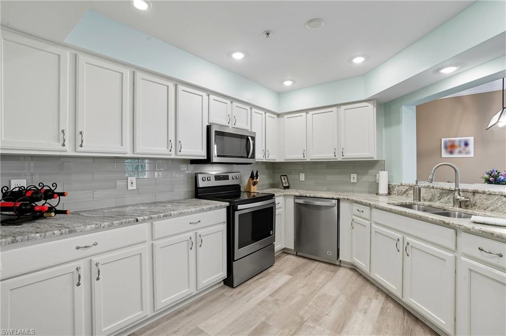 Welcome to this beautifully remodeled 3-bedroom, 2-bathroom condo in the prestigious Waterside Condominiums, where timeless design meets resort-style living at the very end of Bay Beach Lane. Thoughtfully reimagined with an open-concept layout, this residence is offered turnkey, blending elegant finishes with the ultimate in convenience. The spacious master suite opens directly onto a corner screened-in lanai, offering tranquil views of lush, professionally arranged landscaping—a perfect retreat for morning coffee or evening relaxation. Inside, every detail has been updated to create a modern yet inviting coastal home, ideal for both full-time living and seasonal enjoyment. As a Waterside resident, you’ll enjoy an impressive array of exclusive amenities, including two rentable guest suites, a fully equipped fitness center, sauna, community room with an expansive patio, and direct access to the scenic bike and jog path along the former golf course. Additional offerings include: BBQ picnic areas, bike storage, billiards, vehicle wash station, shuffleboard, tennis, pickleball, racquetball, putting green, bocce, fishing pier, community spa/hot tub, and deeded beach access. Perfectly combining modern comfort, thoughtful design, and unmatched amenities, this residence invites you to experience the very best of coastal luxury living in Fort Myers Beach.