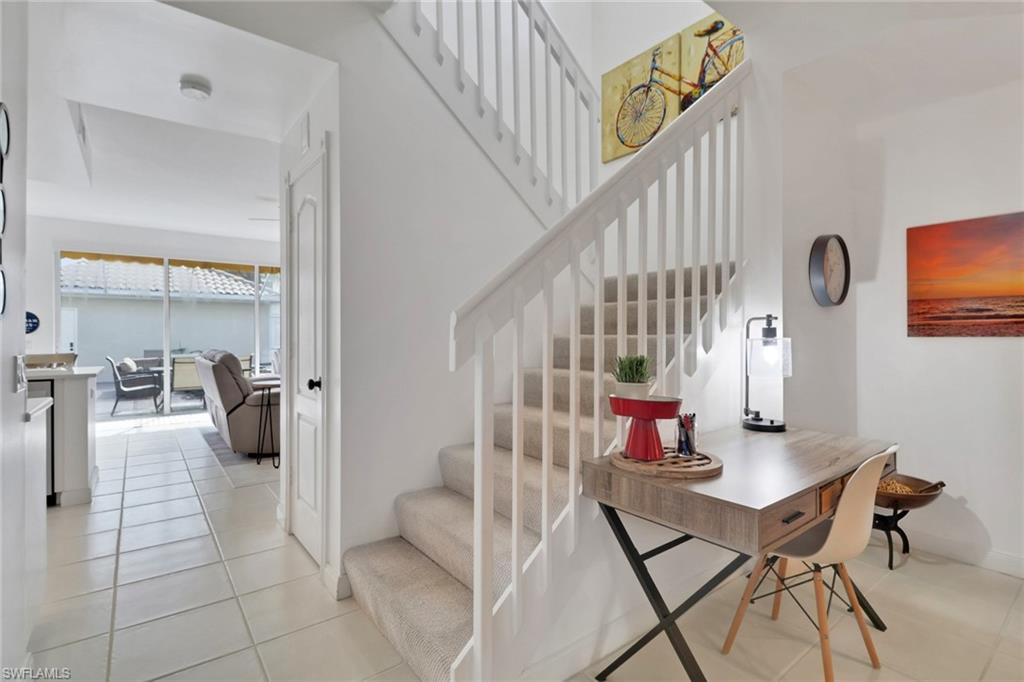 Welcome to one of the most sought-after streets in Island Walk! This beautifully updated townhome offers a rare combination of space, privacy, and water views. The inviting screened front porch and glass entry door set the tone, leading into a bright living space filled with natural light. From 2022–2024, the home underwent a thoughtful multi-phased renovation that elevated every detail. The kitchen and all bathrooms received new cabinetry, countertops with undermount sinks, premium fixtures, and new appliances—including a fully renovated owner’s bath with custom glass shower and dual vanities. Plantation shutters, new fans and lighting, a premium washer/dryer (2022), and a murphy bed add both style and function. Peace of mind comes with accordion hurricane shutters, a newer A/C, and central vac. Outdoor living is at its best here with a massive private screened lanai, enhanced by a retractable awning for year-round comfort. The two-car garage offers a private rear entry and includes a Level 2 charger for EV convenience. Island Walk is one of Naples’ most vibrant communities, offering resort-style amenities with low HOA fees. Residents enjoy scenic walking paths and European bridges, resort and lap pools, 8 lighted Har-Tru tennis courts, pickleball, bocce, putting green, clubhouse with fitness center, and 24-hour security. Everyday conveniences are just outside your door, including a restaurant, post office, beauty and nail salons, car wash, gas station, and management office. This is a rare opportunity to own a fully renovated home in one of Naples’ most desirable communities—schedule your private showing today!