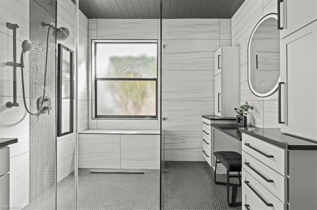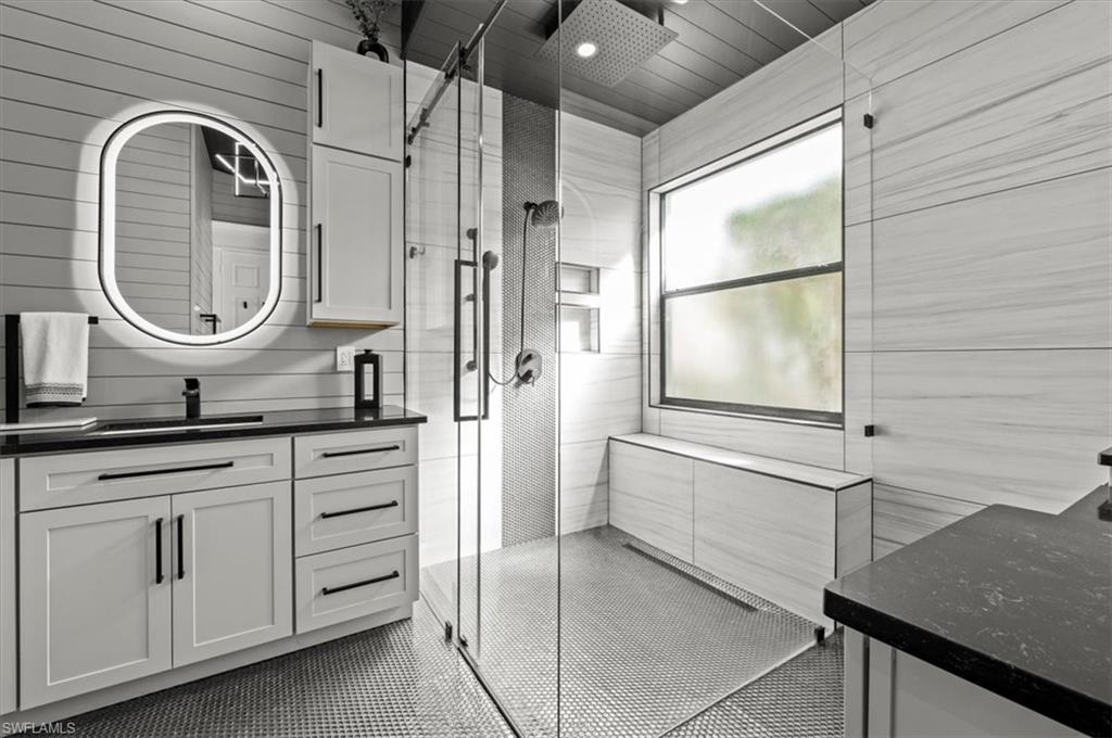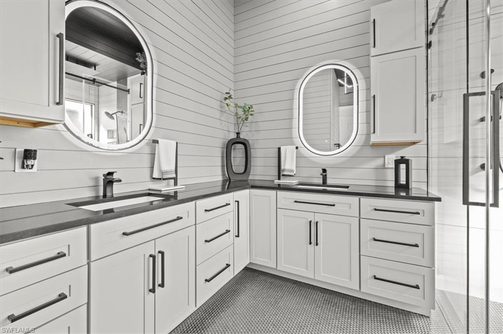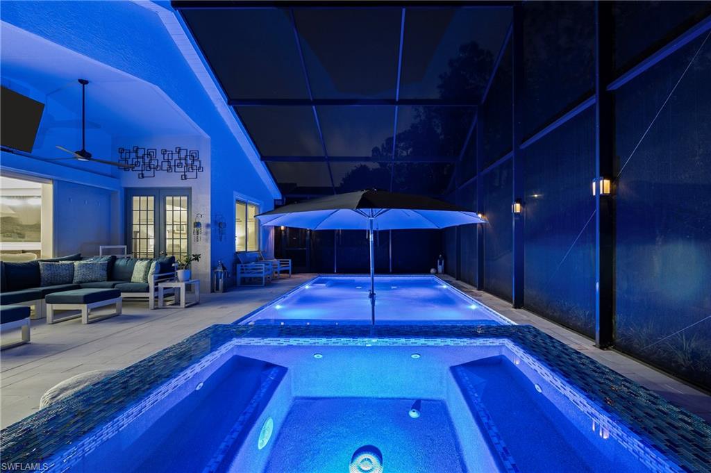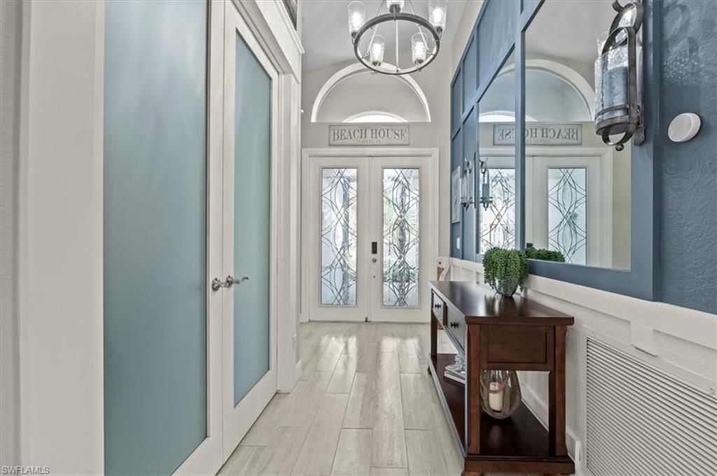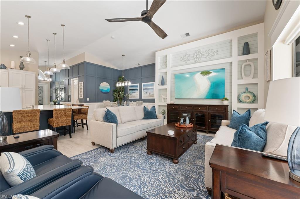 Welcome to one of the most impressive homes ever listed in The Shores at Berkshire Lakes! This fully renovated 3-bedroom, 2-bath home offers over 2,000 square feet of beautifully designed living space. Brand new roof installed 2025. From the moment you walk in, you'll notice high ceilings, custom woodwork, and an abundance of natural light. The interior features wide plank tile flooring throughout, custom cabinetry, quartz countertops, and a hidden butler’s pantry. The chef’s kitchen is outfitted with brand-new Wi-Fi-enabled appliances, while the living and dining spaces are accented with shiplap, custom paint, upgraded lighting, and ceiling fans. The luxurious primary suite is a true retreat with motorized shades, custom closets and drawers, and a stunning spa-like bathroom complete with a frameless glass shower. Additional highlights include a newer HVAC system, Tesla EV charger, and protective Trulock PVC flooring in the garage. Step outside to your private backyard oasis featuring a brand-new infinity-edge spa, oversized spa, sun shelf, and a screened lanai. The outdoor kitchen includes a large BBQ grill table and mounted TV, all with ideal southern exposure for all-day sun. Located in an X Flood Zone (high and dry), this home combines peace of mind with luxurious comfort. The Shores is a gated, amenity-rich community with extremely low HOA fees of just $367/month, which include cable, Wi-Fi, lawn care, irrigation, and security. Residents enjoy access to a clubhouse, fitness center, large community pool, tennis and pickleball courts, playground, billiards, ping-pong, and more. Conveniently located just minutes from Berkshire Commons with Publix, First Watch, Walgreens, and other everyday conveniences, and only 10 minutes to Downtown Naples, 5th Avenue, 3rd Street South, Naples Pier, and the beaches. This is a rare opportunity to own a move-in-ready, fully furnished, luxury home in one of Naples’ most desirable communities. Don’t miss out—schedule your private tour today!