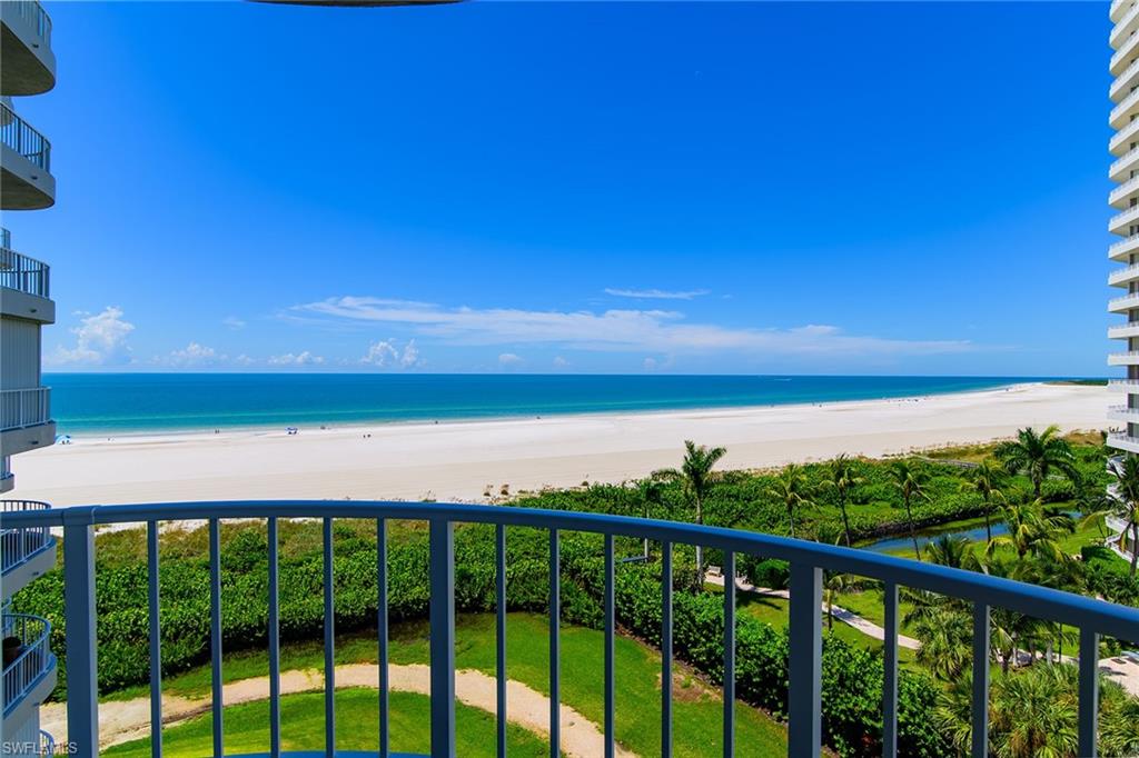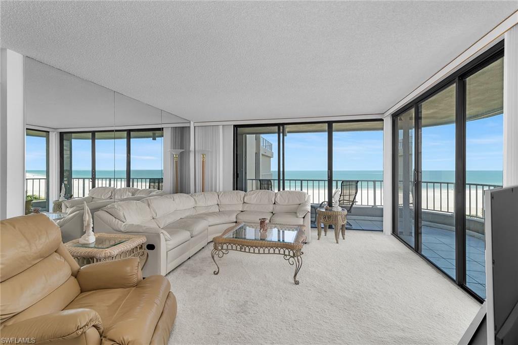 The ultimate sunset vantage point and seamless beach access await by virtue of this two-bedroom, two-bath condominium at The Royal Seafarer. This unit rests at the seventh floor of the building, providing a bird's eye view of the island's immaculate beaches and unparalleled sunsets. Every room takes advantage of a western view. Whether the plan entails cocktails at the bar next to the kitchen, a movie night in the spacious living room or soaking in the atmosphere on the wraparound lanai, the beach and the horizon will always be your visual companion. The condominium includes impact shutters on the lanai to keep your paradise protected. The Royal Seafarer features a robust set of amenities, including pool, pickleball and tennis, barbecue area, guest suite, bike storage, car wash area, common elevator, exercise room and trash chute. See what life is like on top of one of Marco Island's iconic beachfront high rises and take a look today!