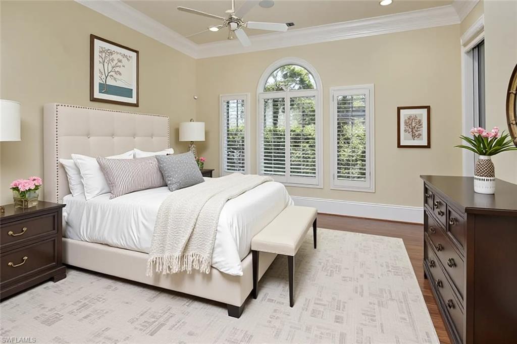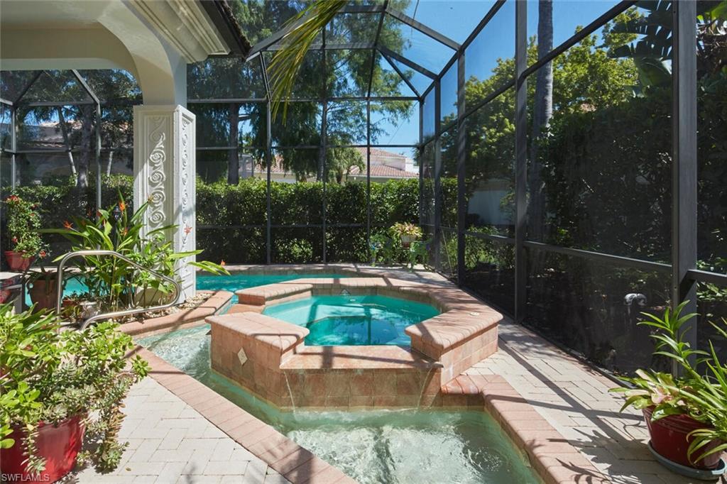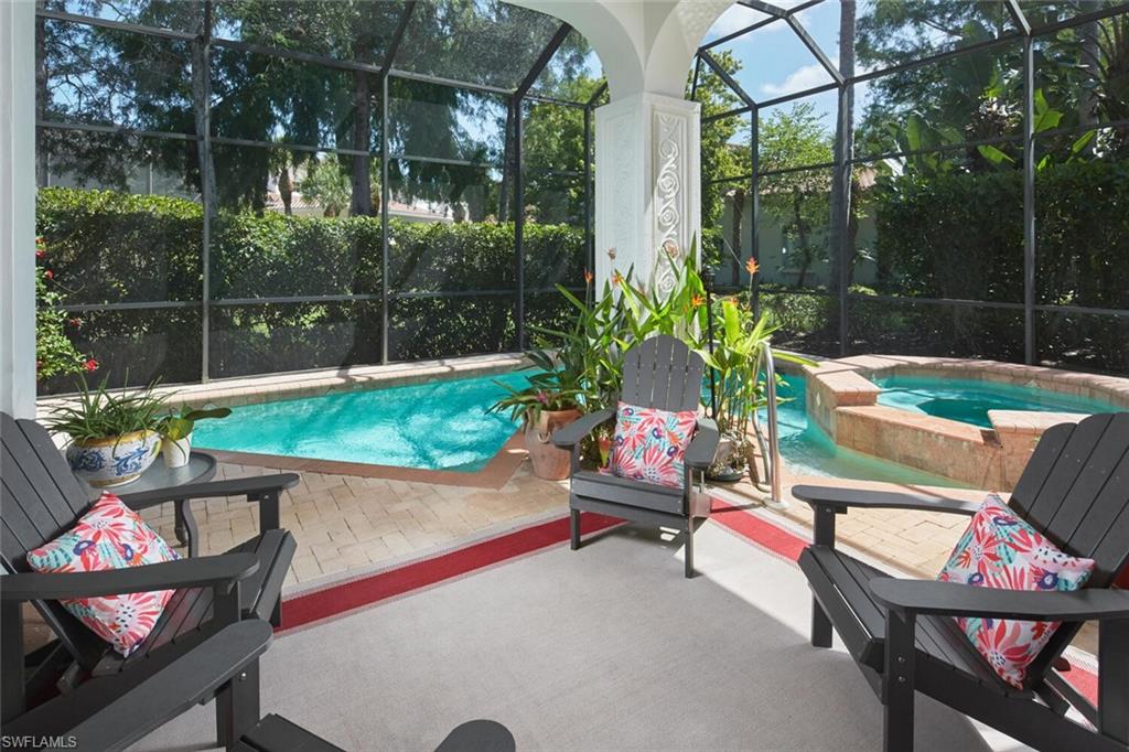Exceptional Villa in Las Palmas at The Colony – A Private Oasis of Luxury Tucked away in the exclusive and romantic enclave of Las Palmas at The Colony, this charming villa offers the perfect blend of elegance, privacy, and resort-style living. Featuring three spacious bedrooms, each with ensuite bath, plus a convenient guest bathroom, this villa is thoughtfully designed with soaring 14-foot volume ceilings. Every detail speaks of quality and care—from the crown moldings and 12" baseboards to the classic tile flooring and wood plantation shutters. The gourmet kitchen is boasting a gas range, stainless steel appliances, custom banquette seating, and a breakfast bar—ideal for casual meals and entertaining. Step outside to your own private tropical oasis featuring a sparkling plunge pool—perfect for relaxing or hosting guests. This home has been meticulously maintained, with recent upgrades including a new roof, fresh interior and exterior paint, and a whole-house generator for peace of mind. A whole house generator, new roof installed in 2020. As a resident of The Colony, enjoy exclusive access to The Bay Club, offering both fine waterfront dining and relaxed sunset entertainment. The community also features world-class amenities such as a private beach park accessible by water taxi, tennis, pickleball, bocce, kayaking, canoeing, and sailing. All this, just minutes from upscale shopping, dining, and only 15 minutes to the airport. Don’t miss this rare opportunity to own a true gem in one of Southwest Florida’s most sought-after communities.